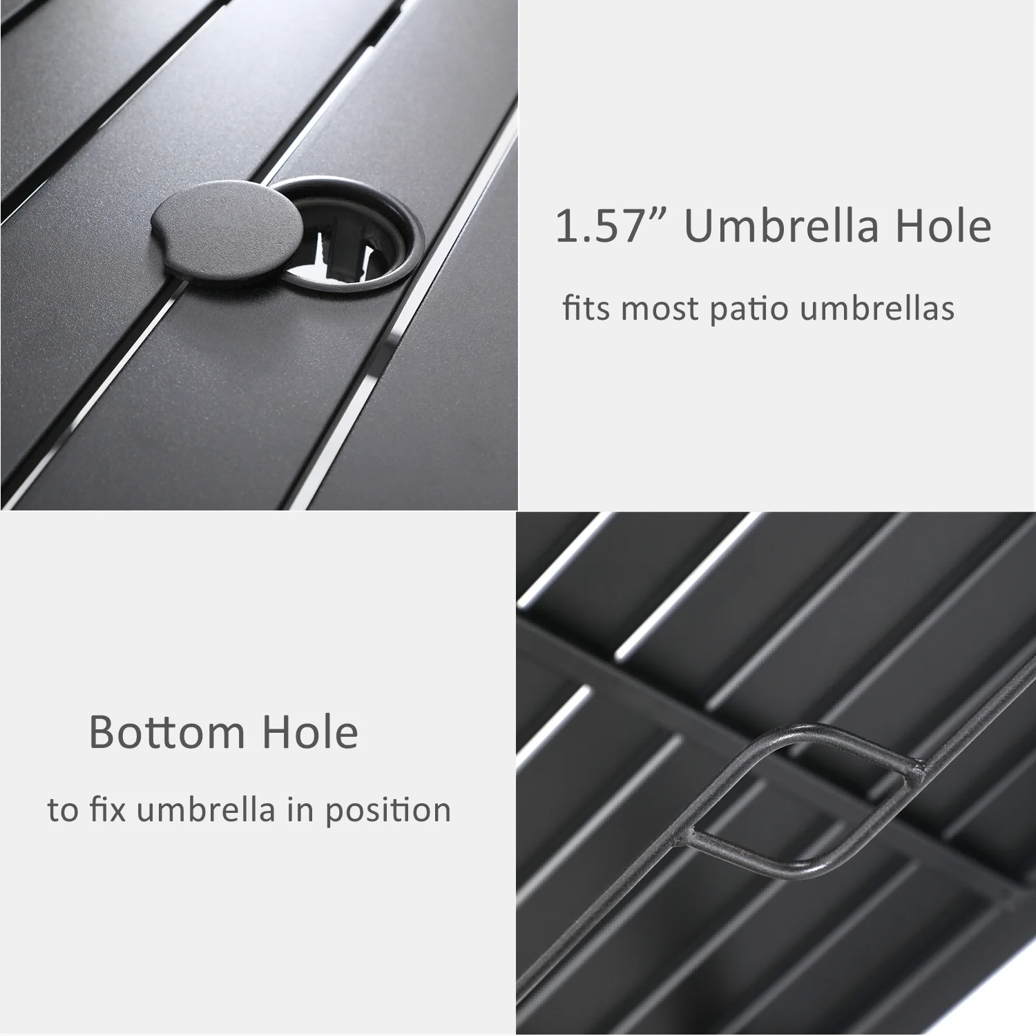 With Dia 1.57" hole, suitable for most patio umbrellas