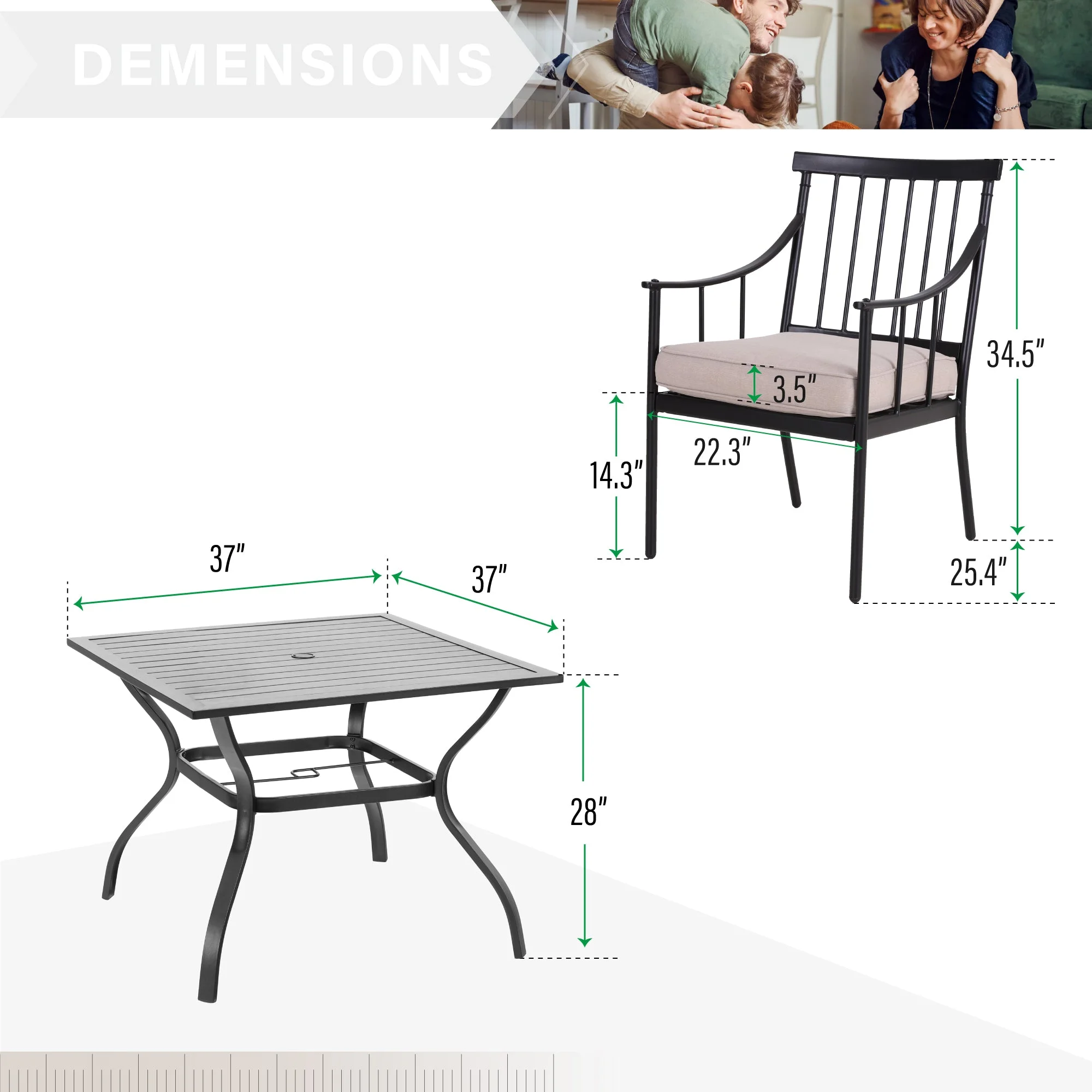 Sturdy&all weather resistant: Our table and dining chair are made of high quality steel with powder coating , which is all weather resistant.