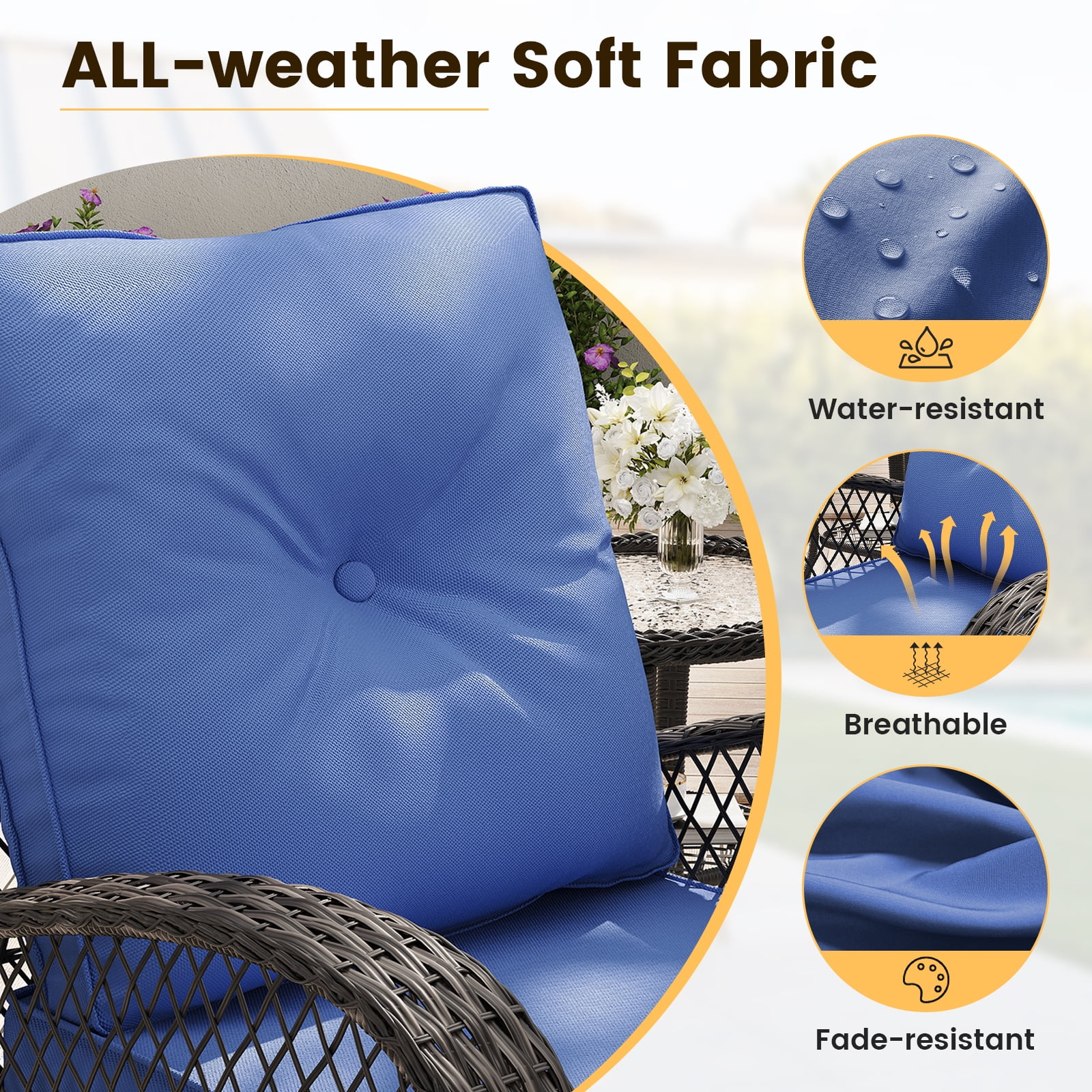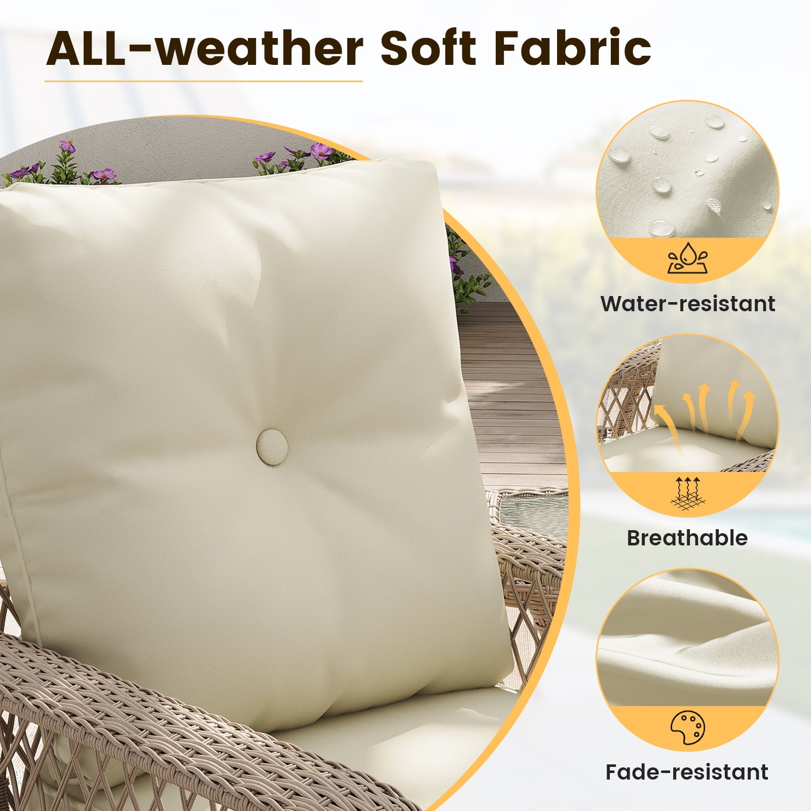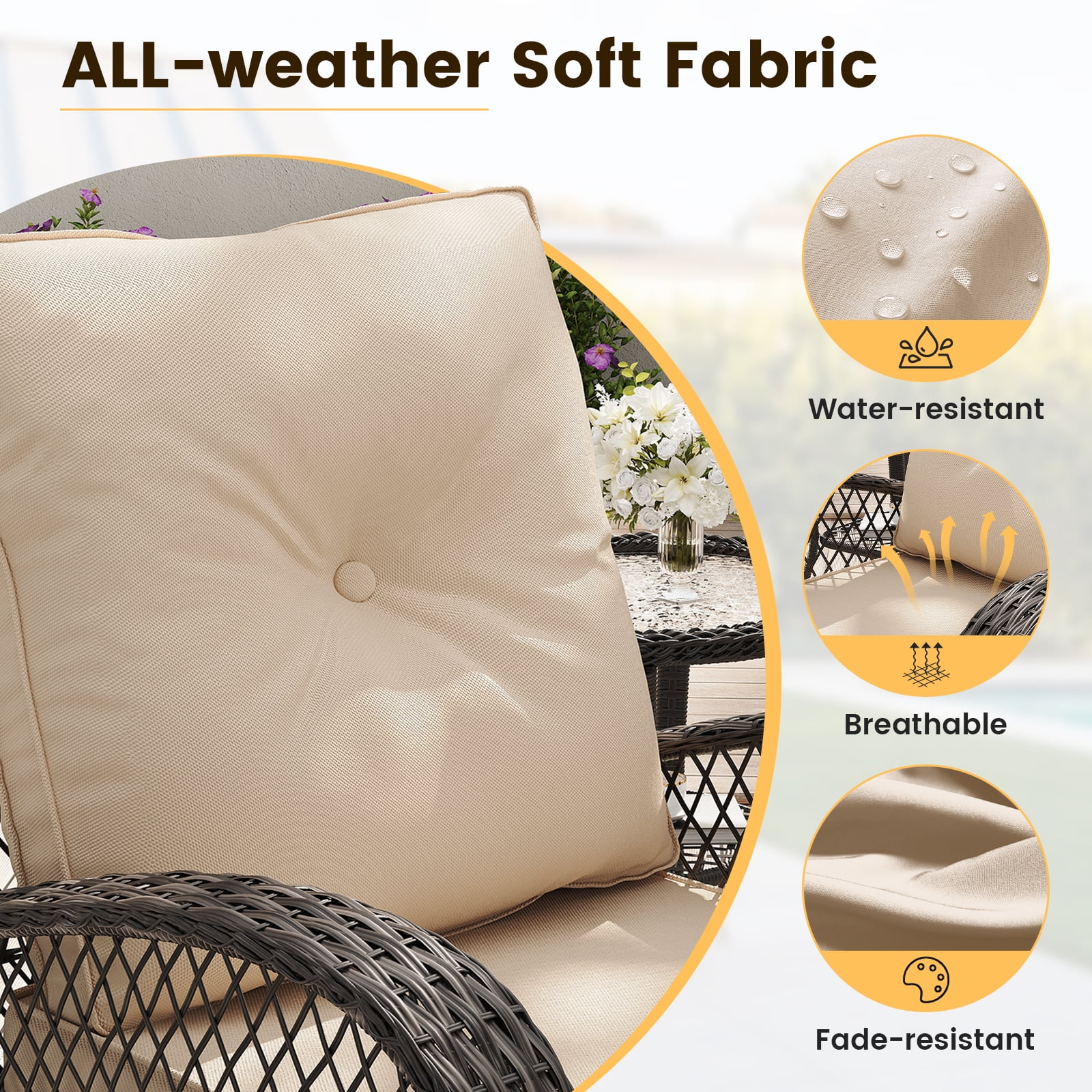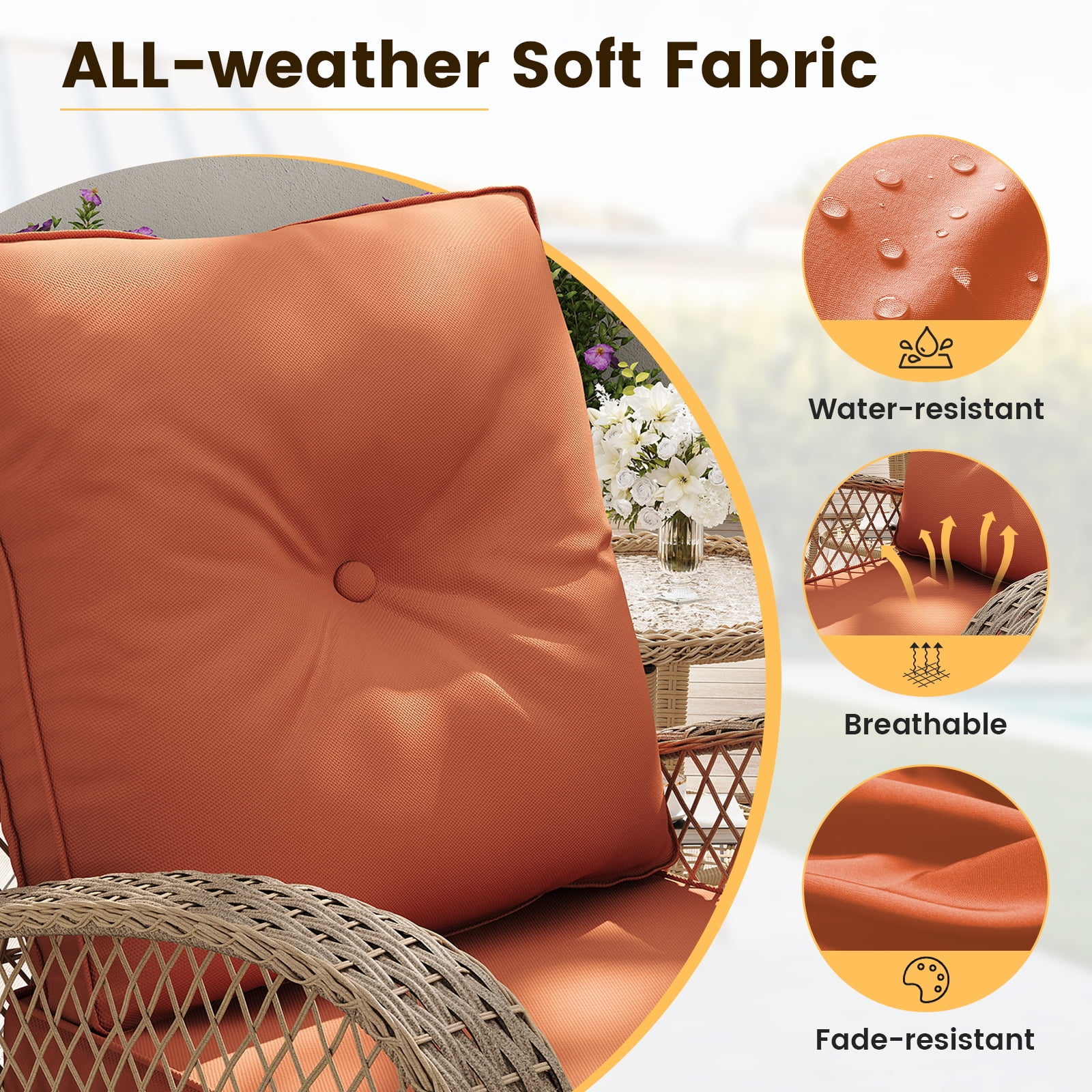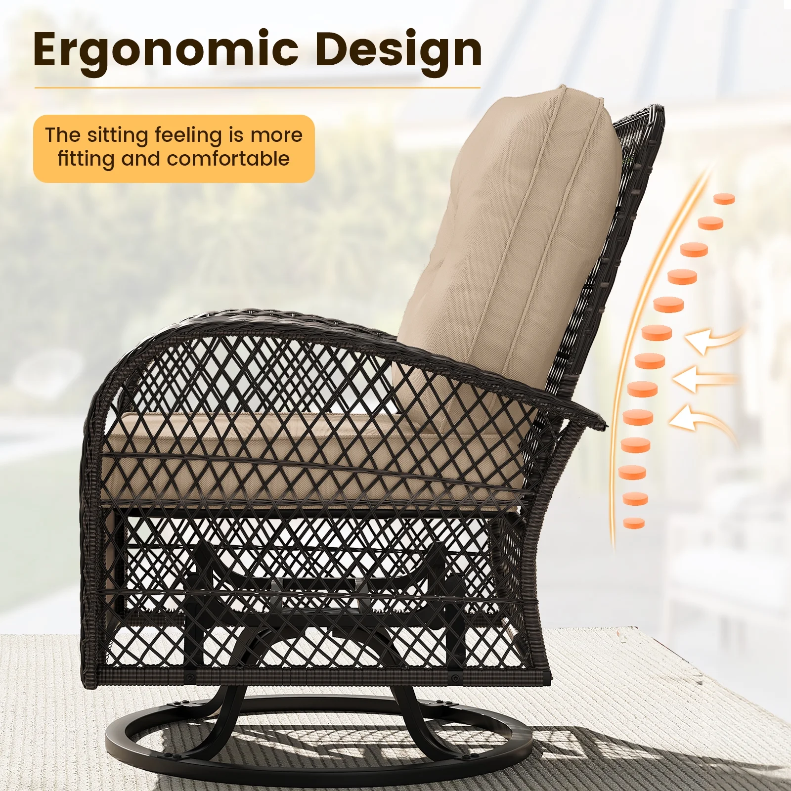 - 360° Rotation and Sliding: The rocking chair features a sturdy metal frame and round base, which supports 360-degree rotation and forward and backward sliding, allowing you to enjoy maximum freedom when relaxing outdoors.