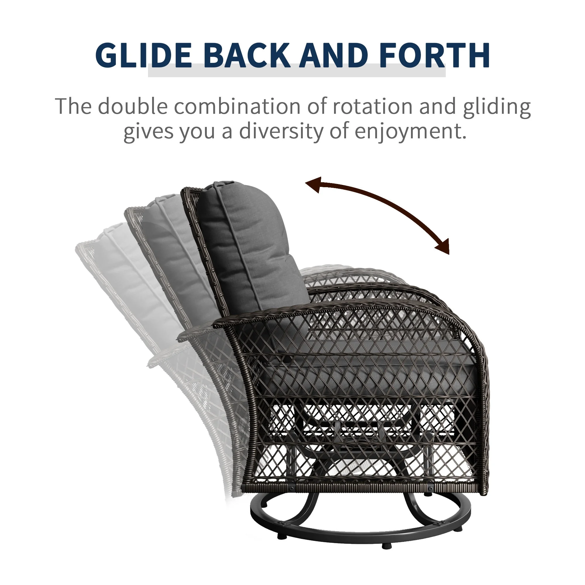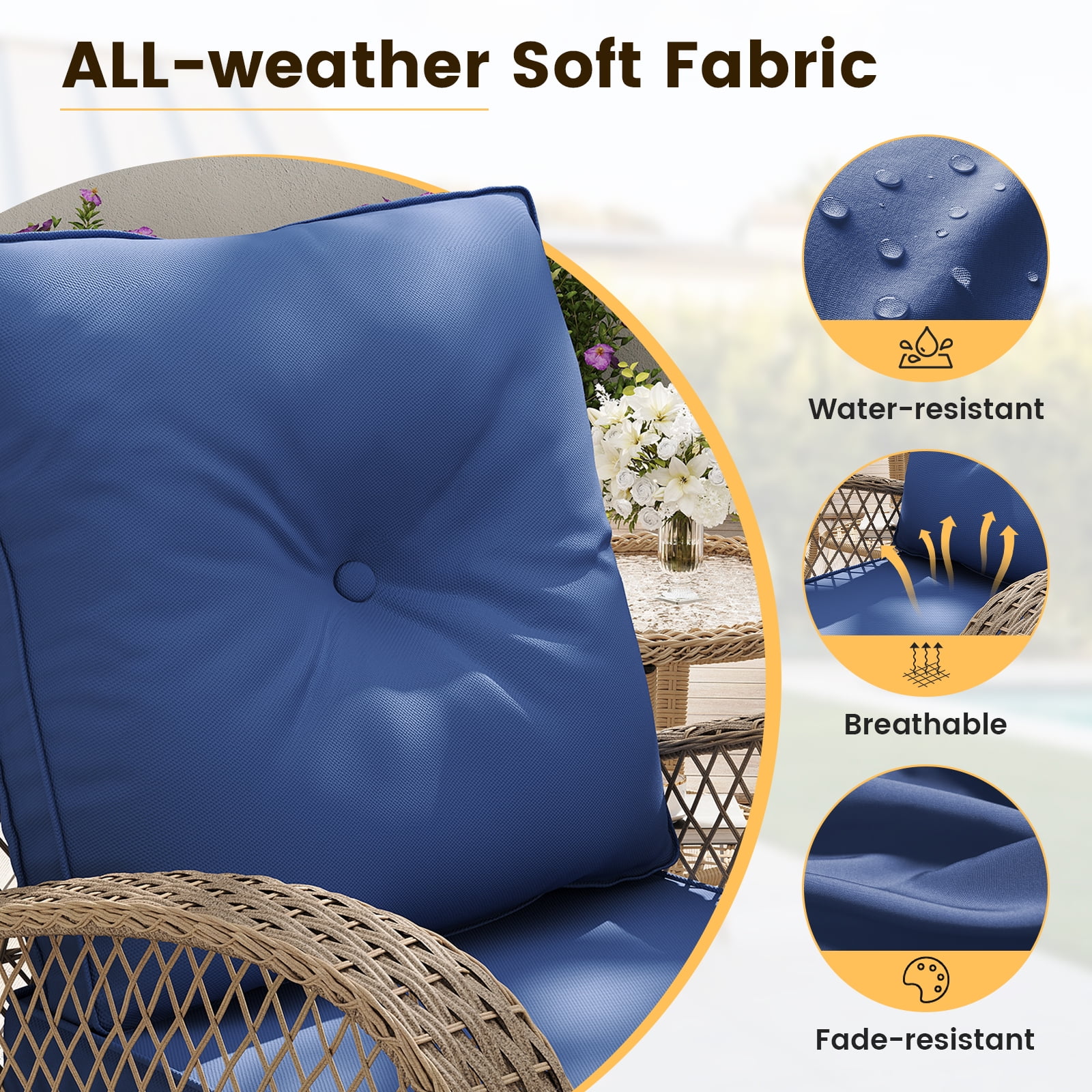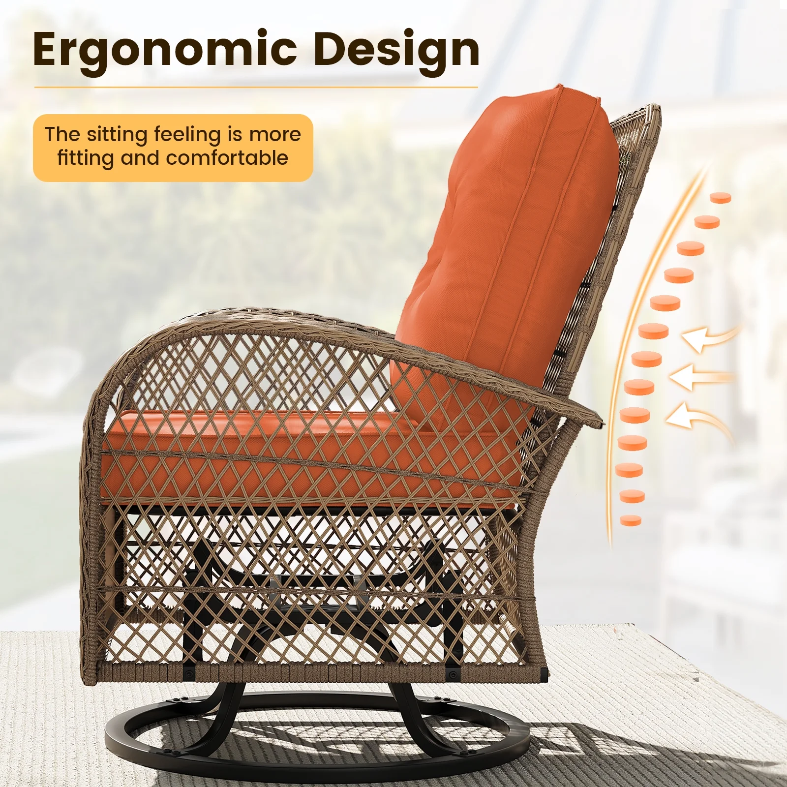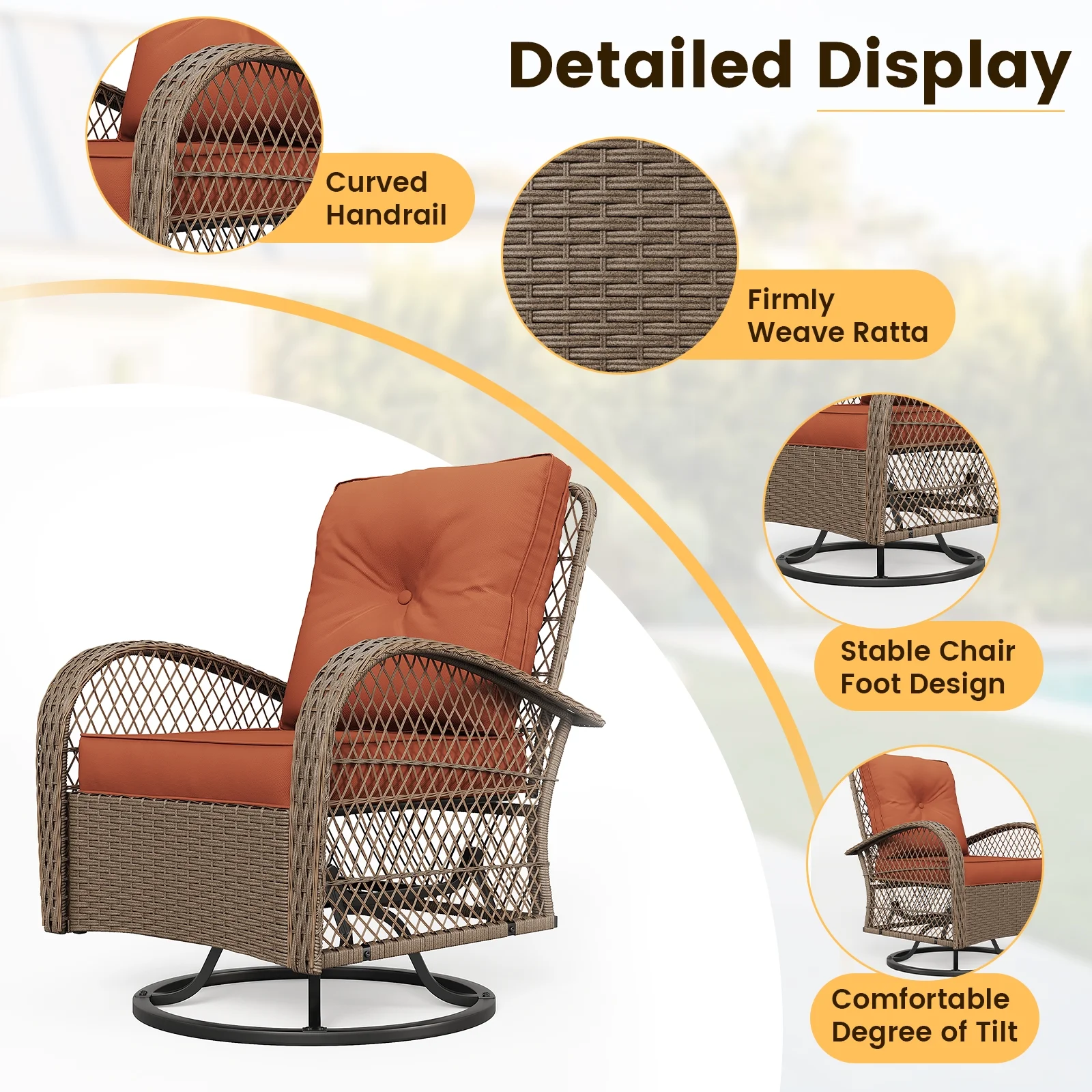 - 360° Rotation and Sliding: The rocking chair features a sturdy metal frame and round base, which supports 360-degree rotation and forward and backward sliding, allowing you to enjoy maximum freedom when relaxing outdoors.