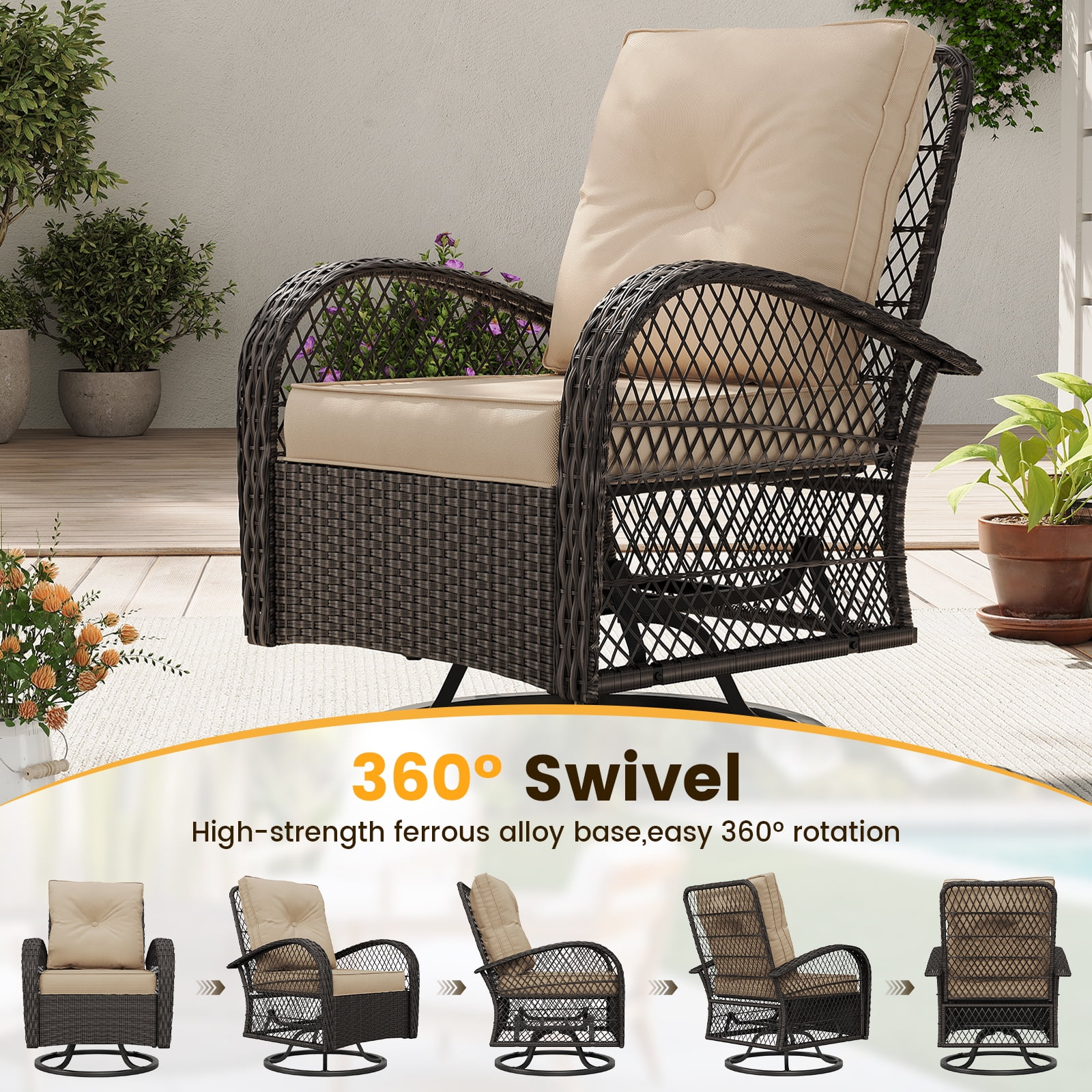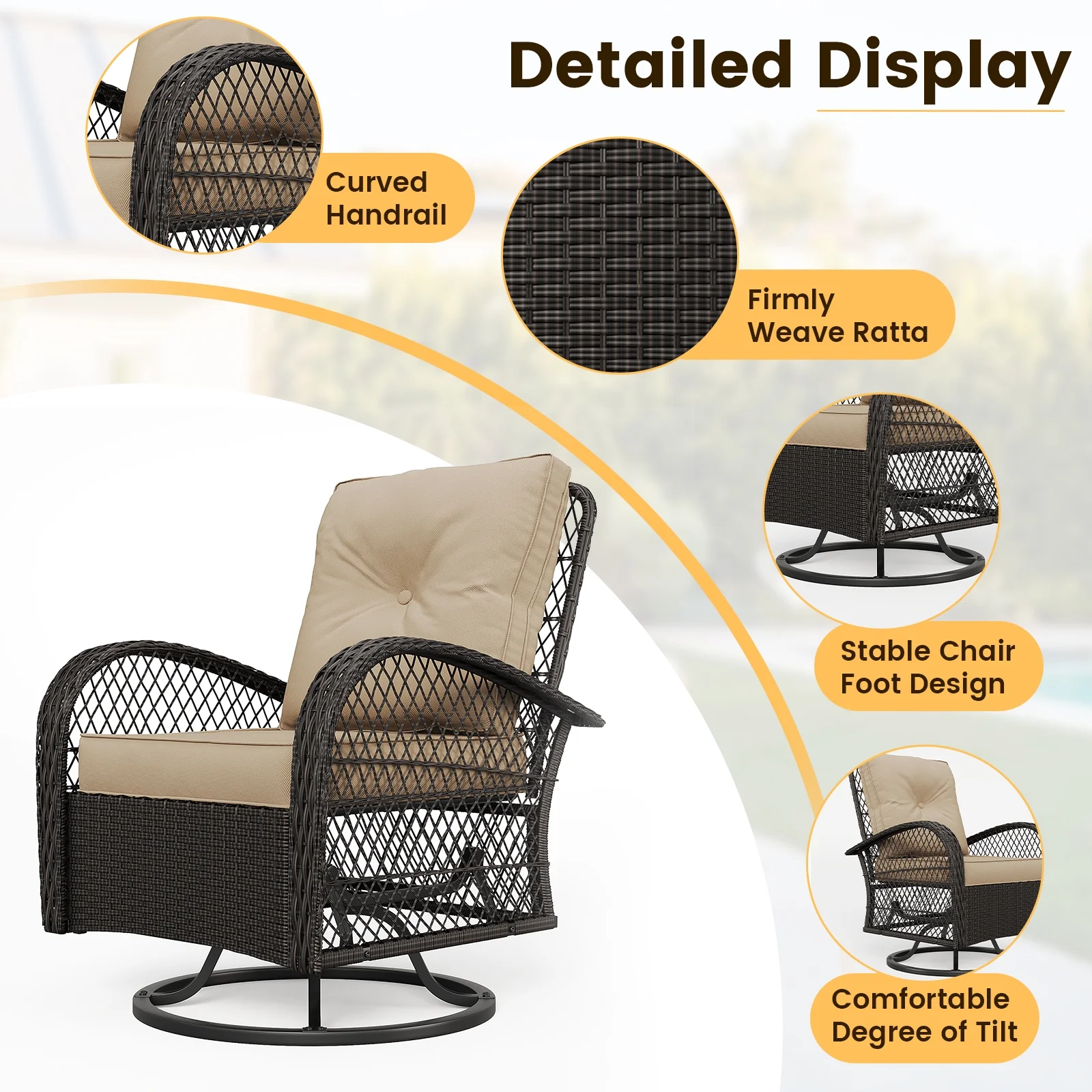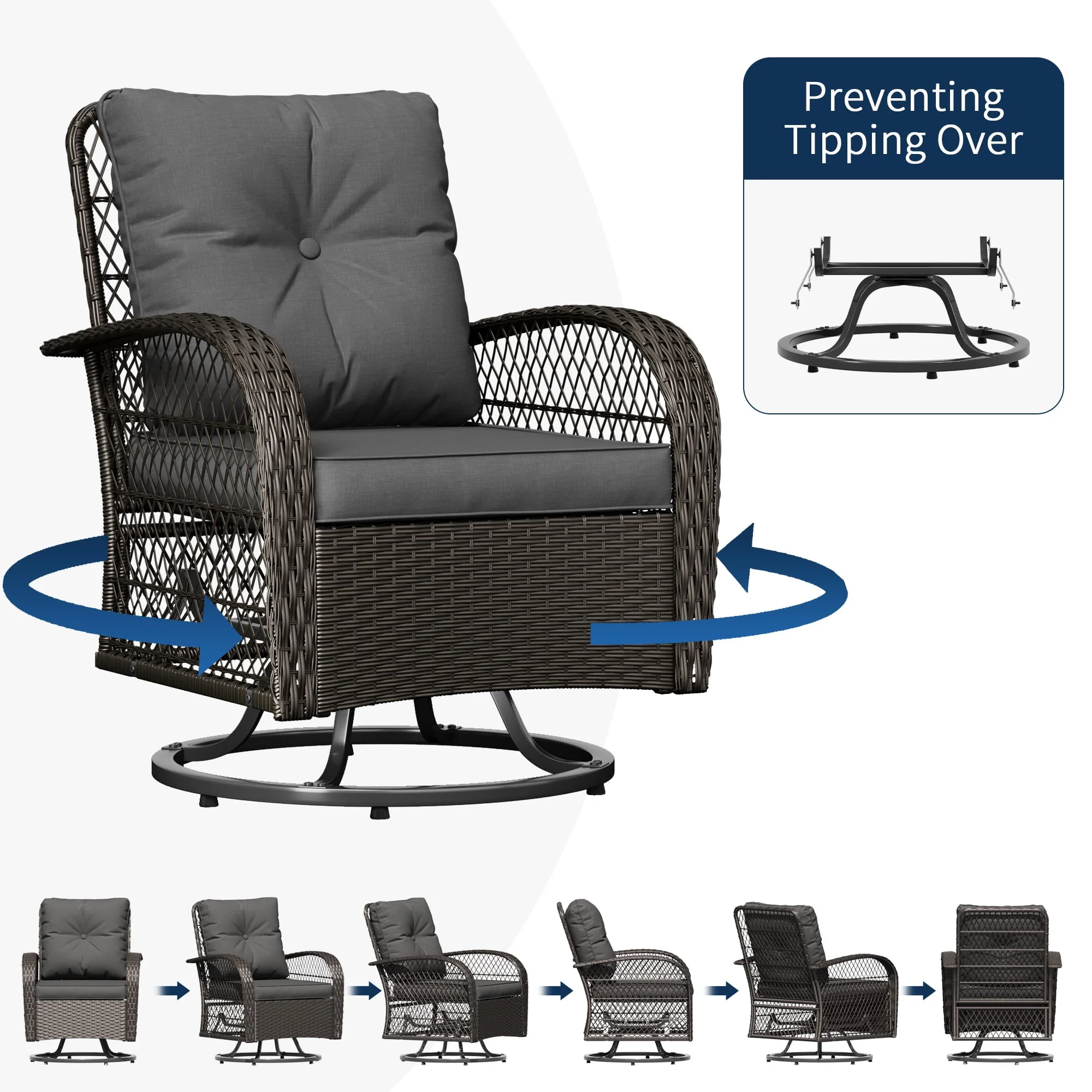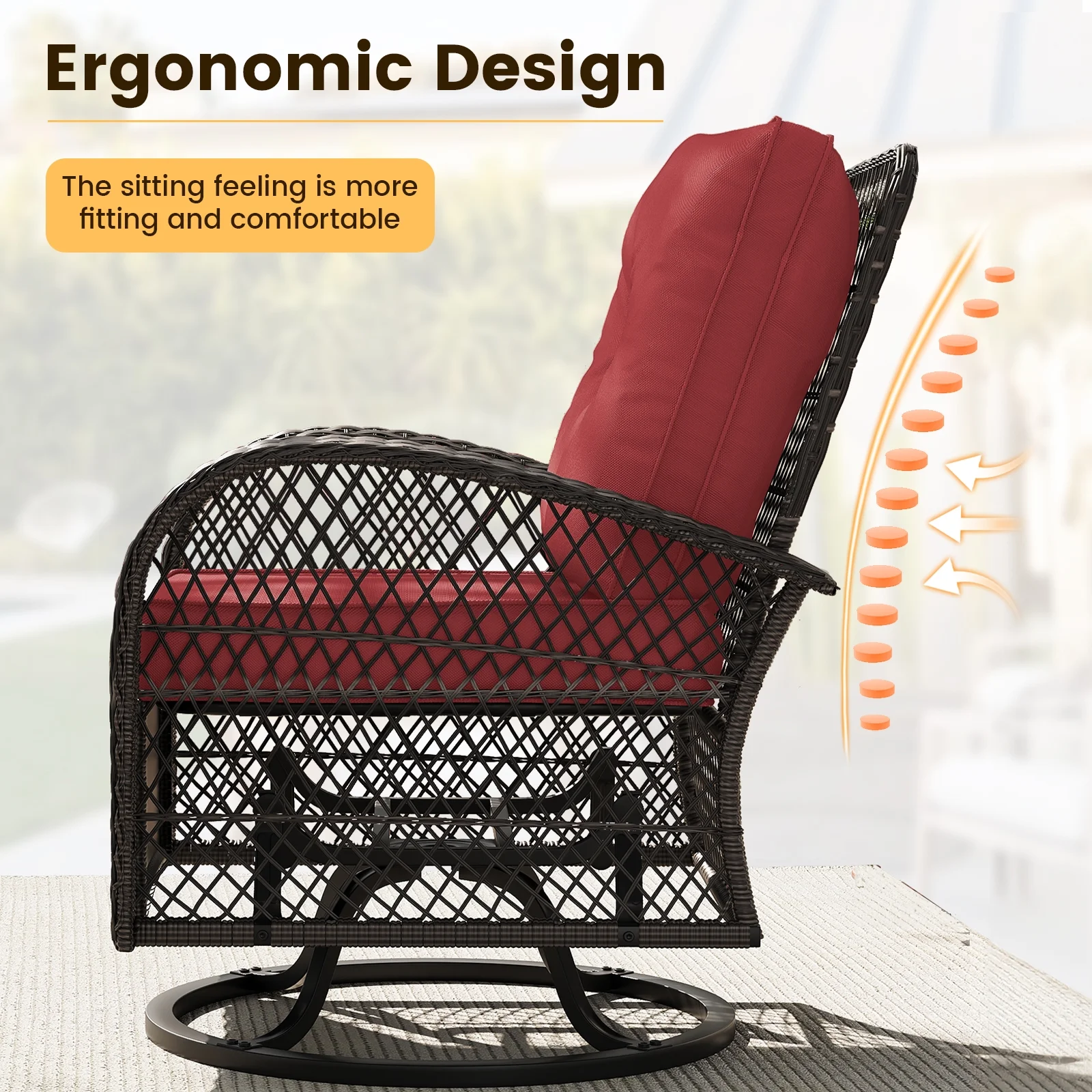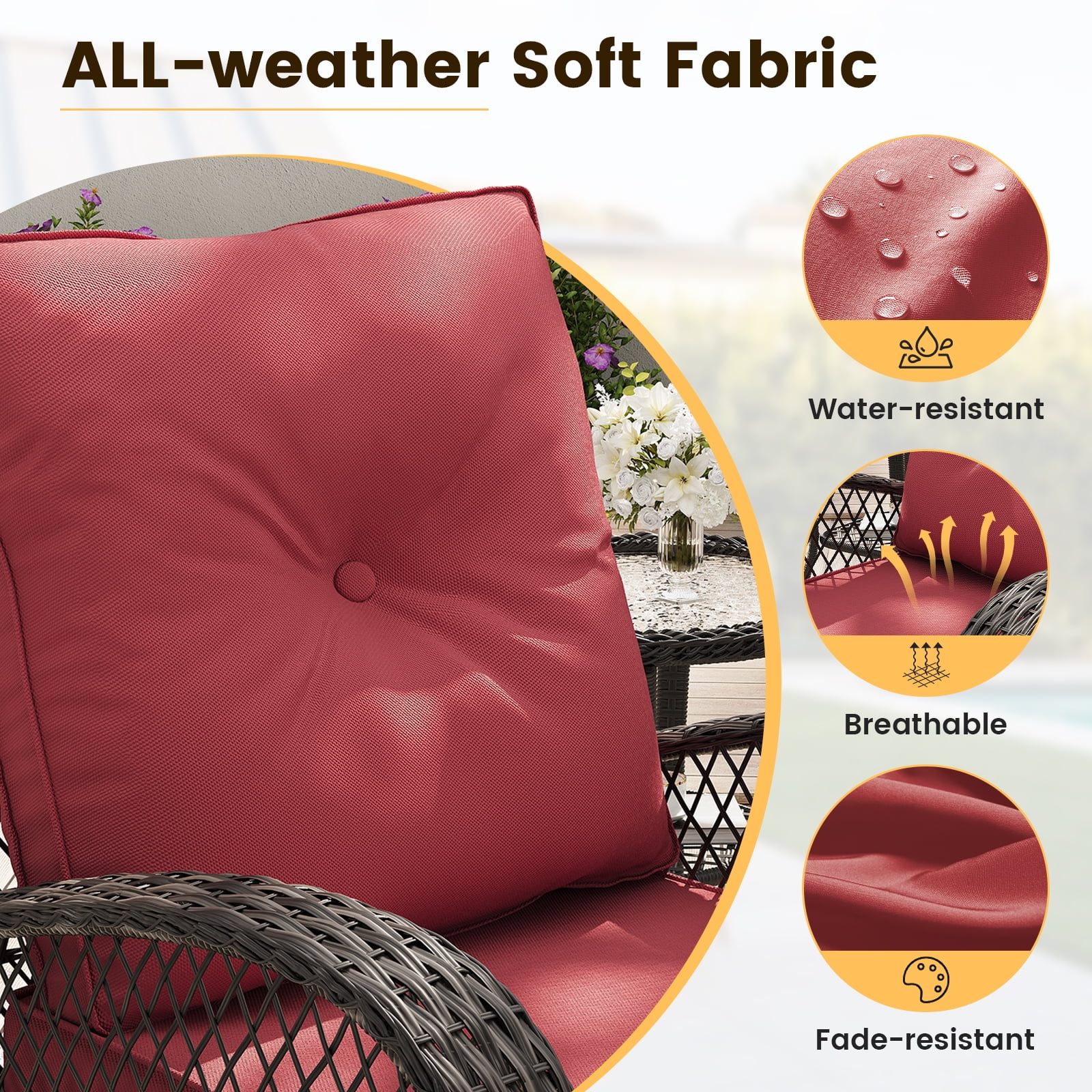 - 360° Rotation and Sliding: The rocking chair features a sturdy metal frame and round base, which supports 360-degree rotation and forward and backward sliding, allowing you to enjoy maximum freedom when relaxing outdoors.