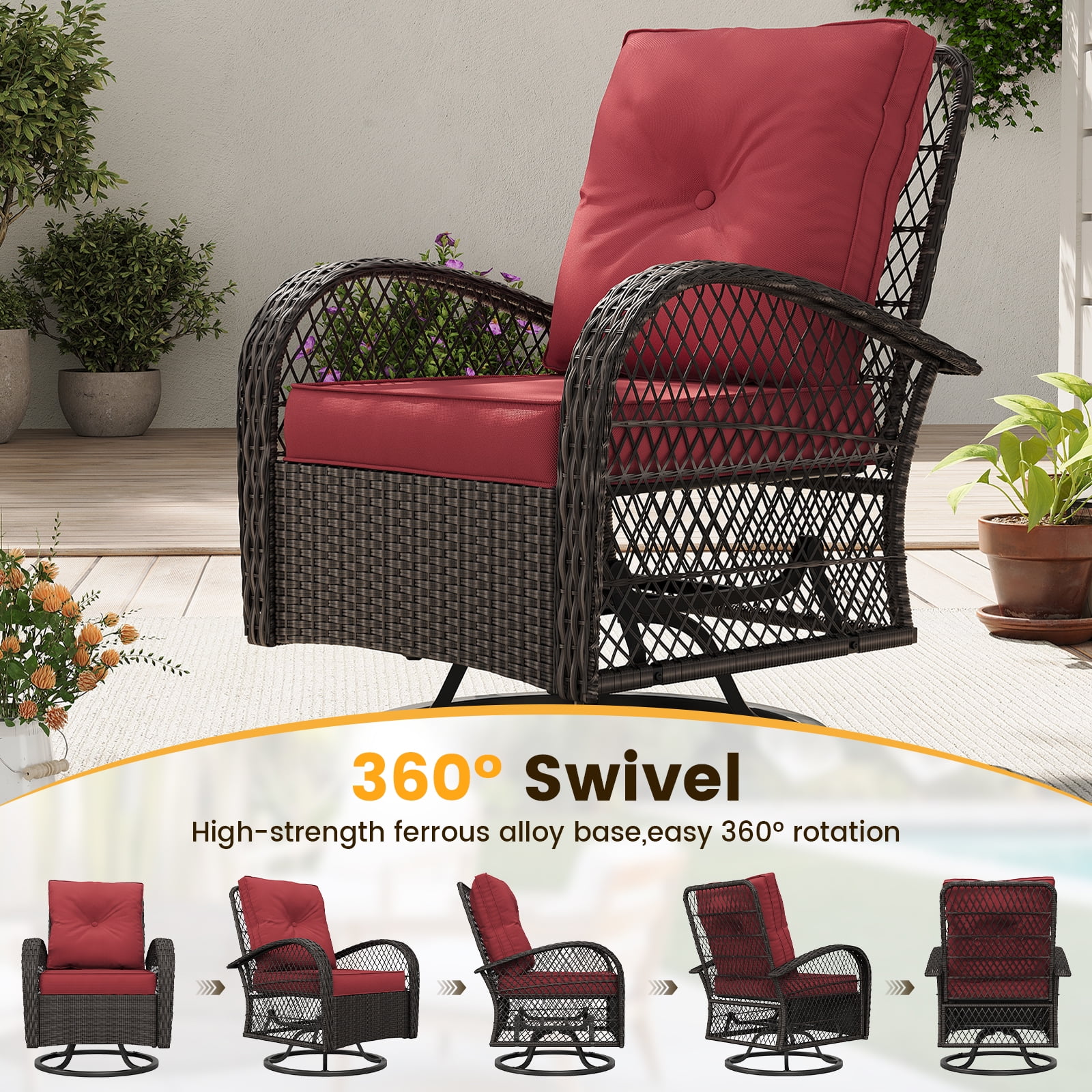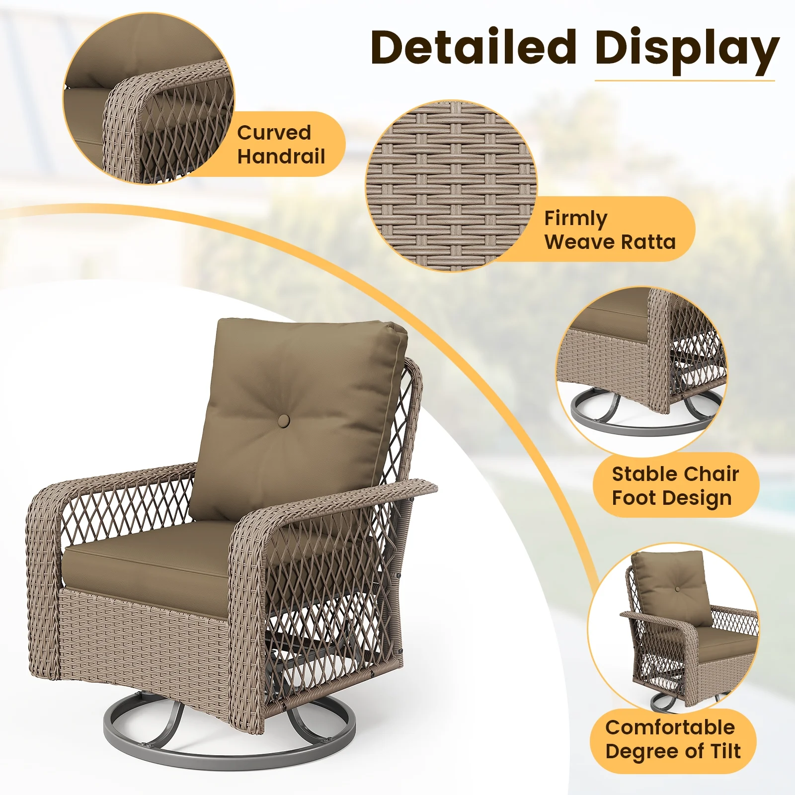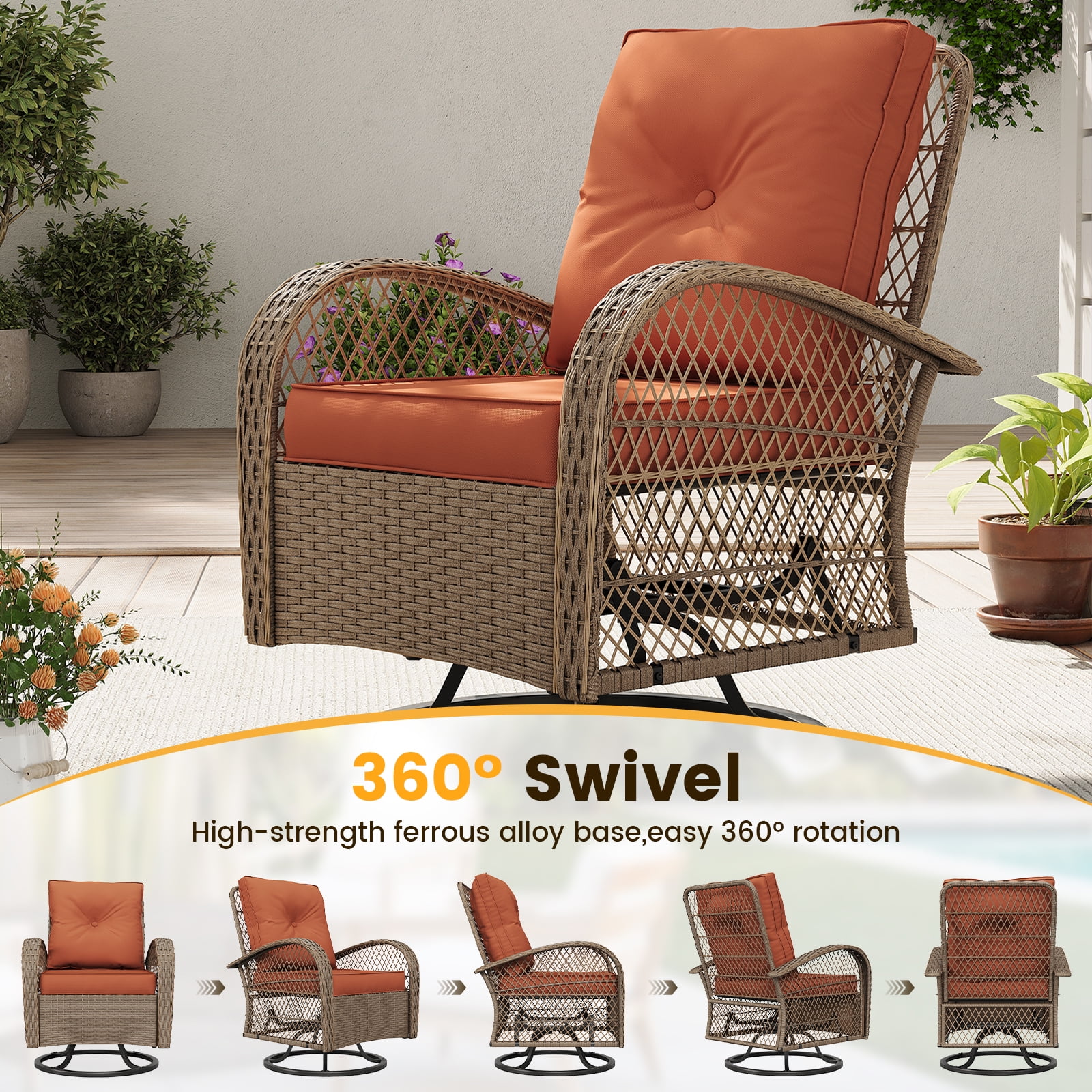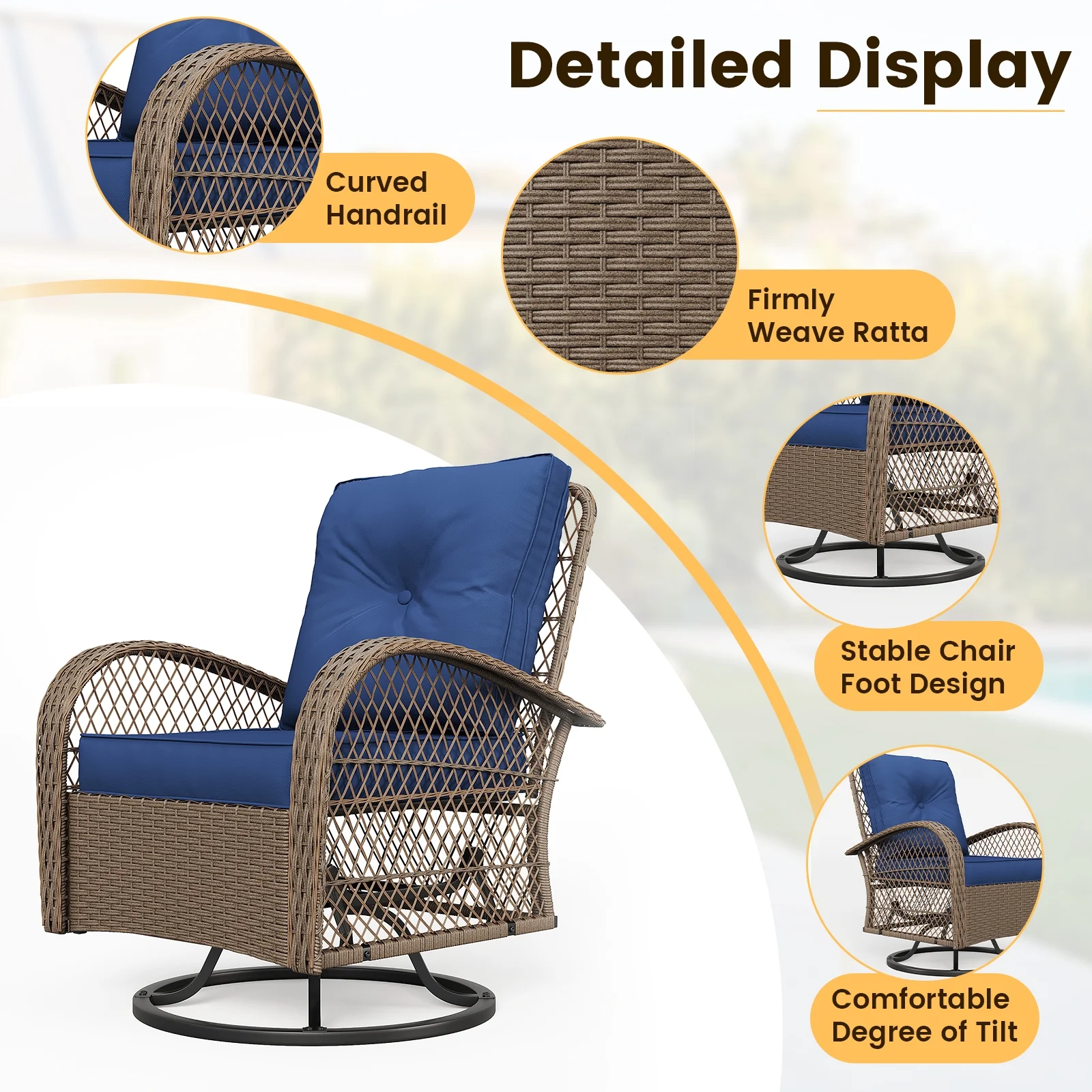 - 360° Rotation and Sliding: The rocking chair features a sturdy metal frame and round base, which supports 360-degree rotation and forward and backward sliding, allowing you to enjoy maximum freedom when relaxing outdoors.