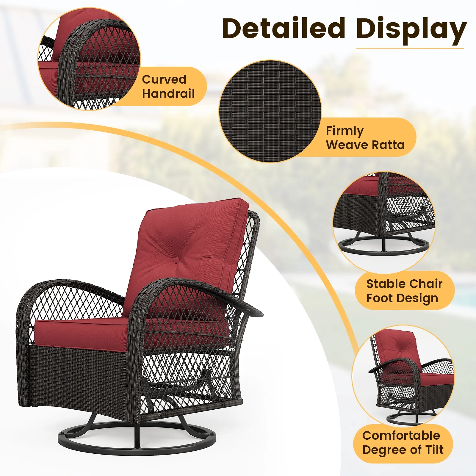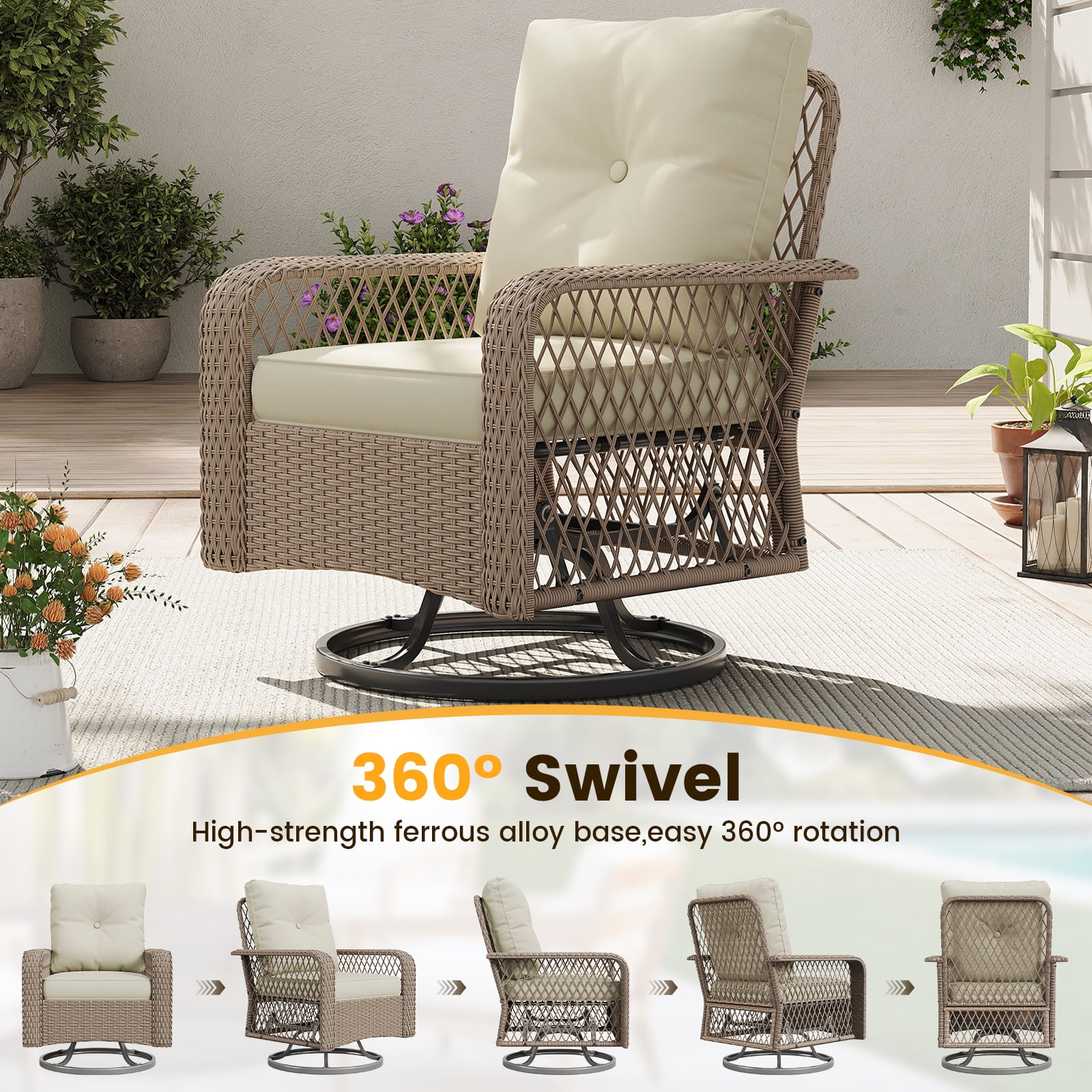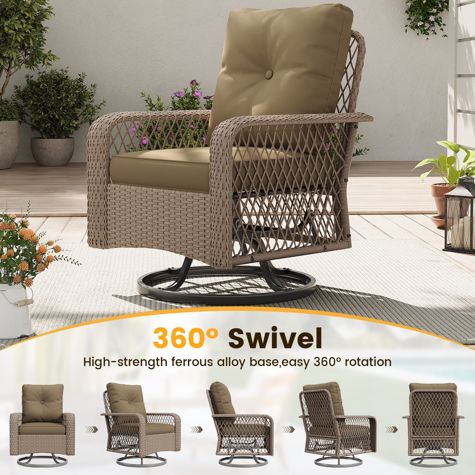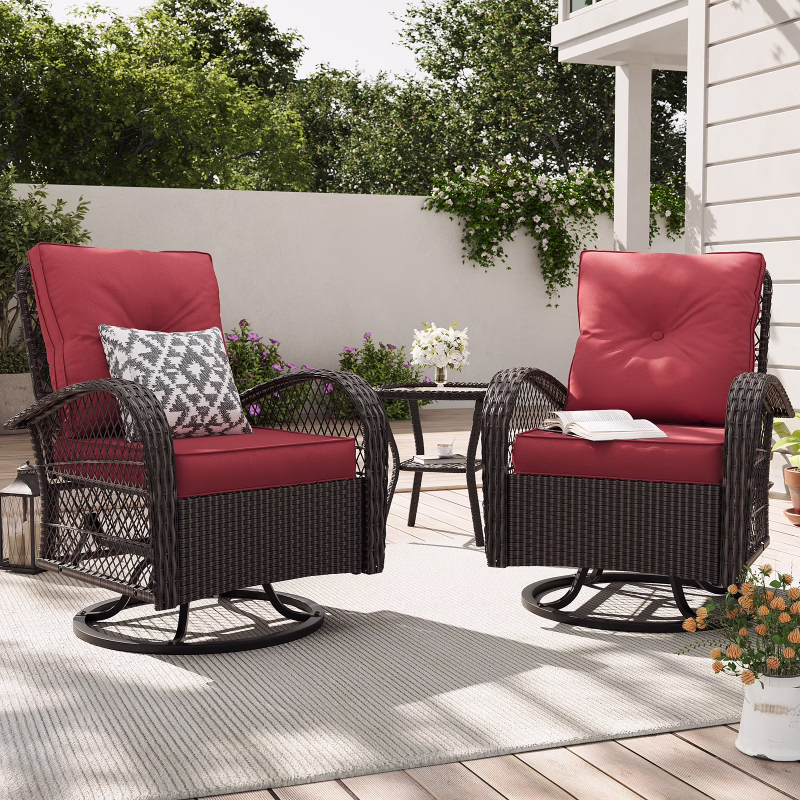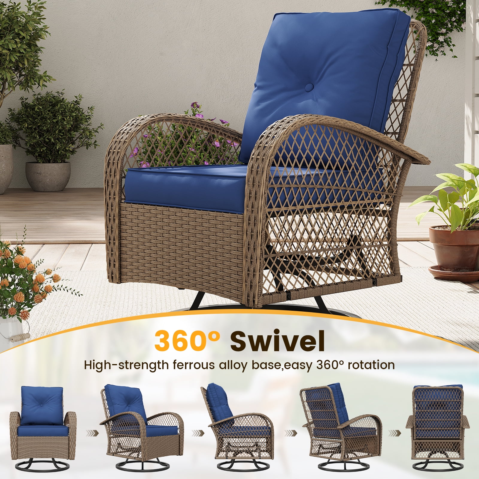 - 360° Rotation and Sliding: The rocking chair features a sturdy metal frame and round base, which supports 360-degree rotation and forward and backward sliding, allowing you to enjoy maximum freedom when relaxing outdoors.