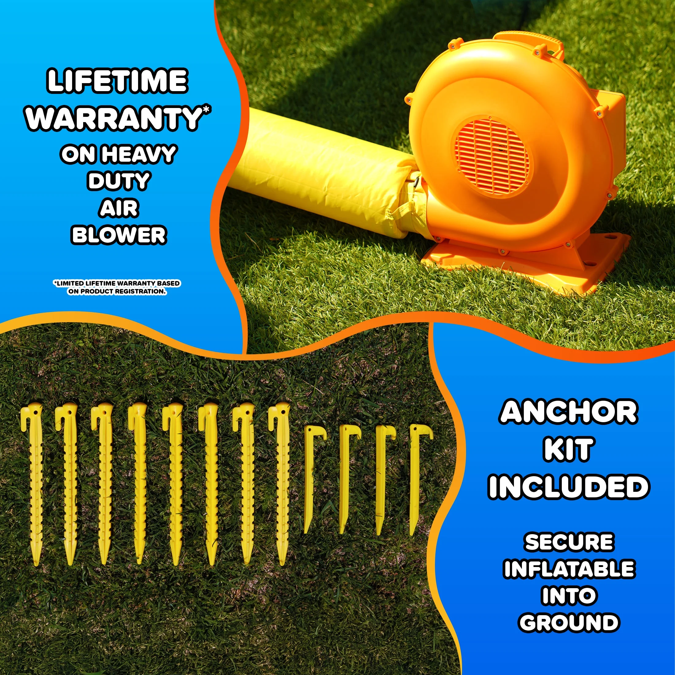 - COMPLETE PACKAGE �?Includes blower (with lifetime warranty), hose, stakes, repair kit, and carry bag