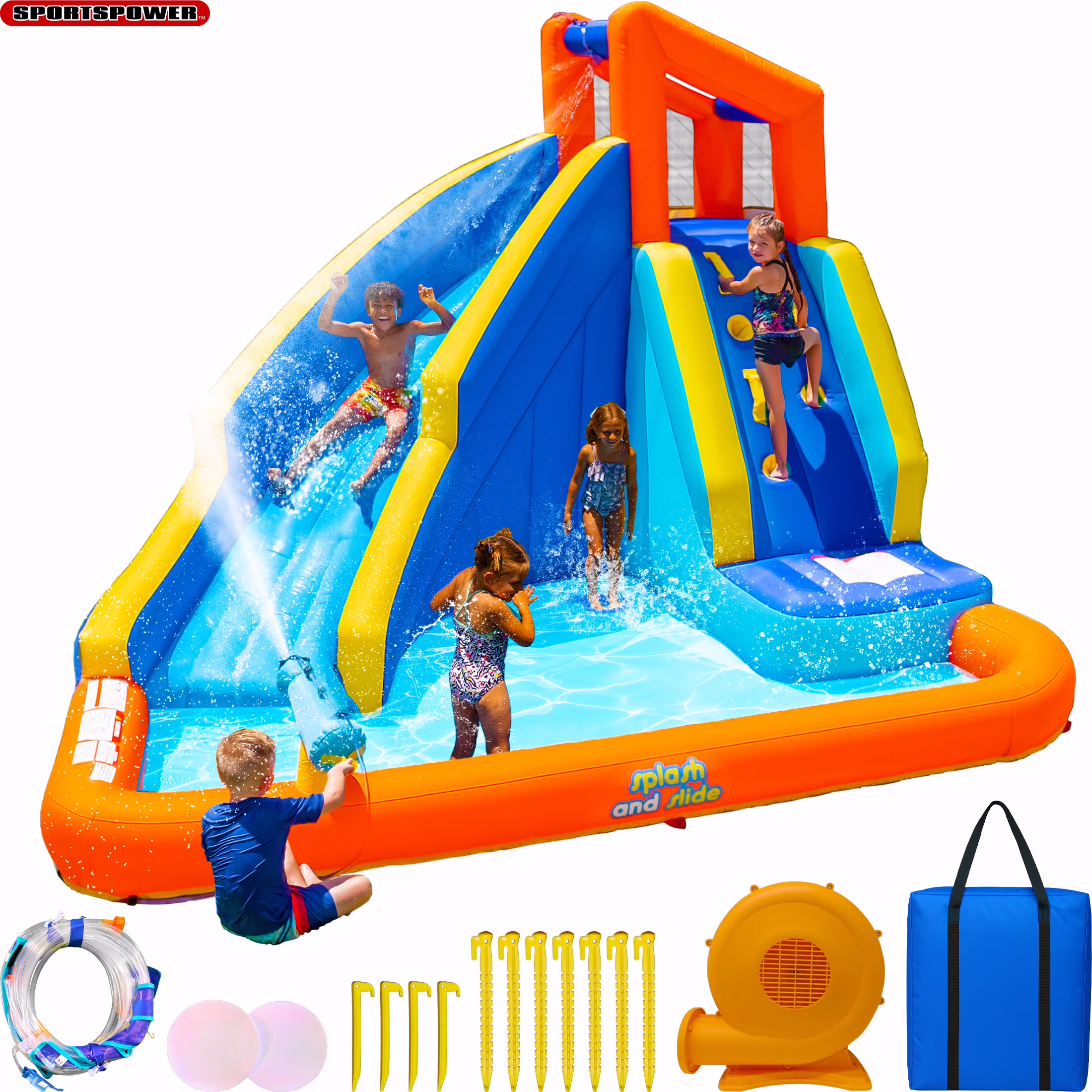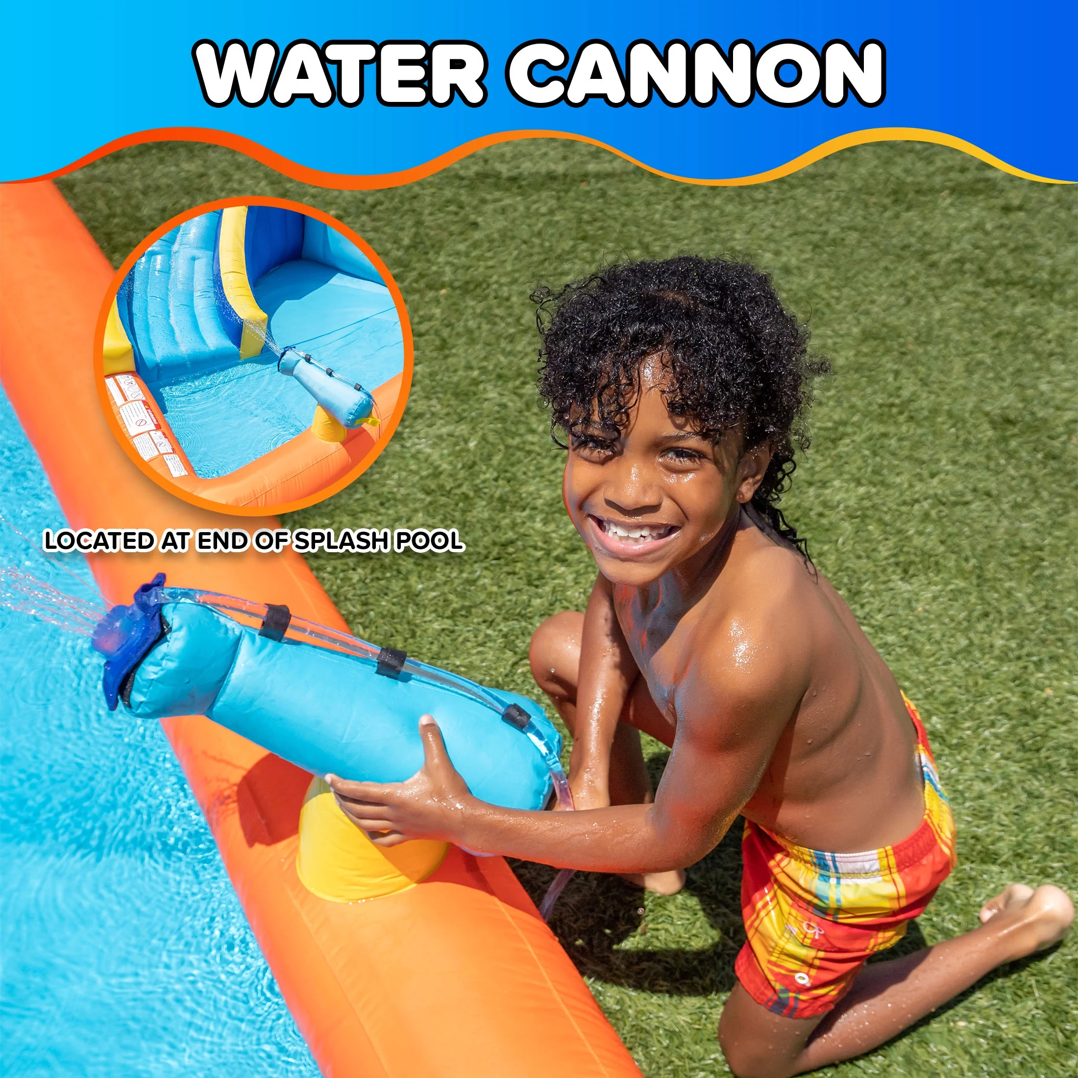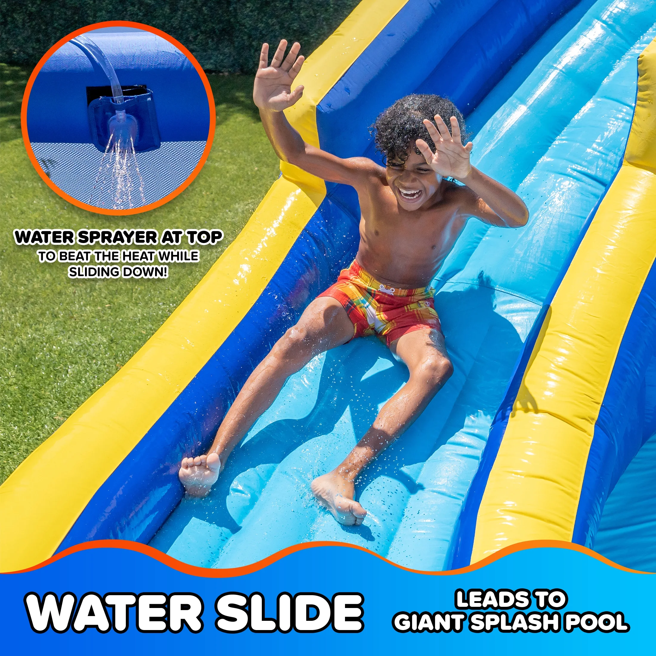 - NONSTOP WATER FUN �?Features a curved water slide, splash pool, and climbing wall for hours of backyard action