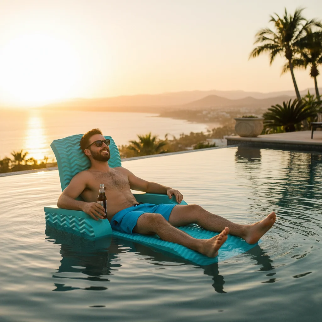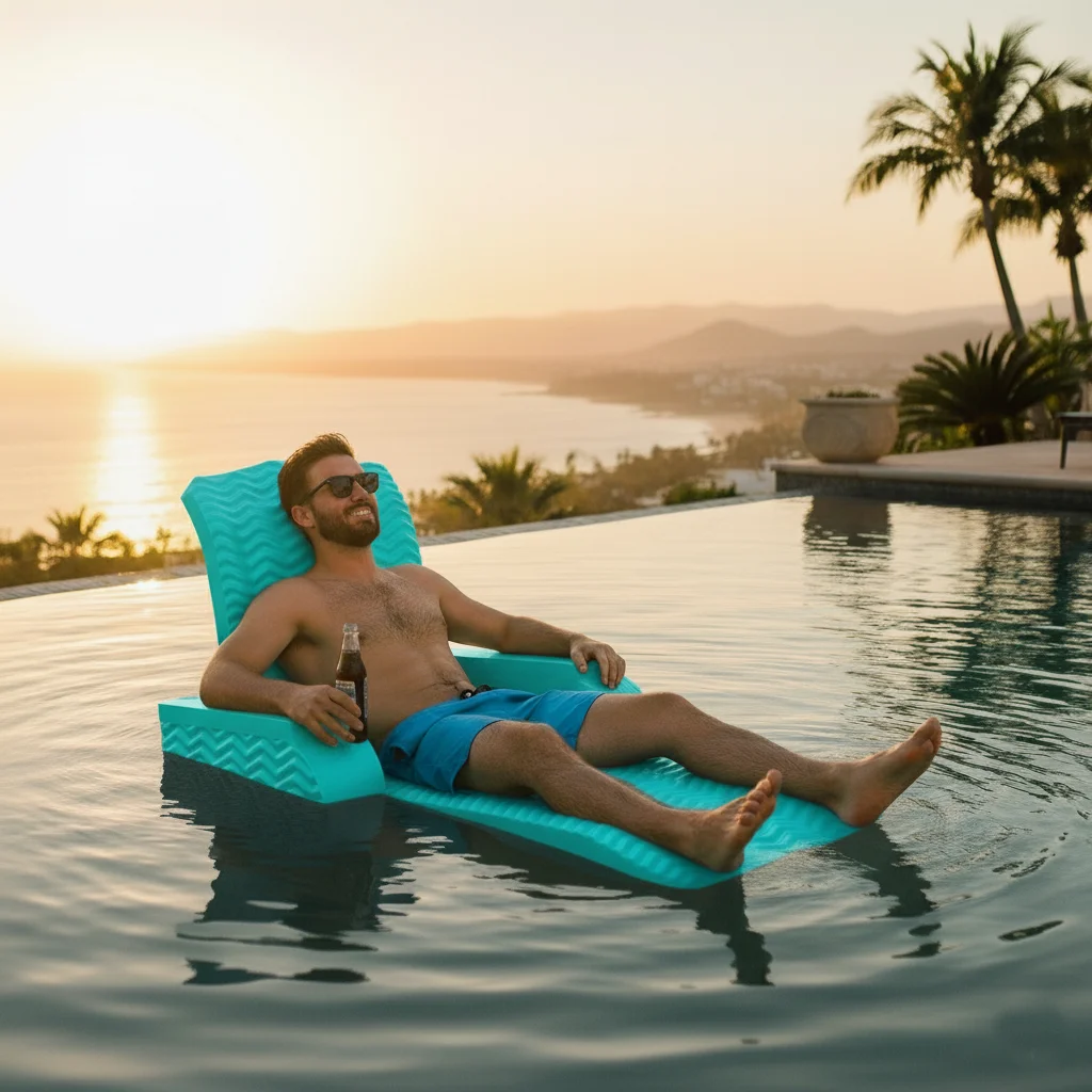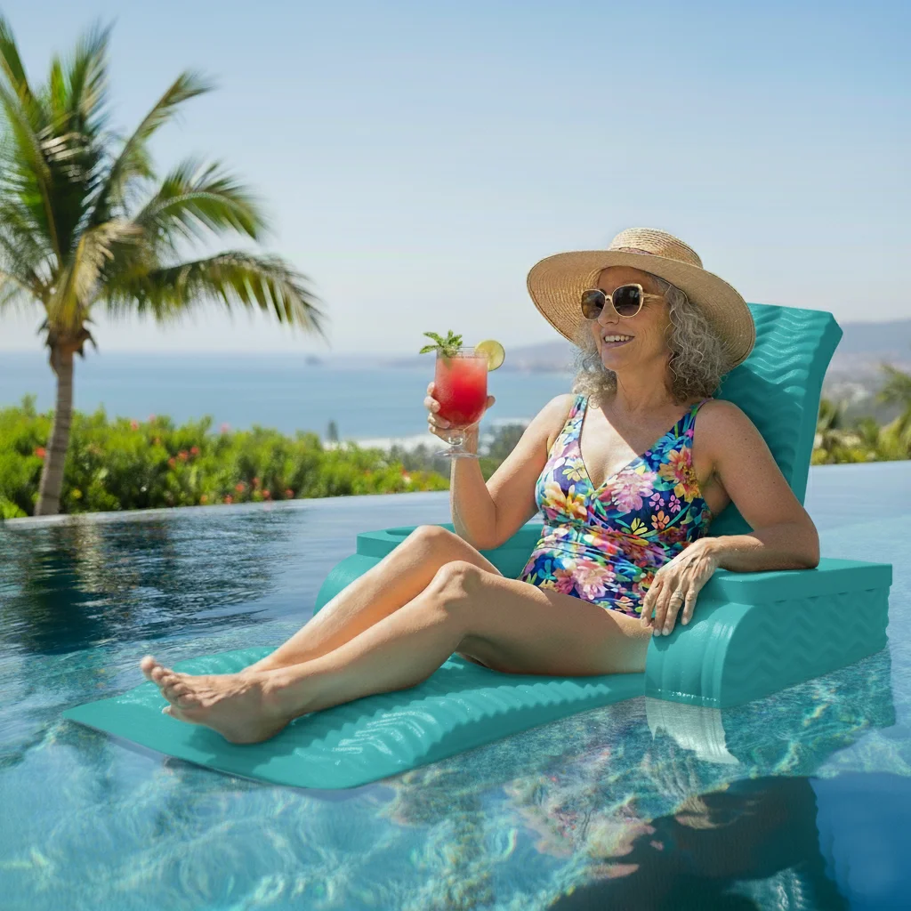California Sun Deluxe Unsinkable La Jolla Lounger Teal Wave Foam Chaise Chair