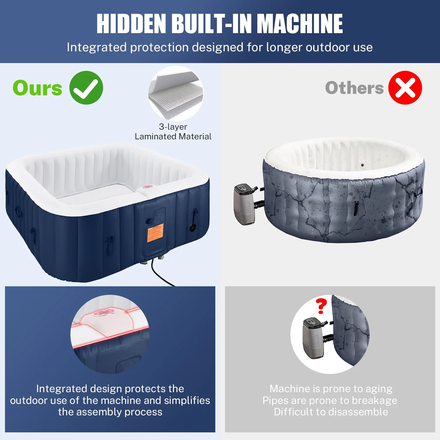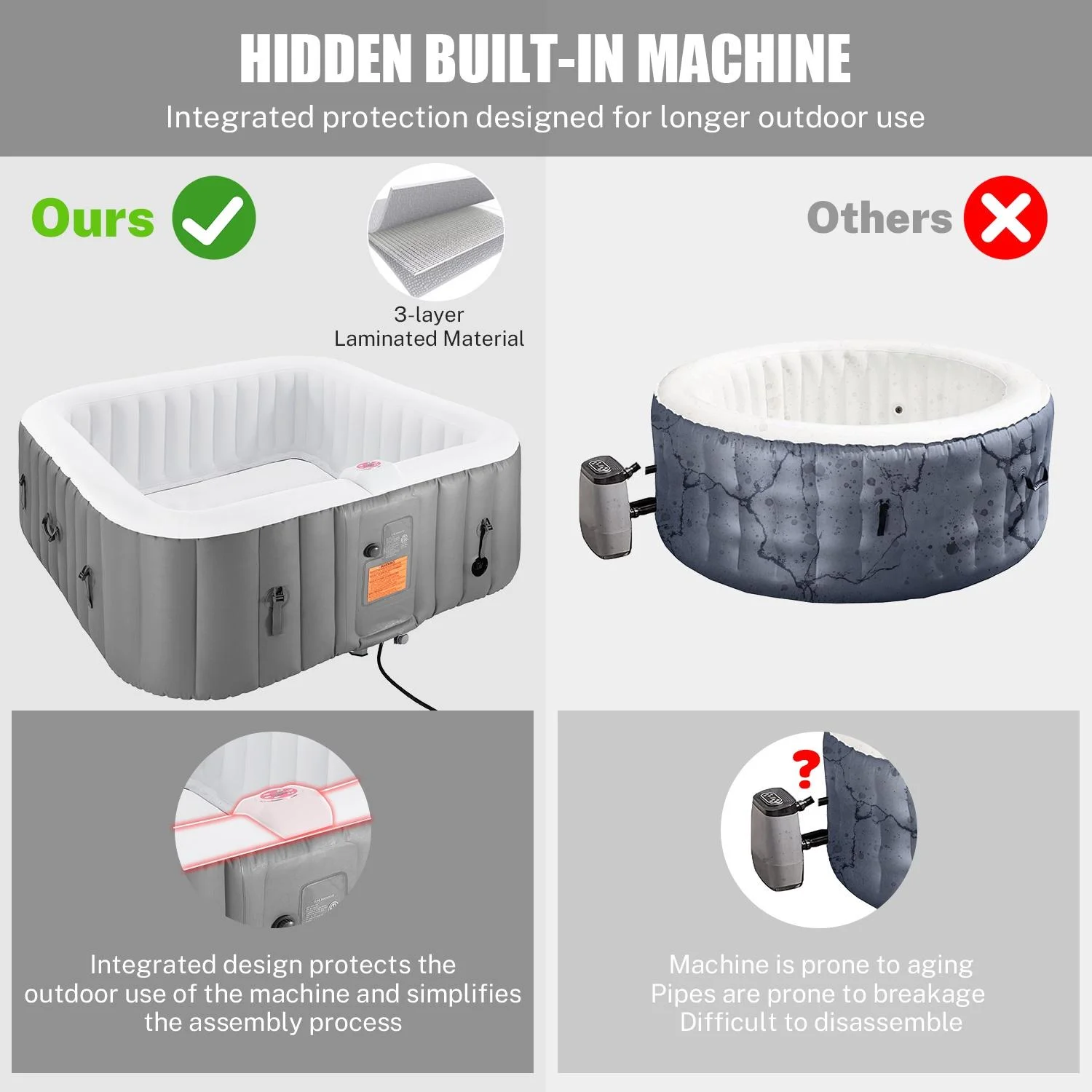 ??Note: To avoid hot tub expansion and deformation, please do not expose the product to sunlight for a long time!