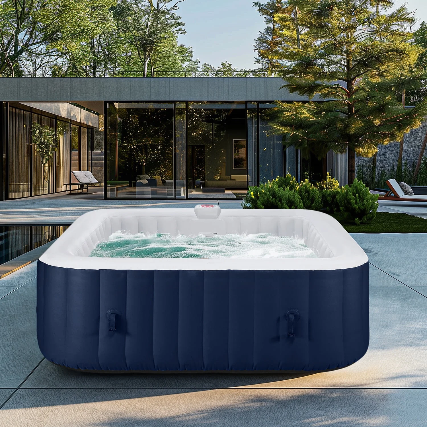 - ??: The outdoor hot tub's integrated design comprises a built-in electric air pump and control box for ease of use. The thickened PVC shell safeguards the machine for outdoor use. At the same time, the overall appearance is beautiful.