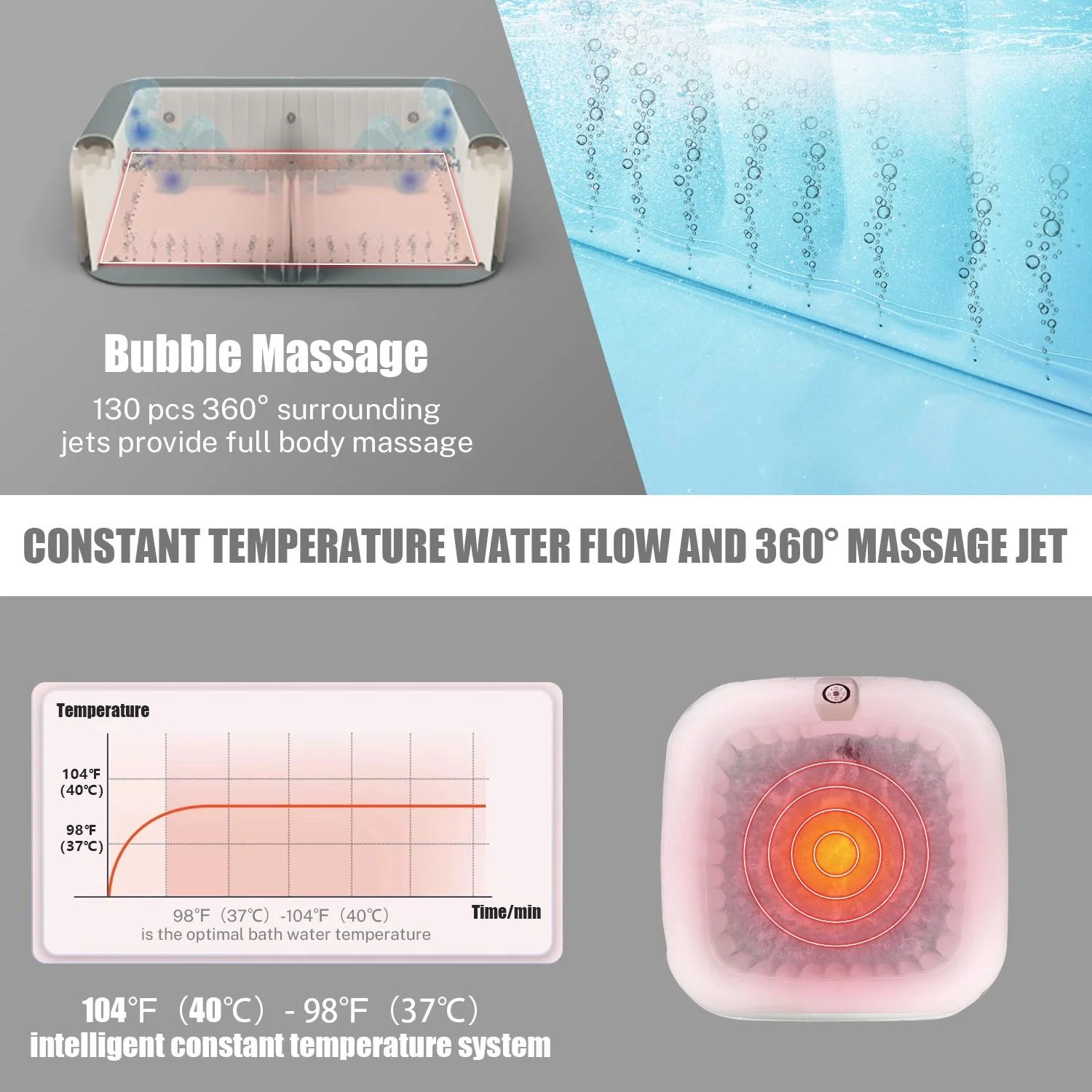 3. 360�� all-round water massage: 130 surrounding massage jet devices.