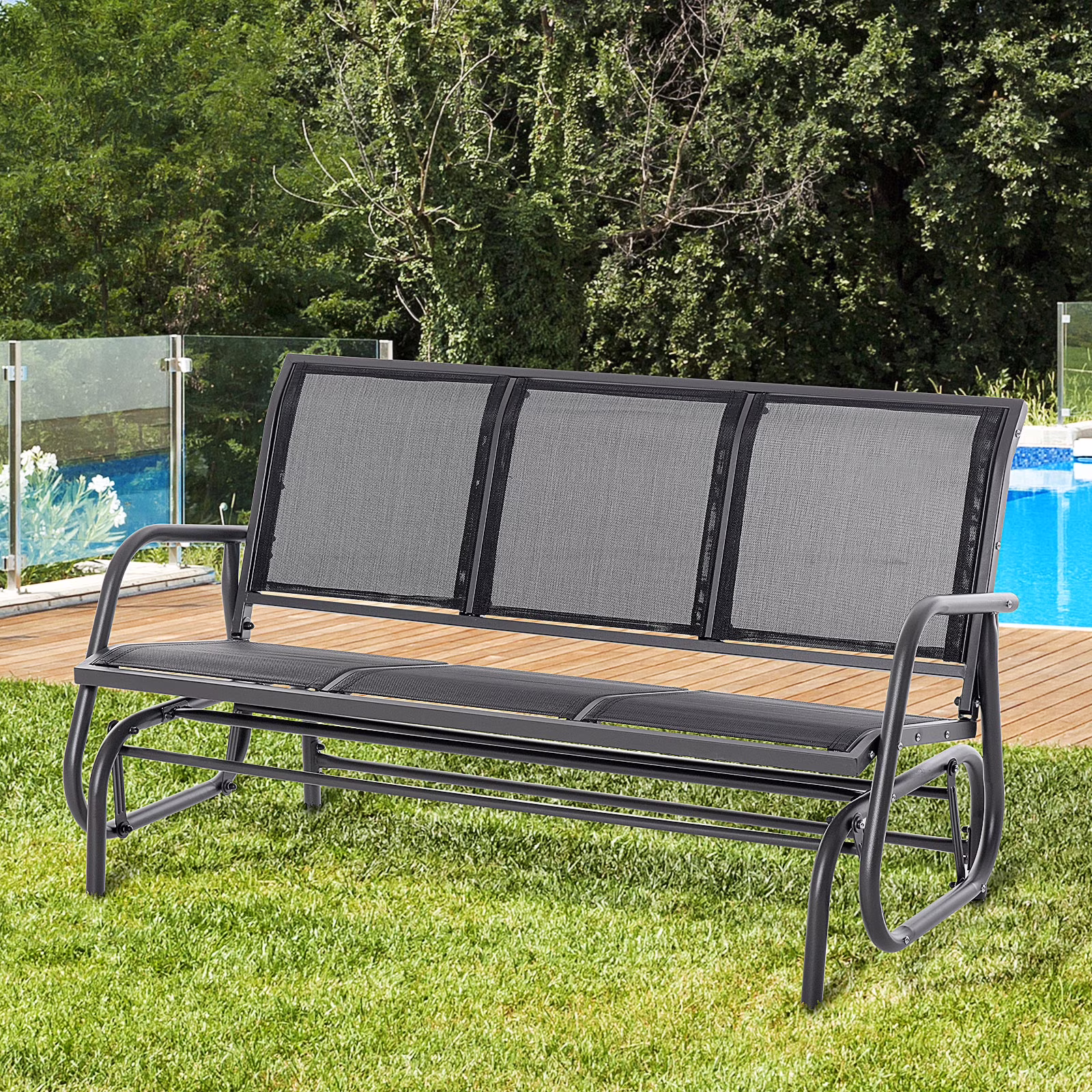 - Outdoor Glider Chair: Our patio glider bench lets you rock through the summer with family and friends. Placed on the porch, patio, by the pool, the backyard, balcony, or beyond, it fits any outdoor setting to provide wide and comfortable seating.