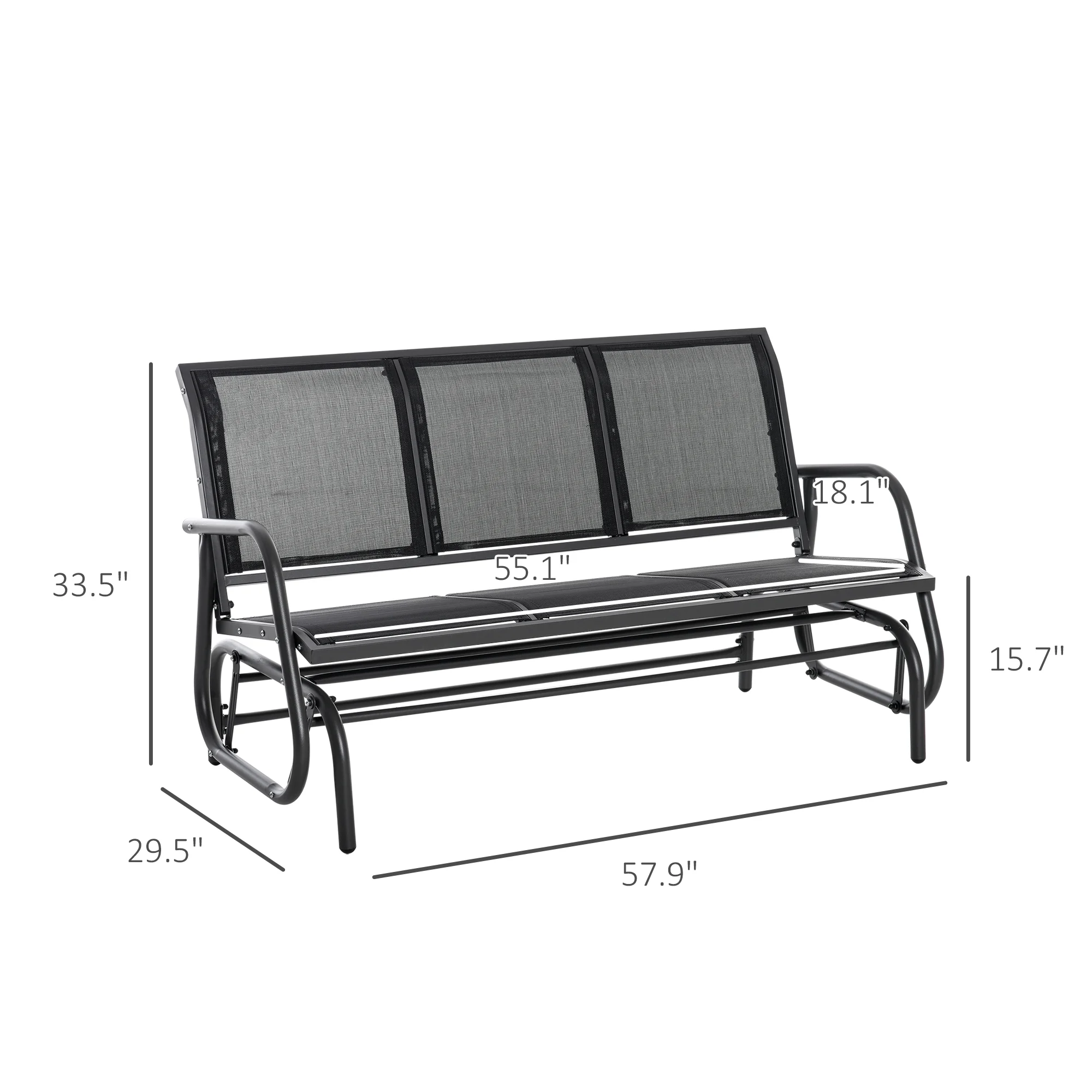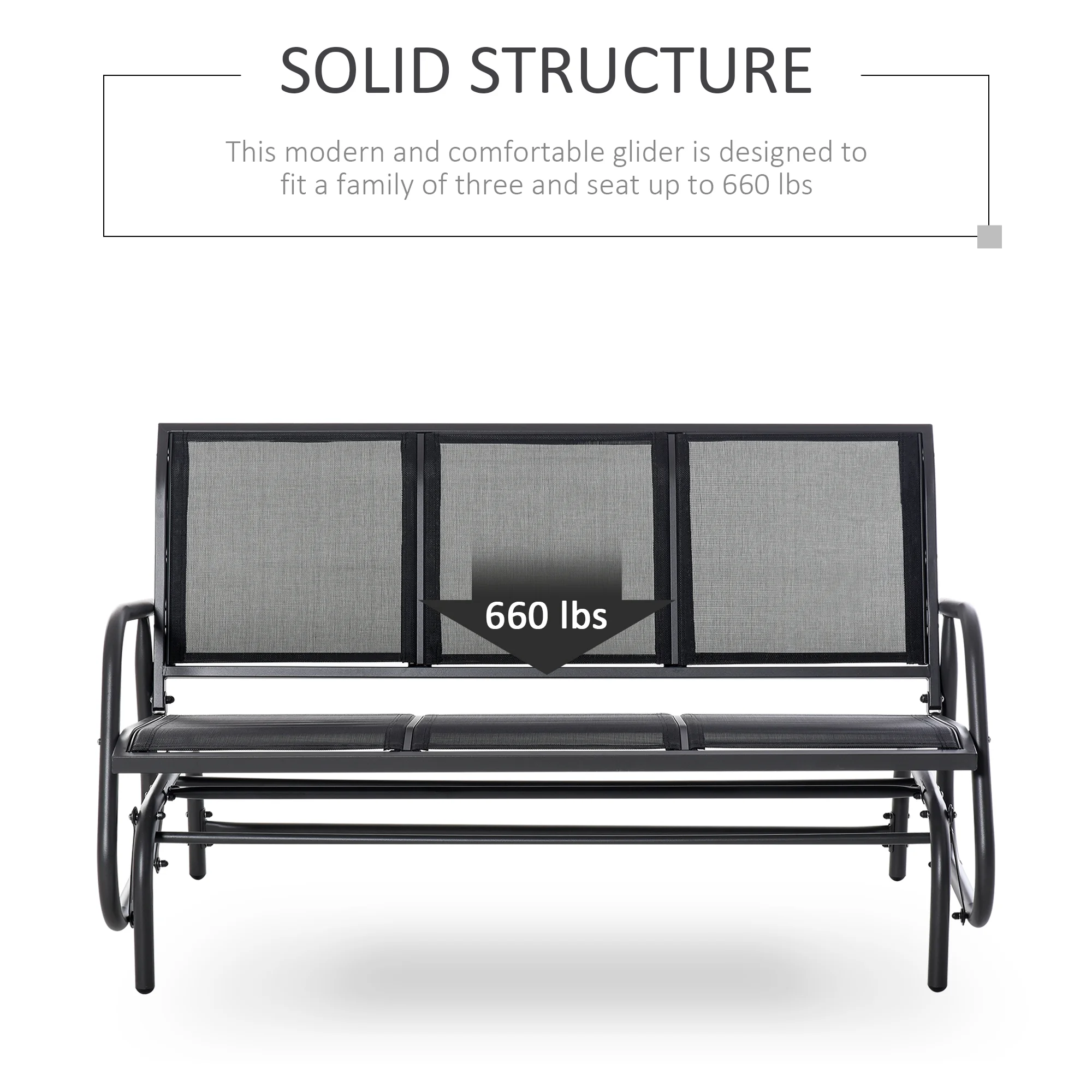 - Three Seater: With room for three, our glider bench can fit a whole small family. More than just stationary seating, it provides a fun yet functional place to sit, making time outside more enjoyable.