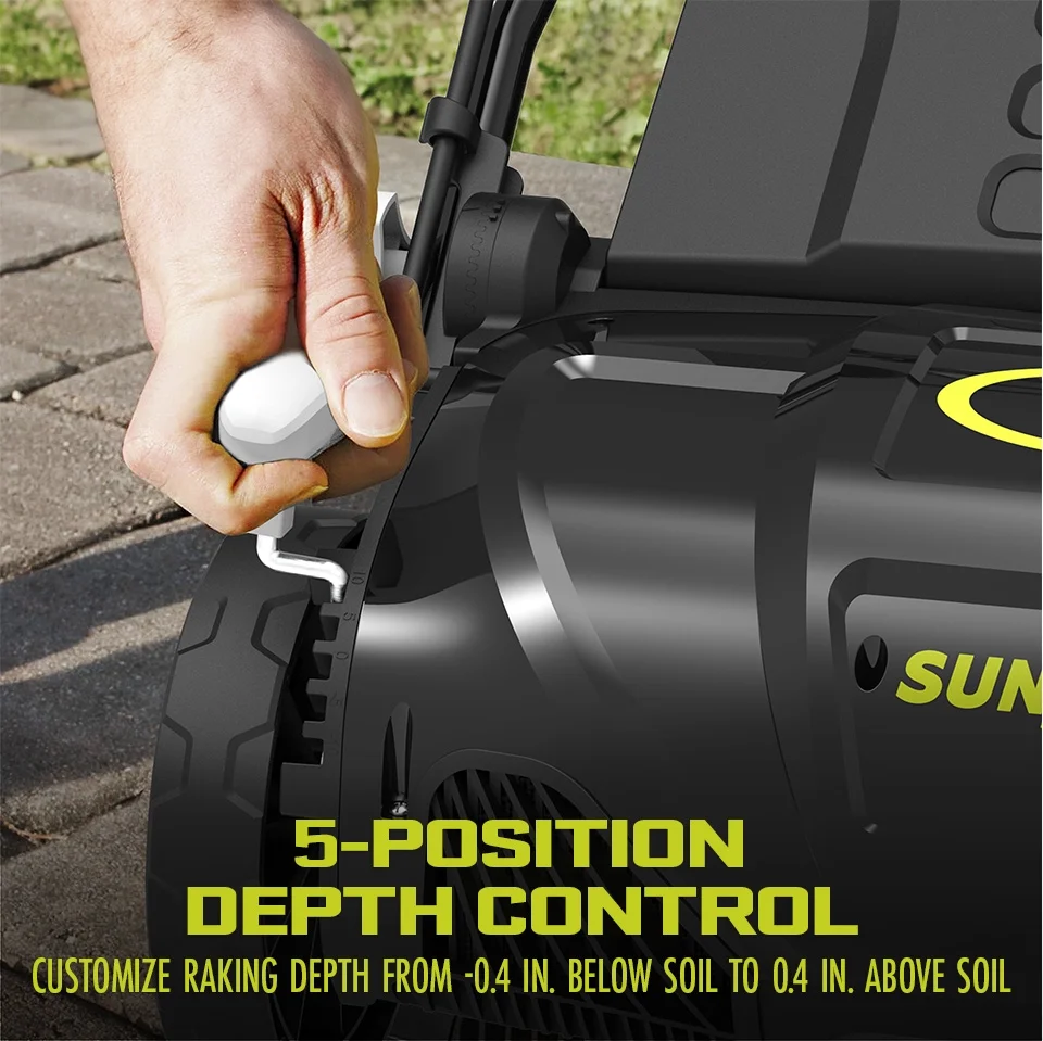 - Tailor the raking depth from 0 inches to 0.4 inches and the scarifying depth from -0.4 inches to 0 inches with the 5-position depth control knob