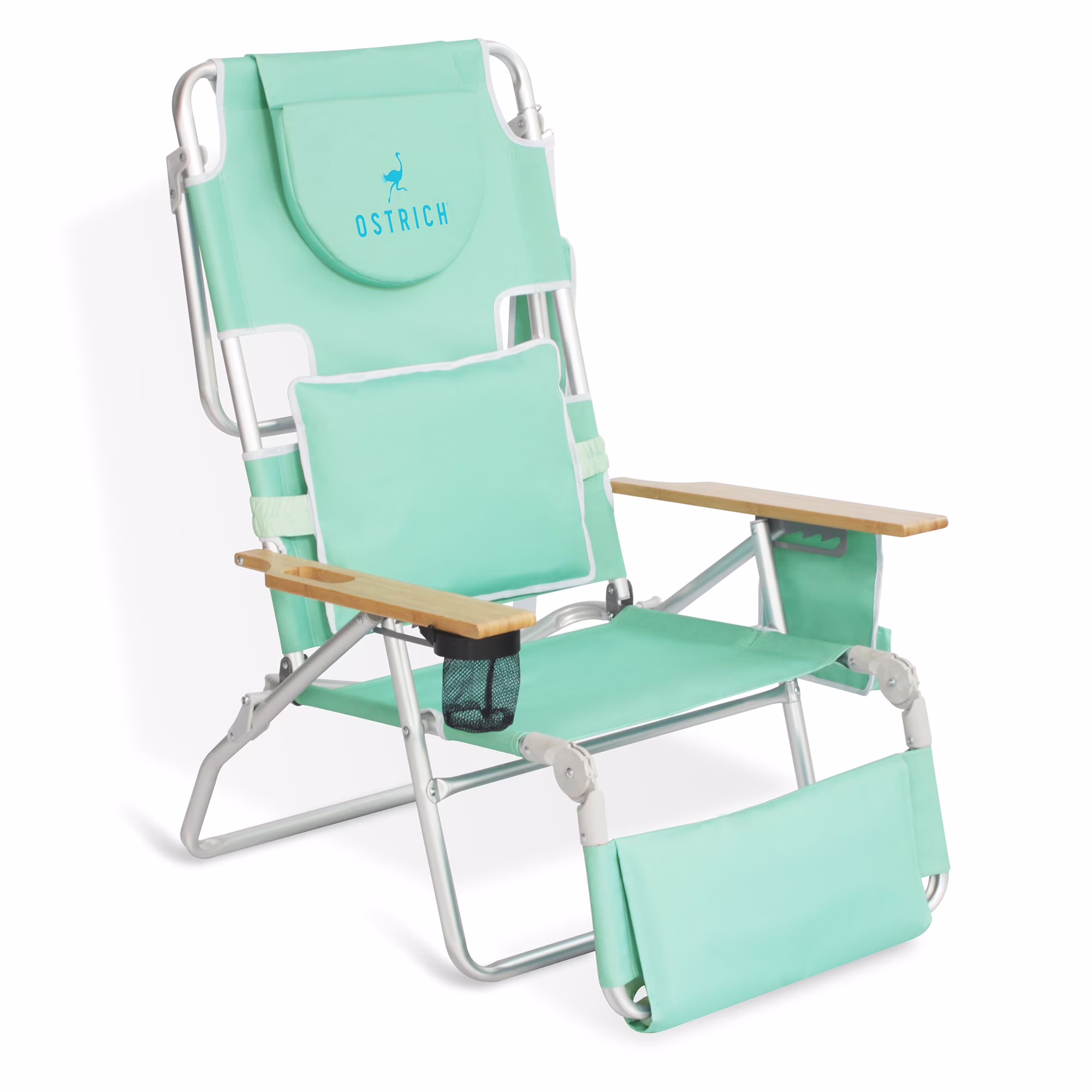 - Reclining beach chair offers a wide range of options with 5 chair positions and 3 footrest positions for peak comfort you desire