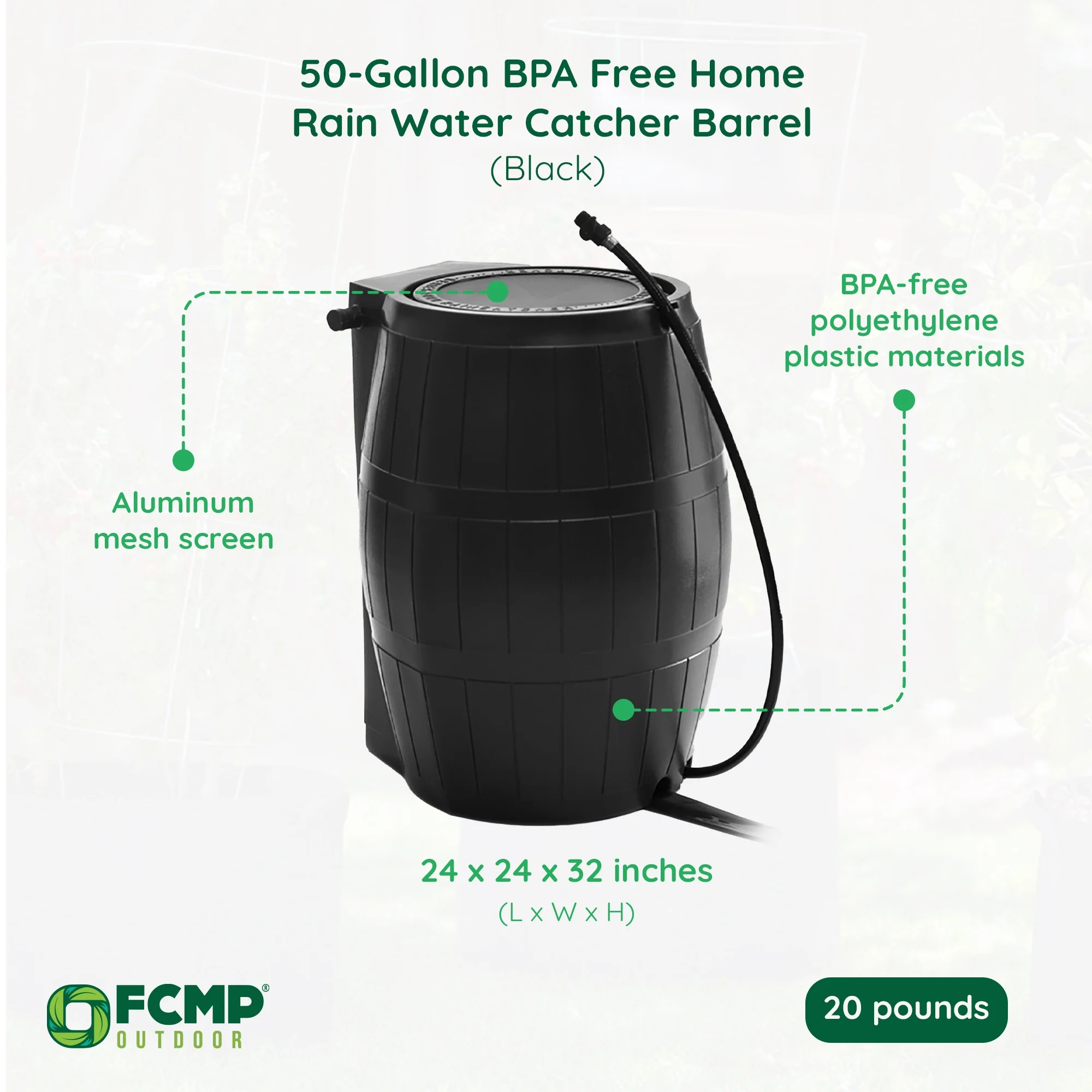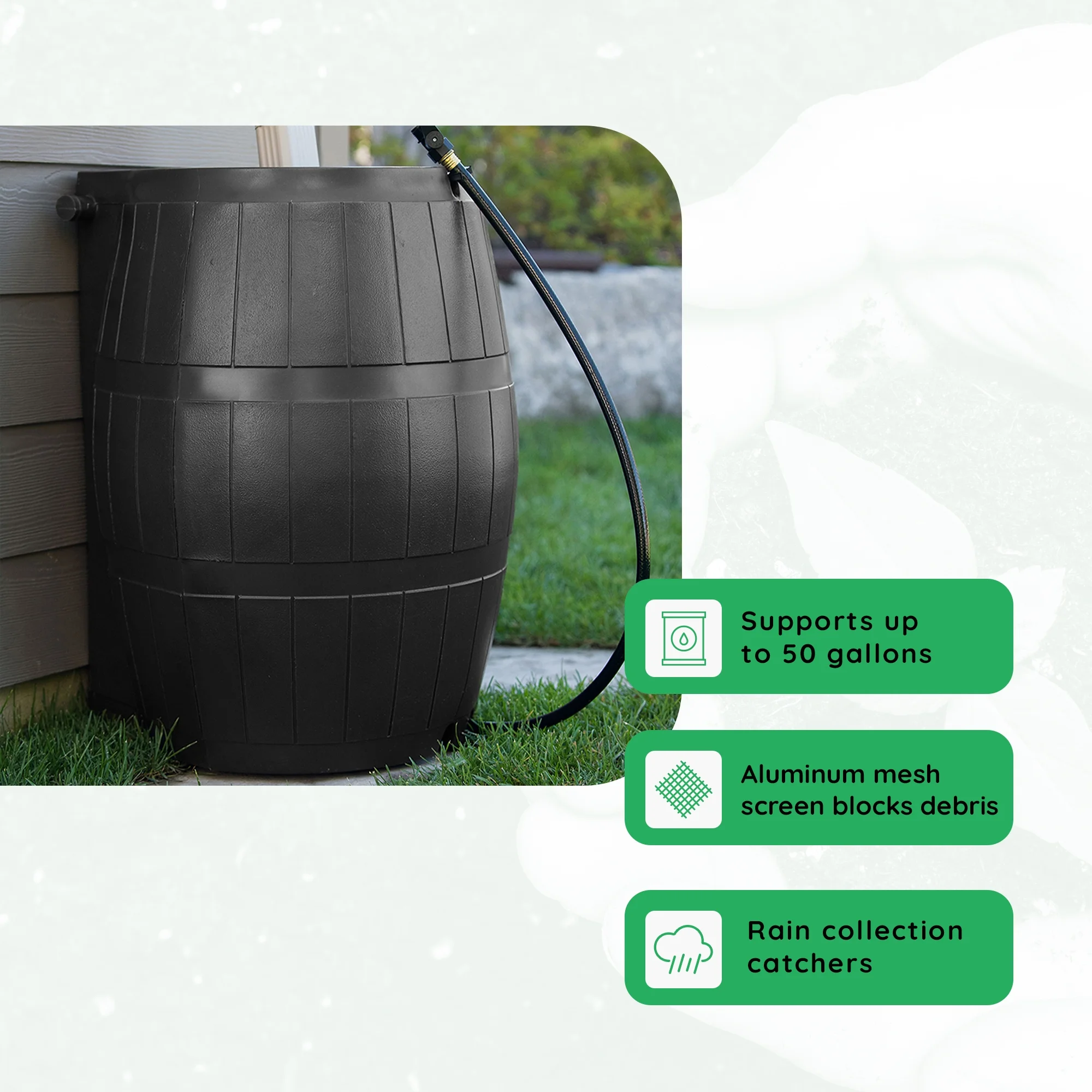 - Holds up to 50 gallons (6 cubic feet/189 liters) of rainwater
