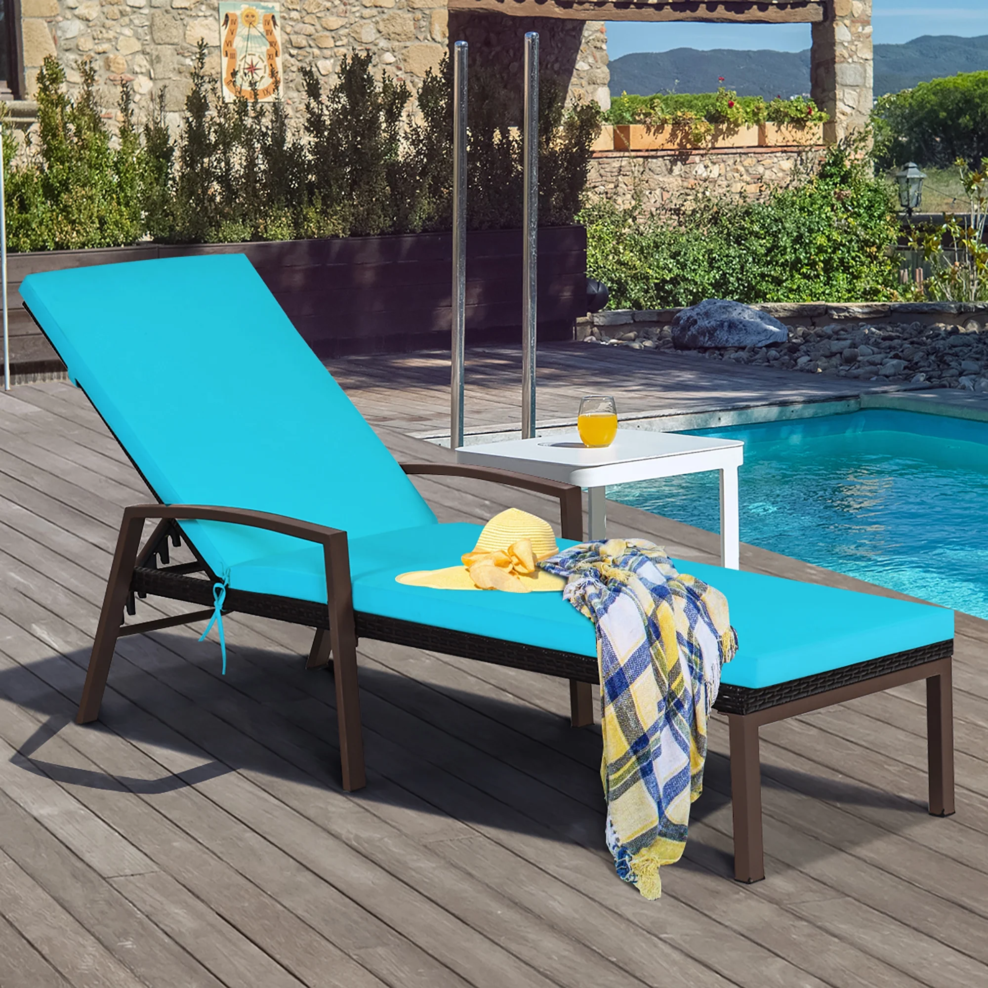 - Comfortable Sun Lounger:Coming with the unique design, our chaise lounge chair combines the function of the chair and bed to meet yourdifferent requirements. Equipped with the soft and spacious cushion, this lounge chair will provide you with comfortable rest space.