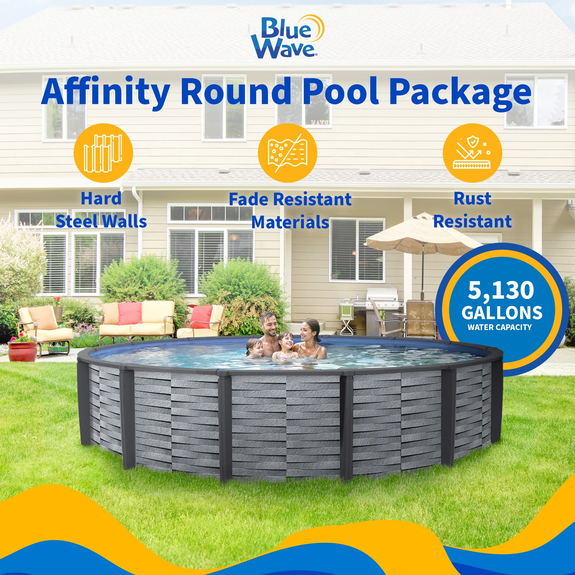 - Blue Wave 15-ft Round 52-in steel pool wall with a modern, basket weave design in graphite