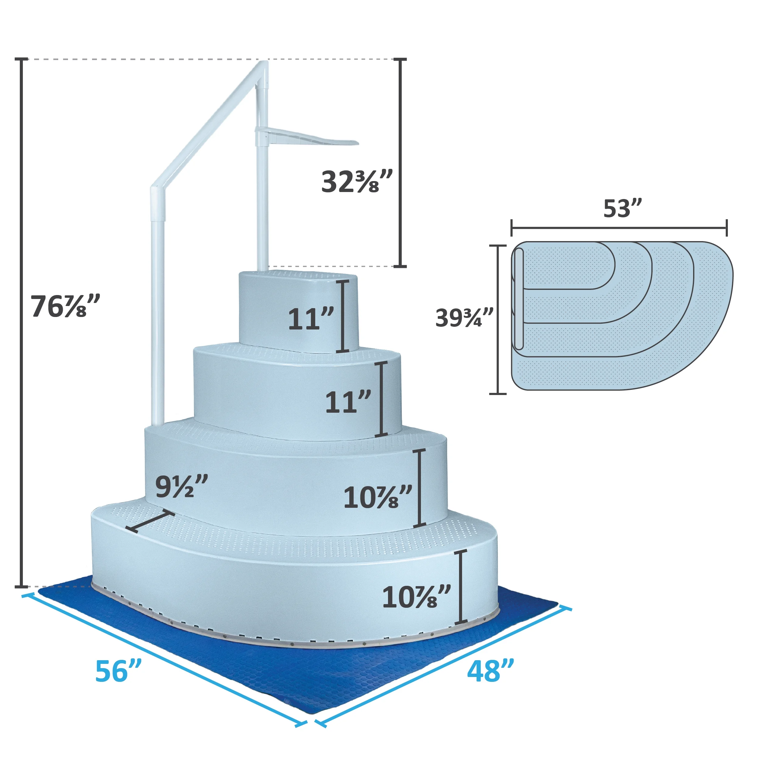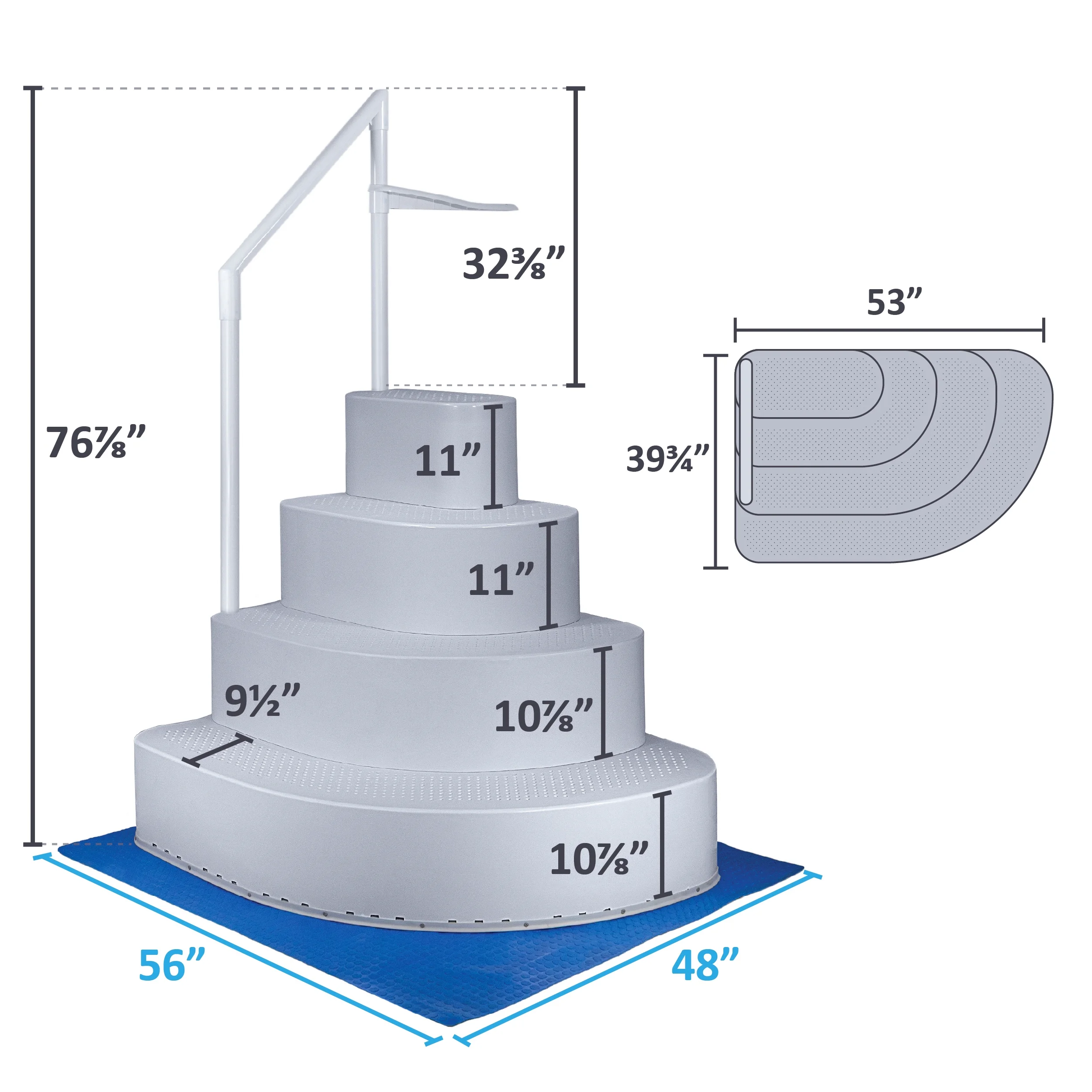 - Stairs measure 42�� deep and 53�� wide