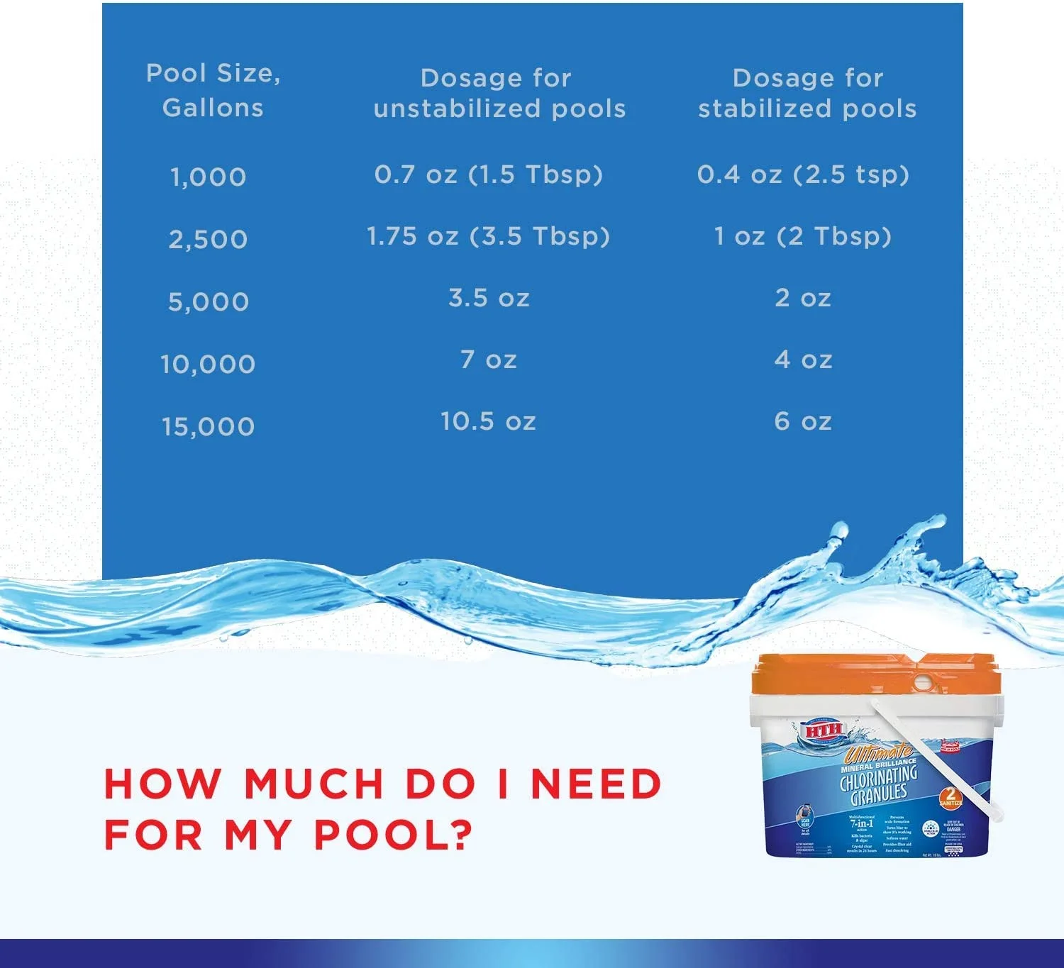 - USE: Apply directly to pool water, broadcasting it evenly over a wide area in the deepest part of the pool; Add granules while filter pump is running during the evening; Use clean, dry scoop only used for this product