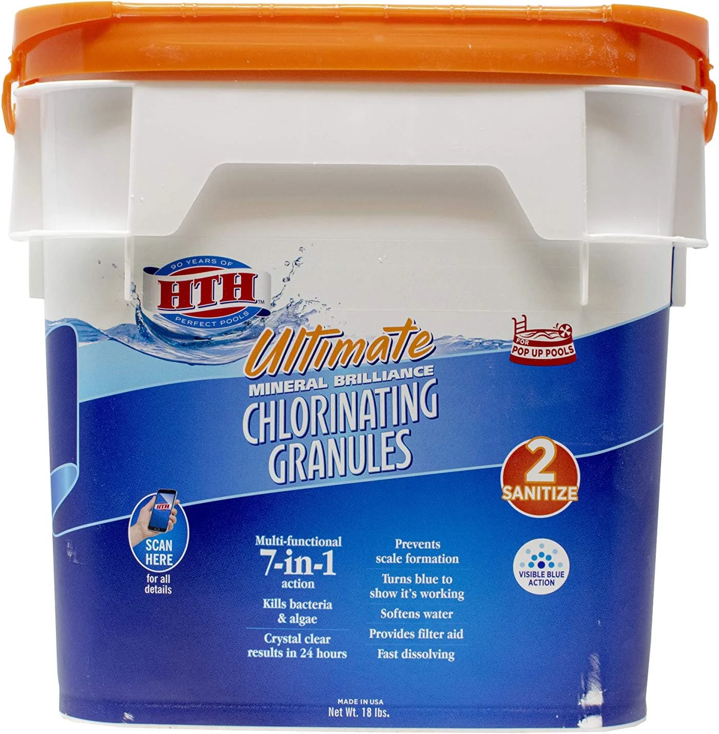 - INCLUDES: One 18-lb container of Ultimate Mineral Brilliance Chlorinating Granules for swimming pools