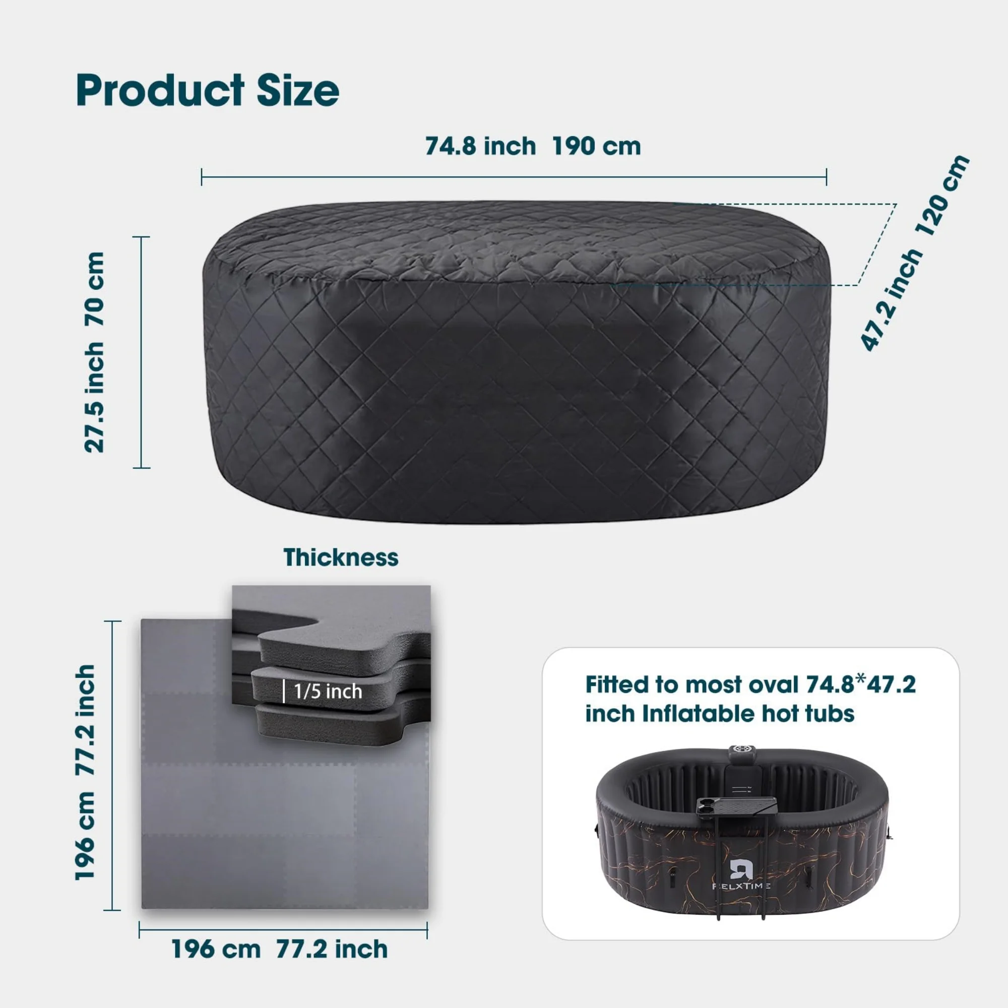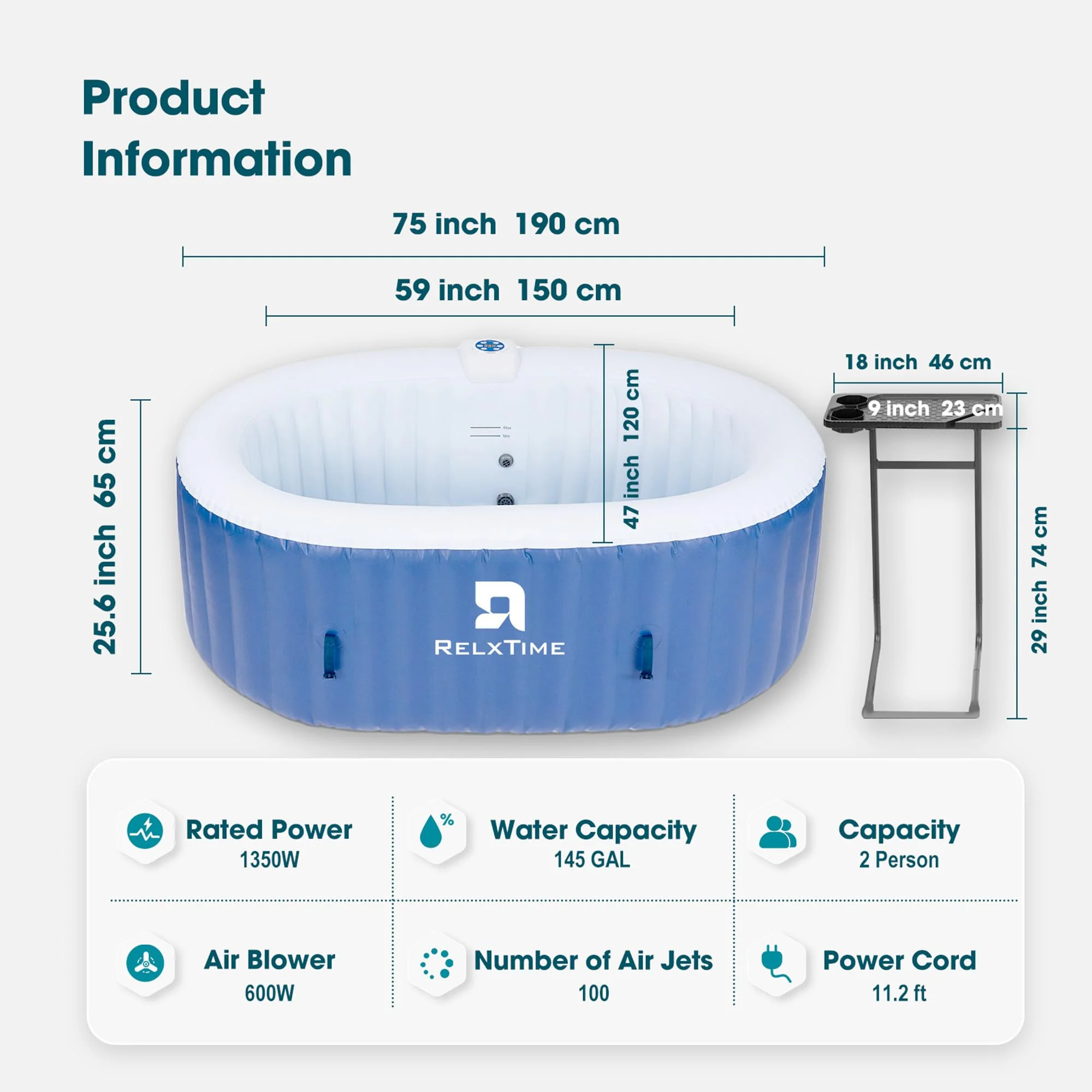 RELXTIME 2 Person Oval Inflatable Hot Tub Set, Blue