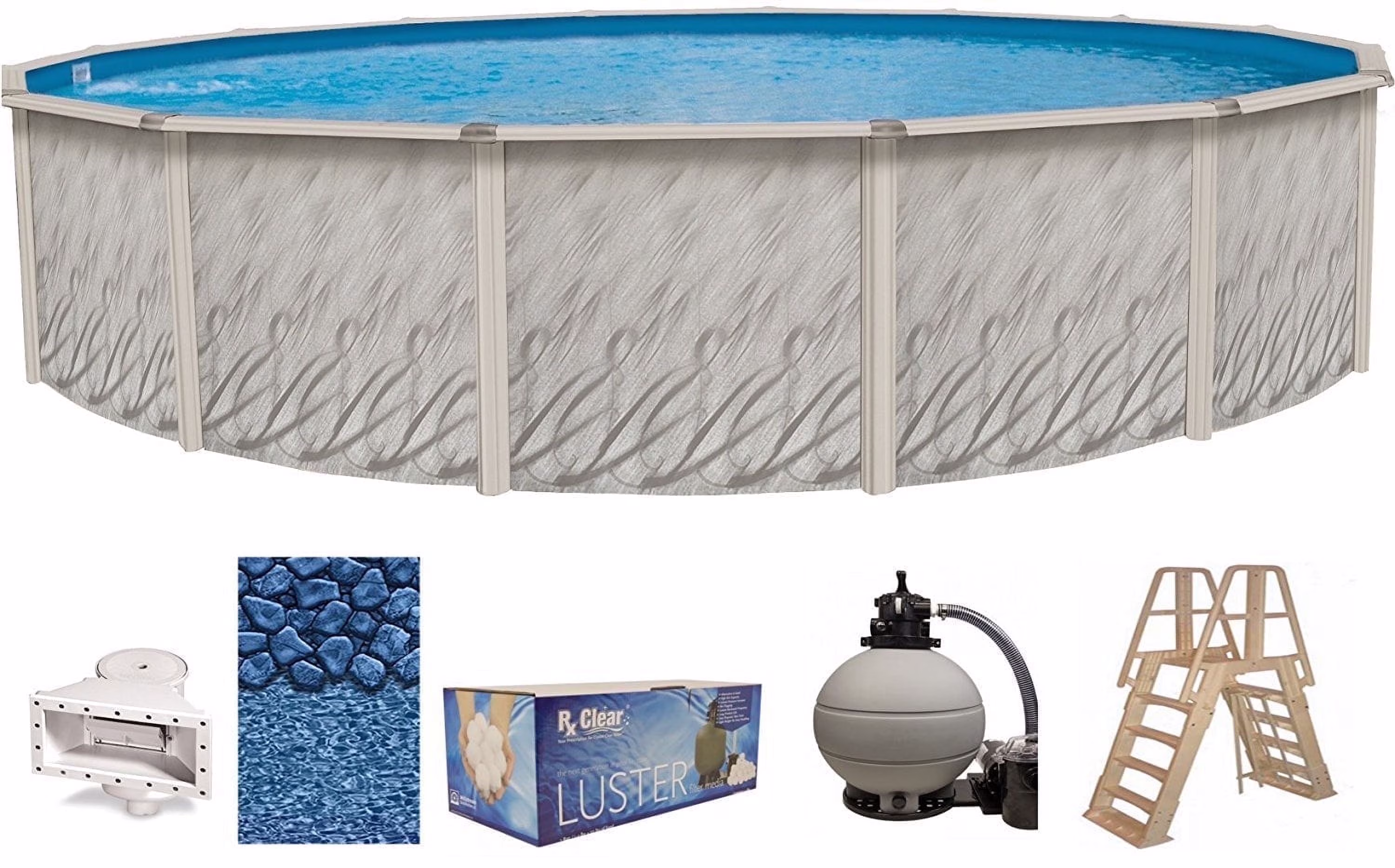 - Lake Effect Pools Meadows 12' Round 52" Wall Above-Ground Swimming Pools, Full Start-up Kit