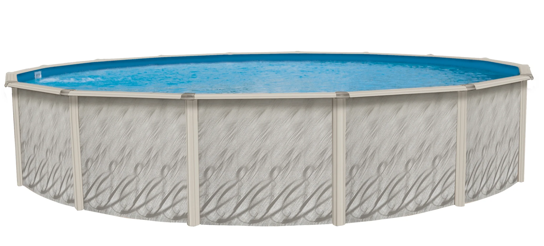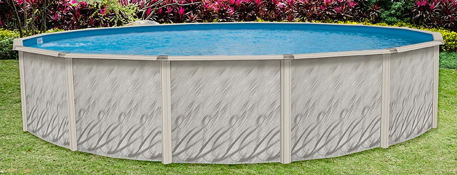 This elegantly designed Lake Effect Meadows Reprieve Aboveground Swimming pool features resin protected steel walls for added protection. The champagne colored frame compliments the look of the wall and will add a touch of beauty to any backyard. Featuring 6" steel top ledges and 5 1/2" wide steel uprights this style of pool will last for years to come. The pool includes a 20 gauge liner and a skimmer for your convenience. Made in the USA