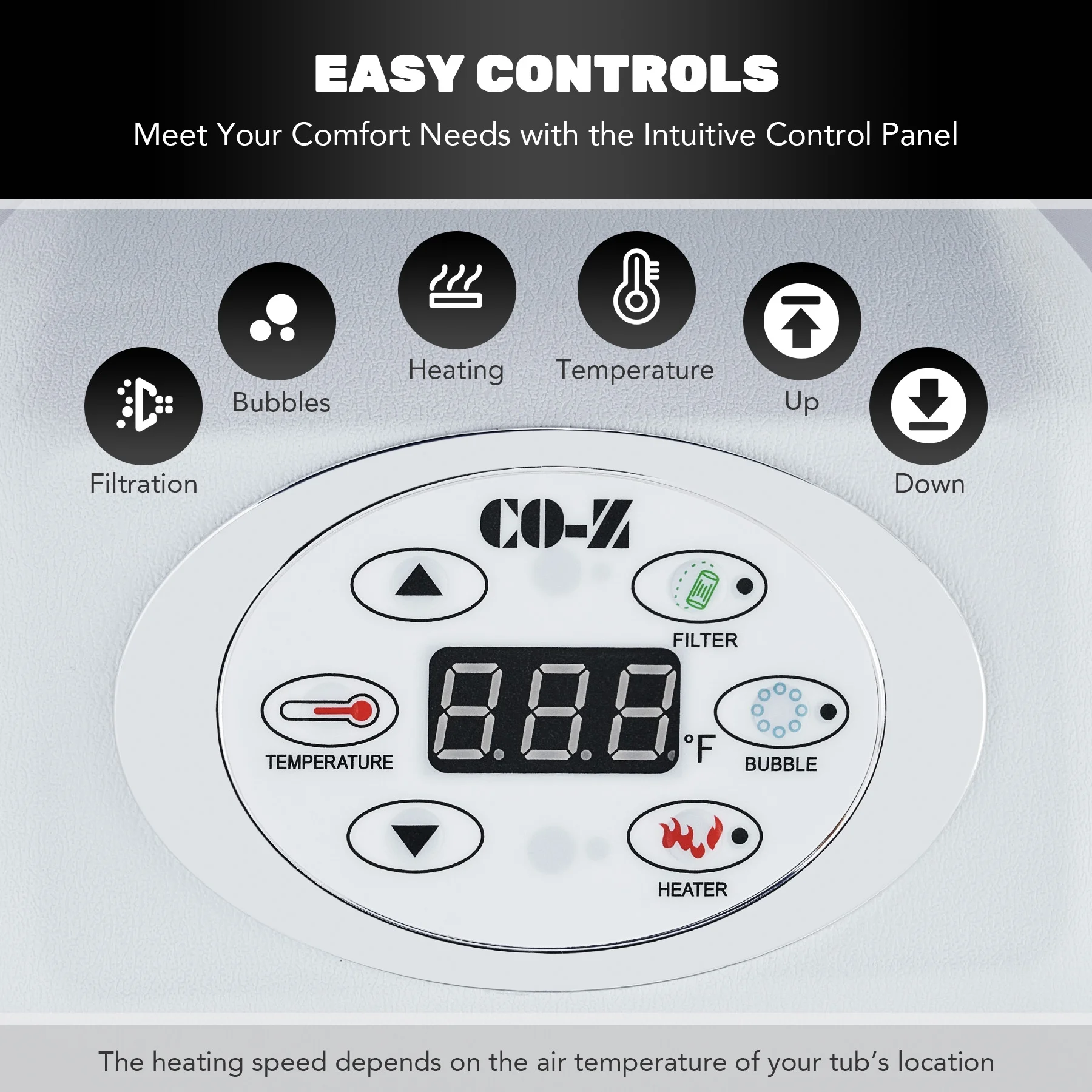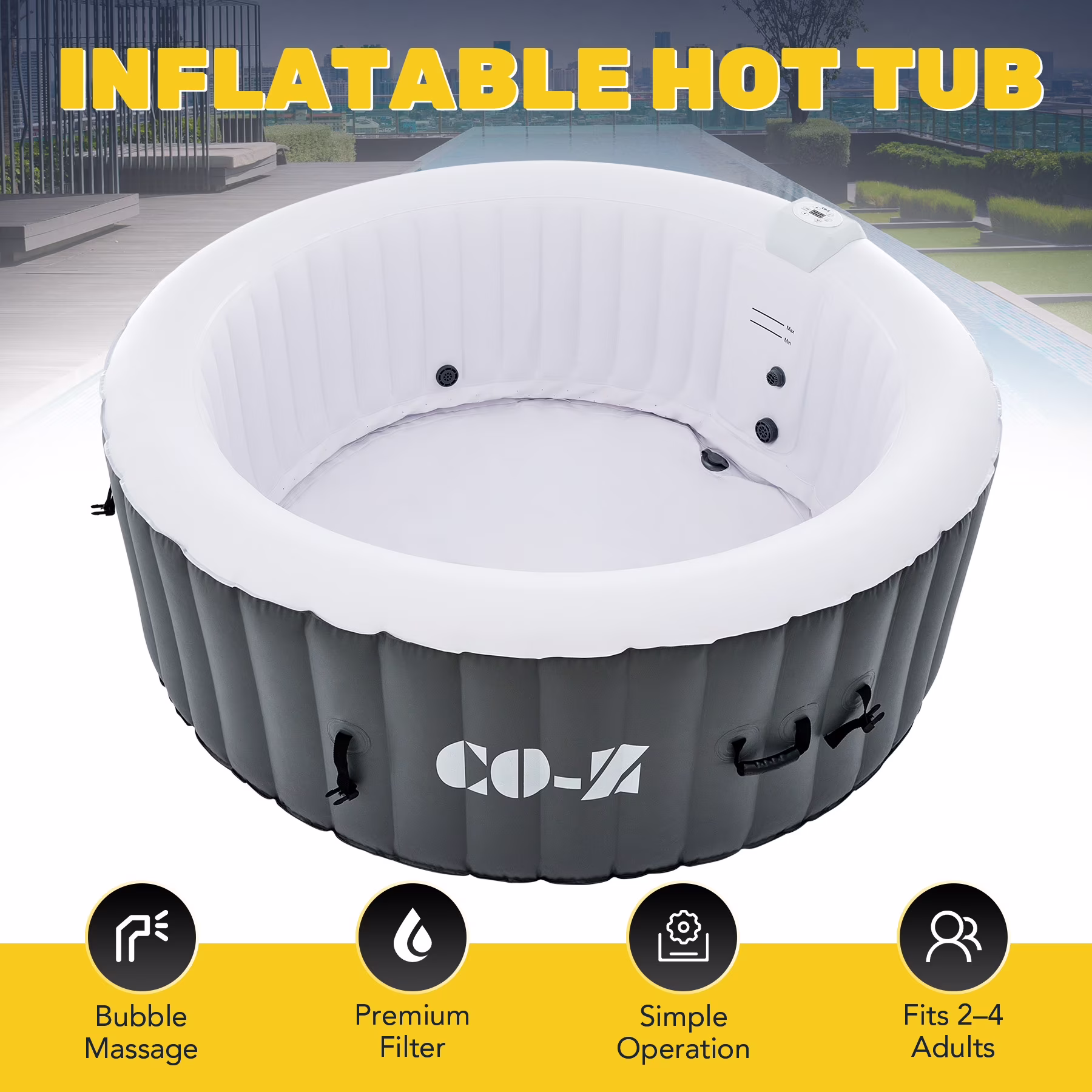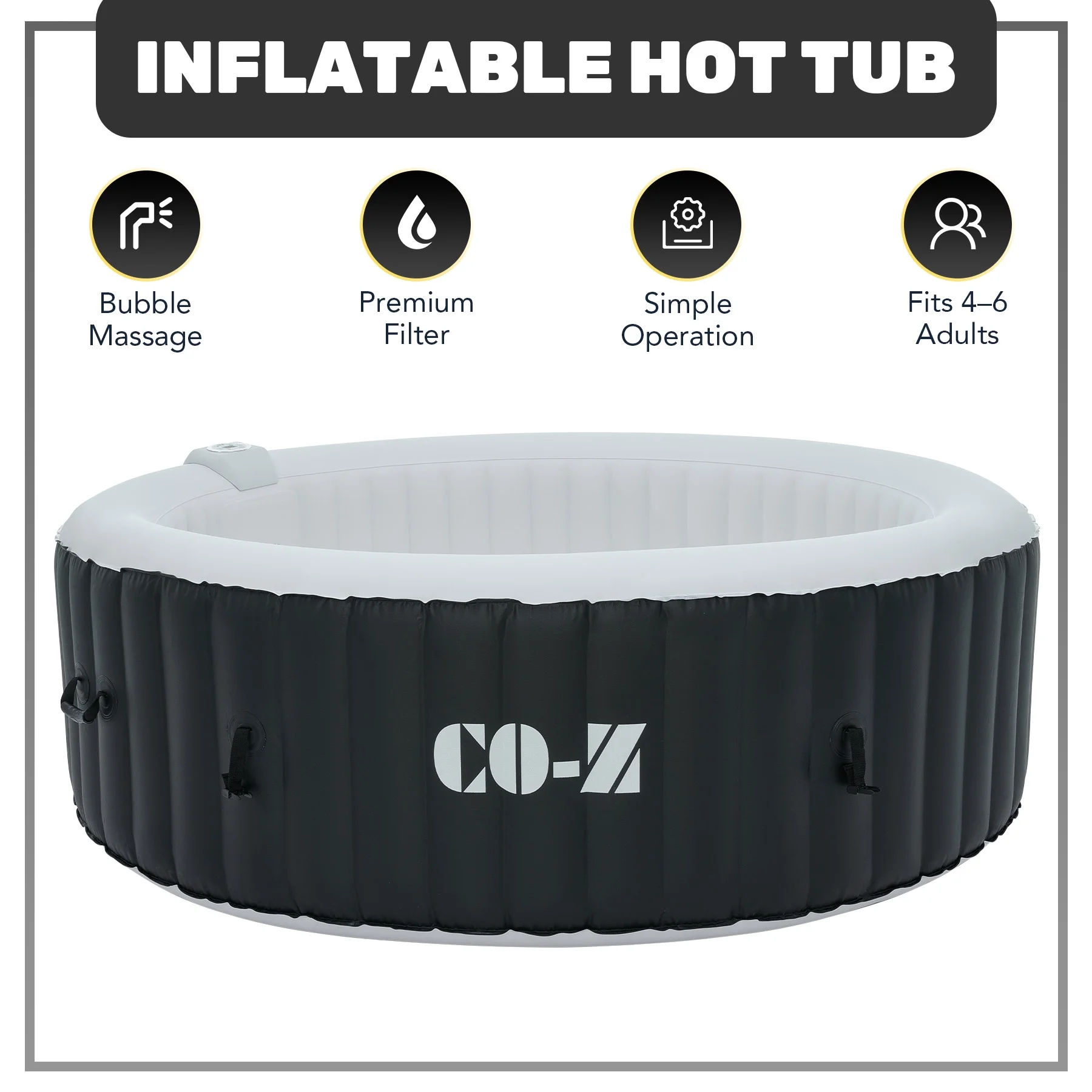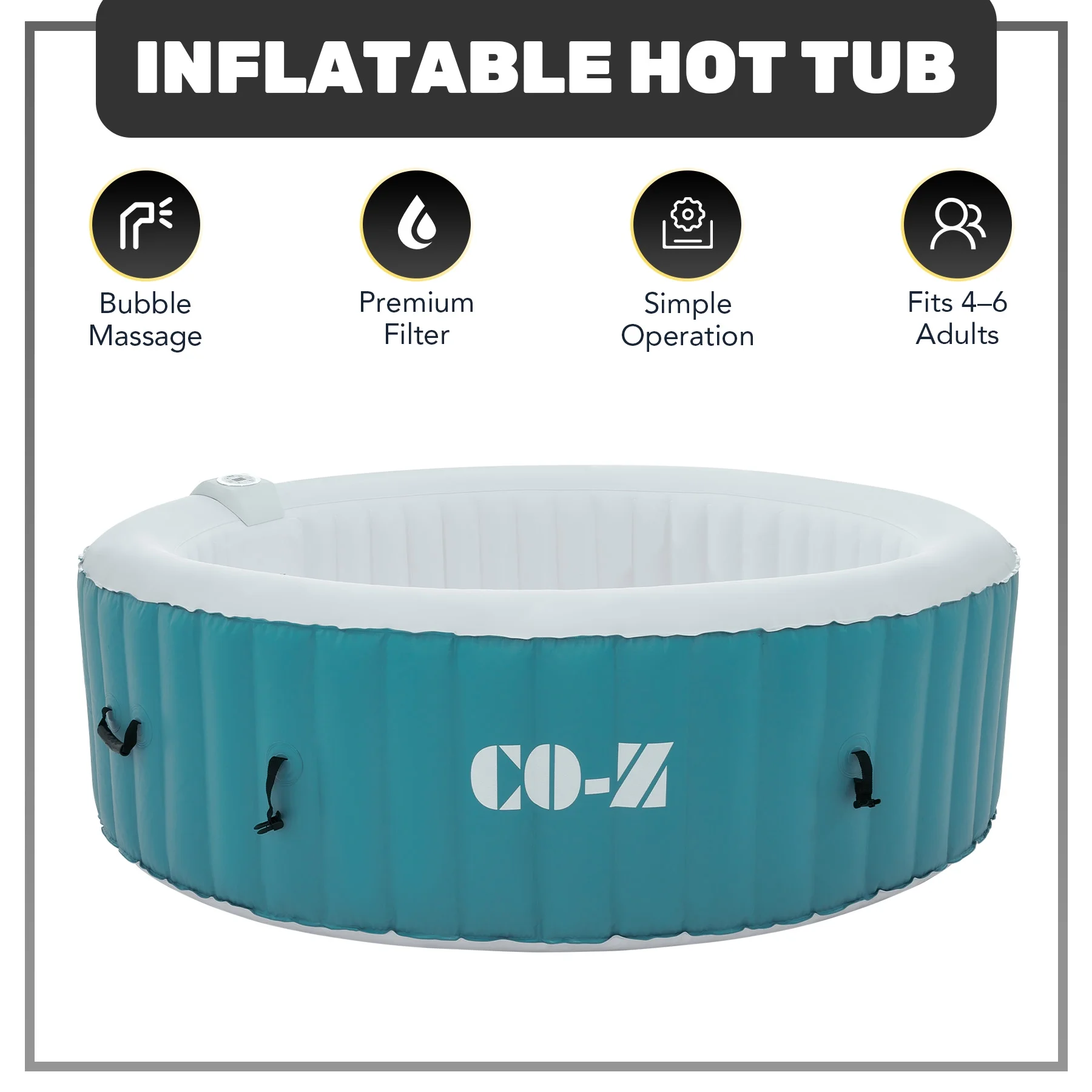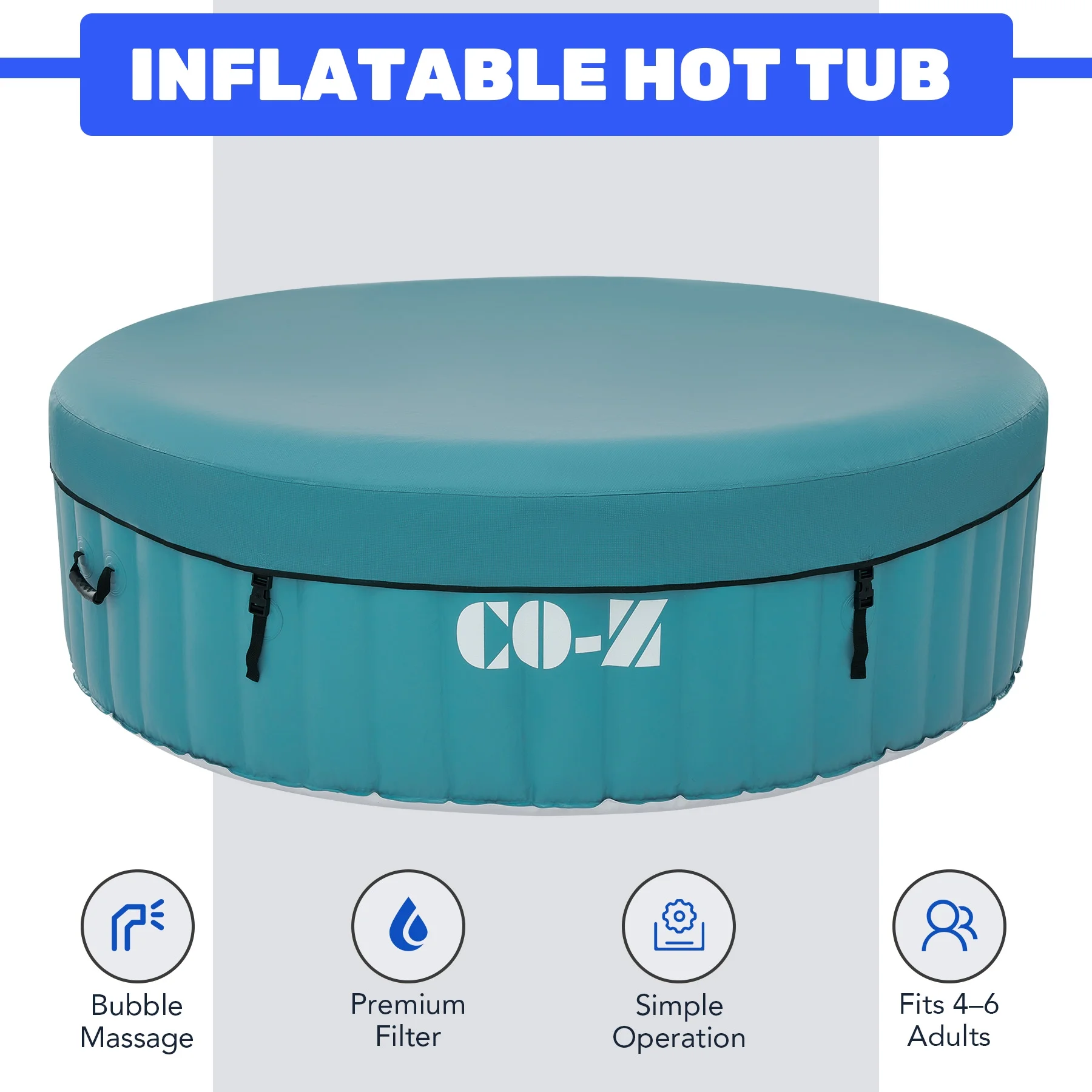 ��LUXURY SPA AT HOME��: CO-Z's inflatable hot tub, featuring upgraded 1350W heating tube to speed up heating, warms its 265 gallons to 104��F with a heating rate of 1-3��F per hour, complemented by 130 high-powered jets for abundant relaxation