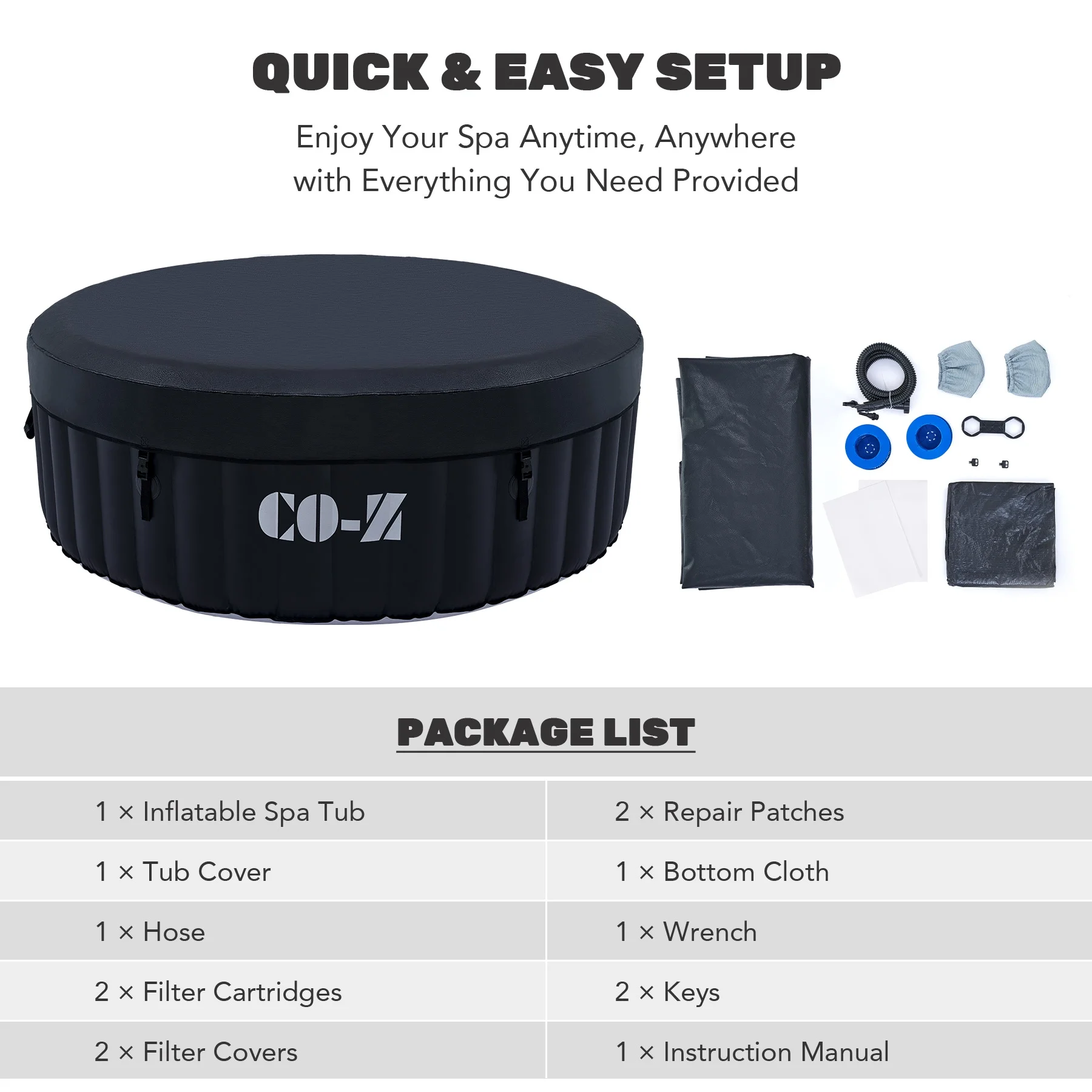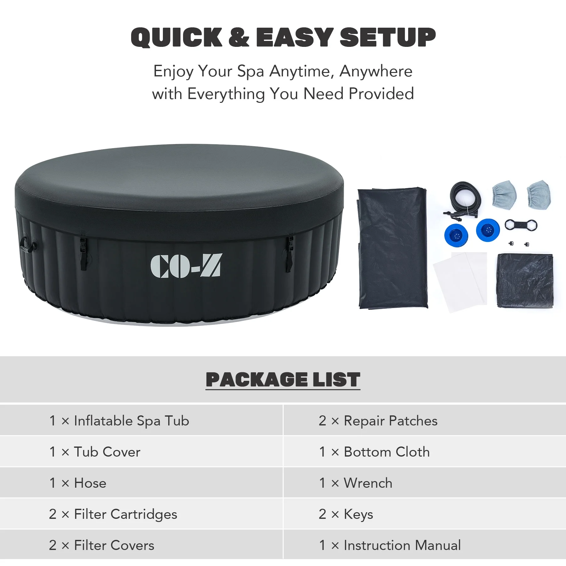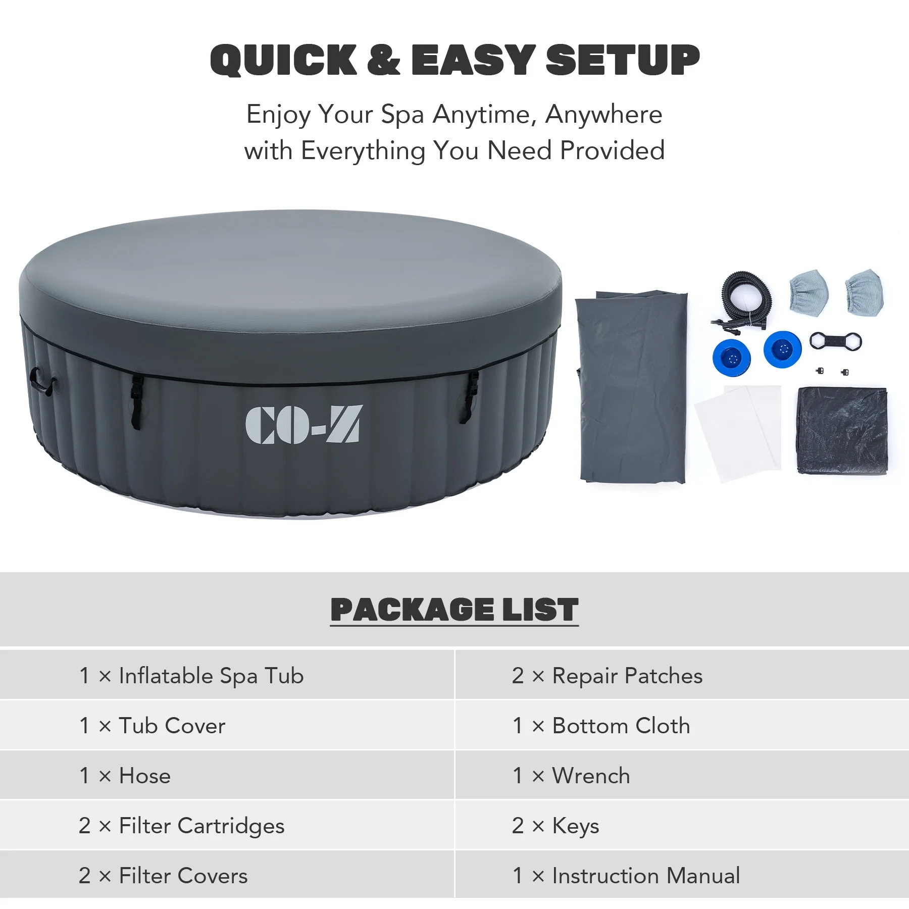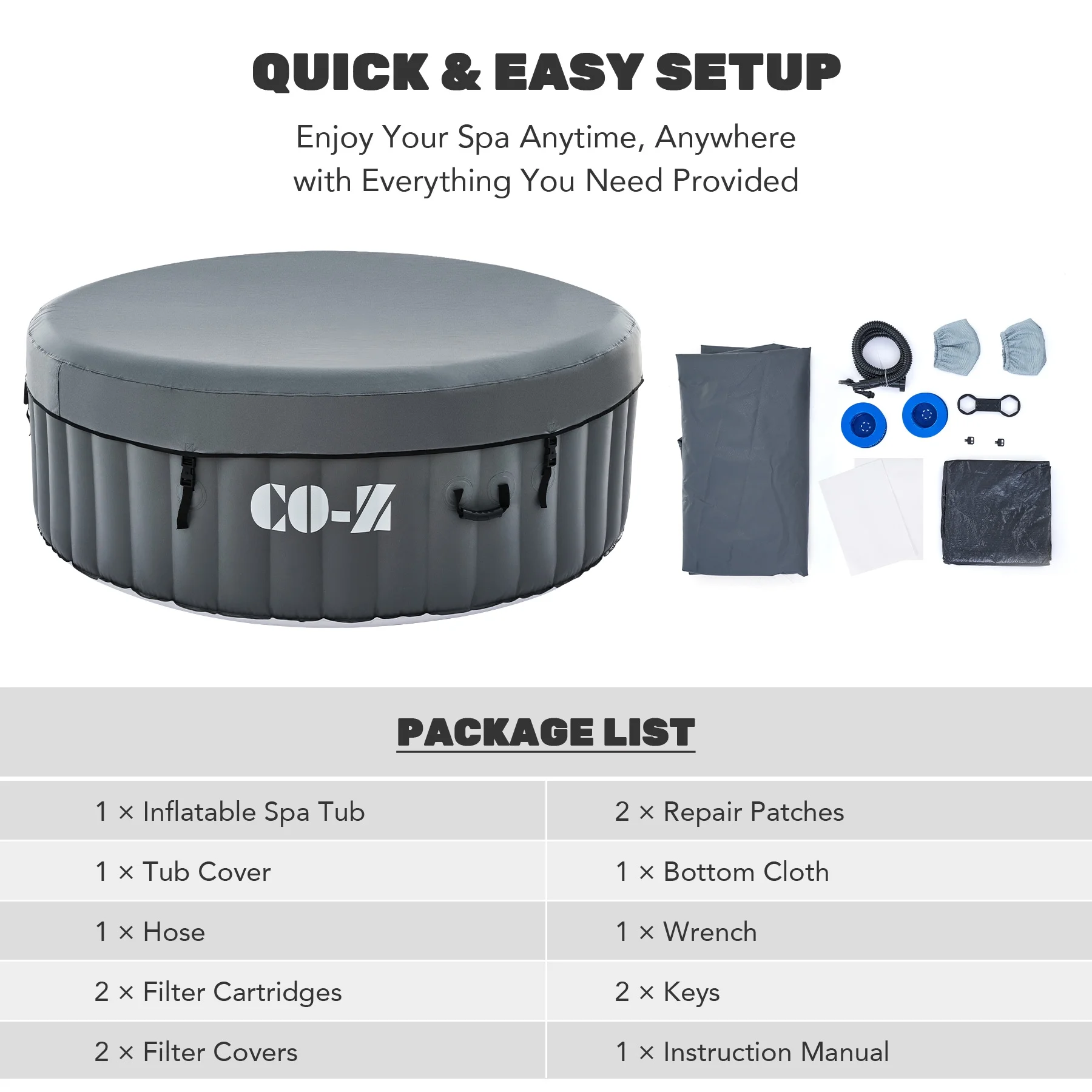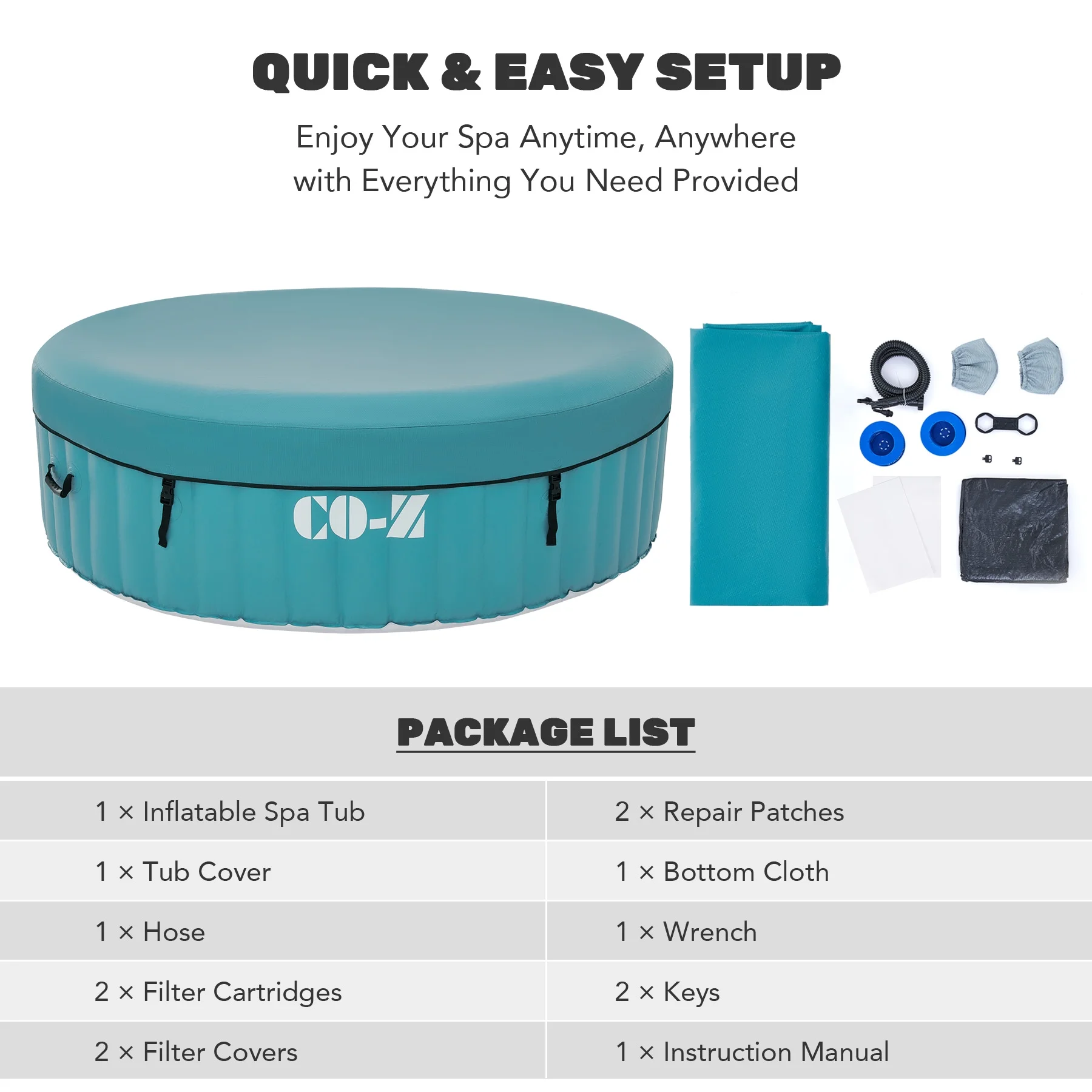 ��EASY SETUP & TRANSPORT��: Our portable hot tub is easy to set up thanks to the clear instructions; the provided electric air pump inflates it in under 8 minutes; and the convenient side handles make it a breeze to transport once inflated