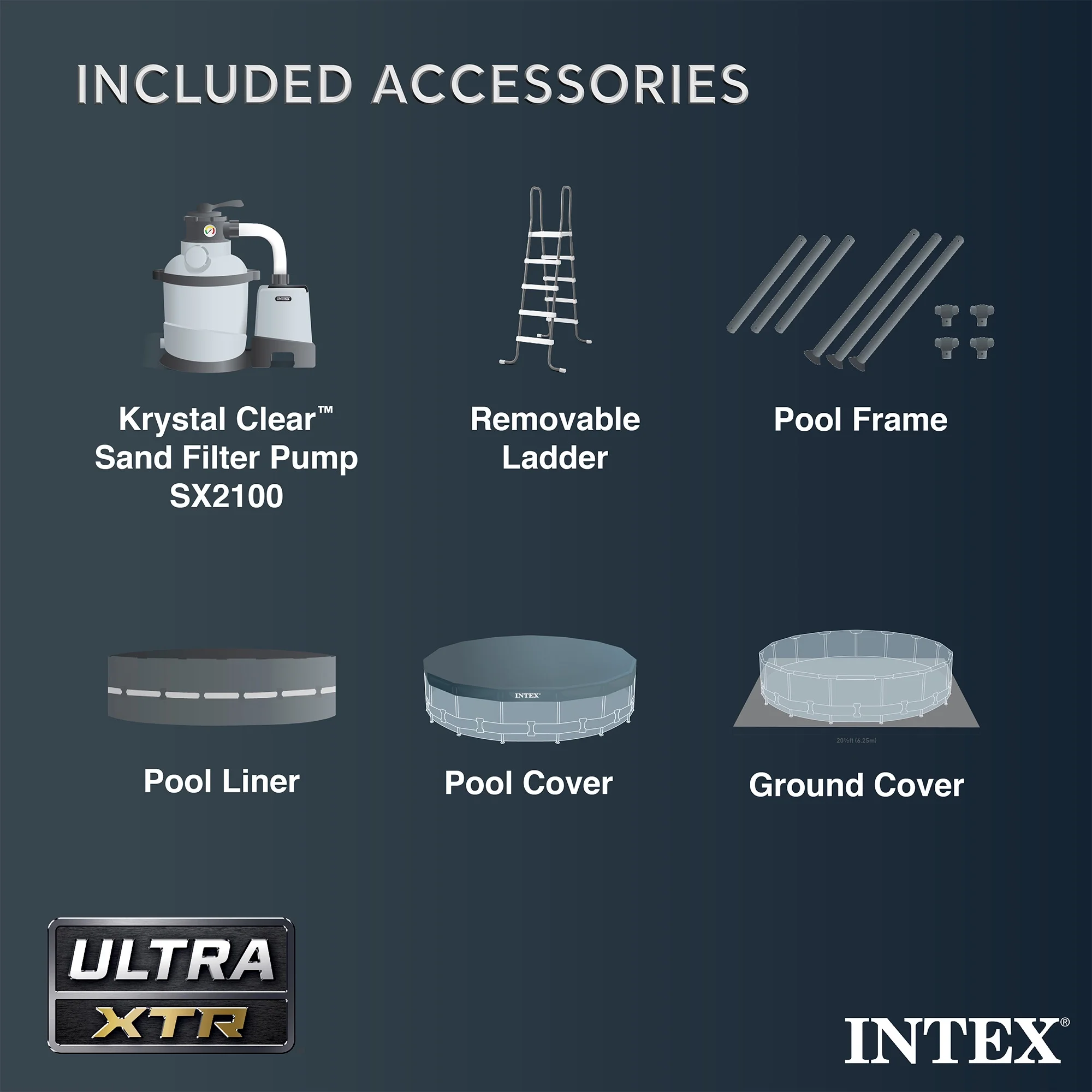 - Complete set of pool, liner, ladder, ground cloth, sand filter pump and cover