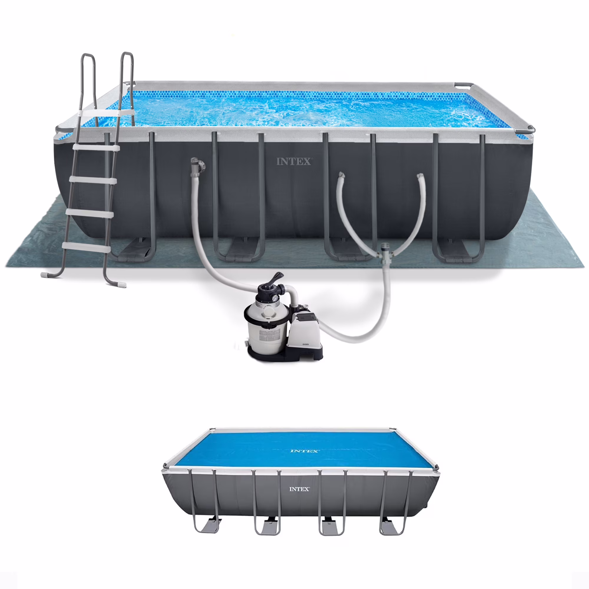 - Complete set of pool, liner, ladder, ground cloth, sand filter pump and cover