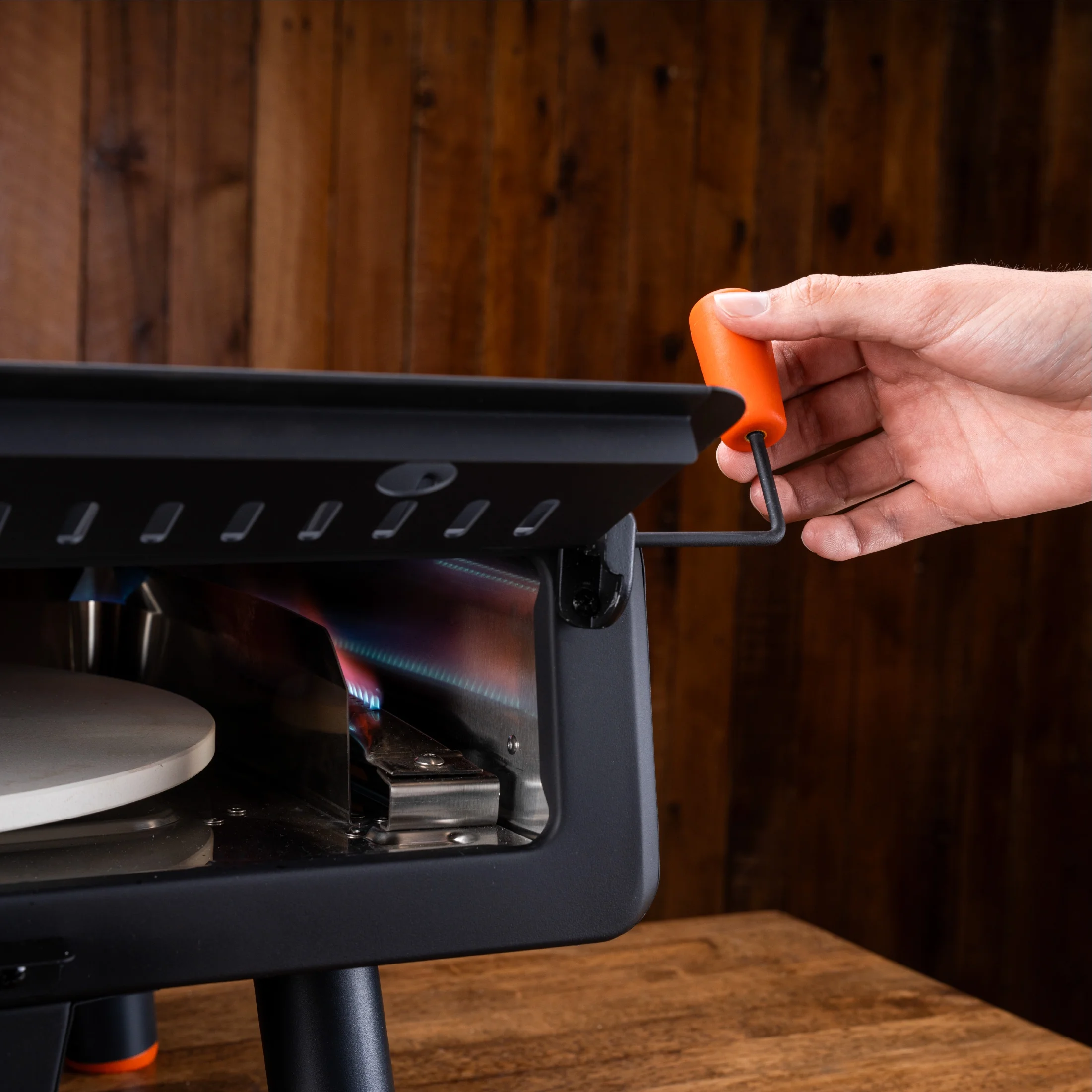- Built-in temperature gauge, safe ignition technology, and single burner control make monitoring and adjusting pizza oven temperature a breeze