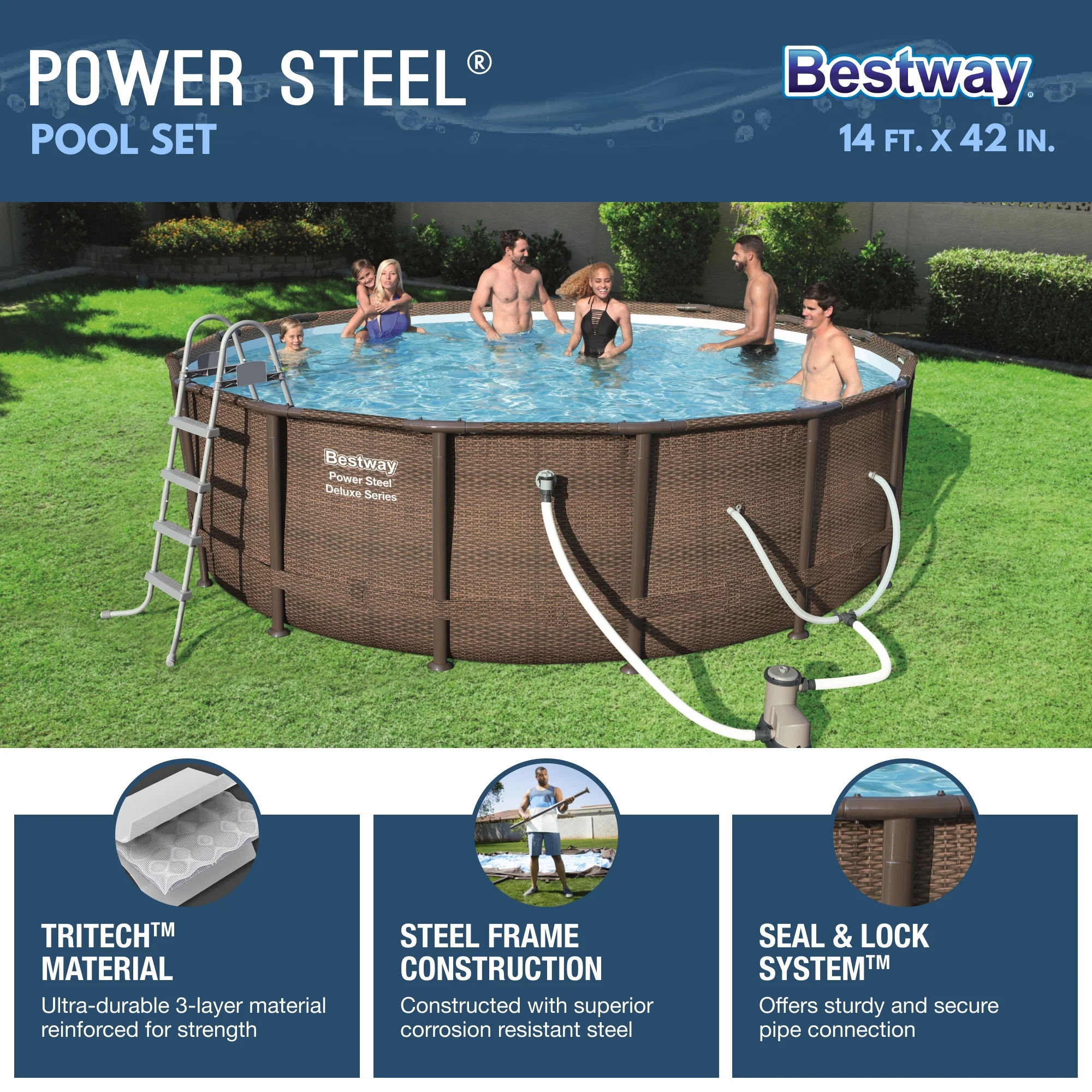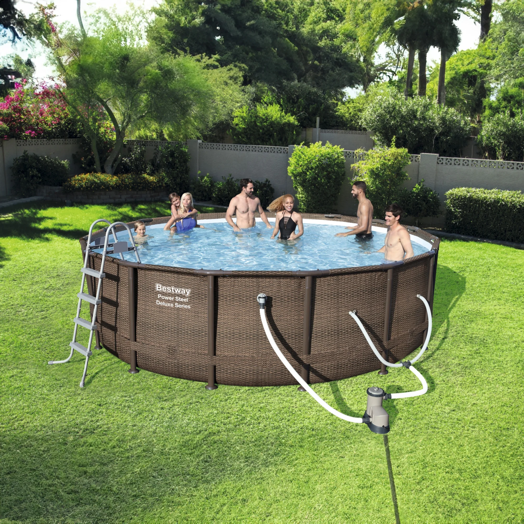 - Includes a 1,000-gallon per hour filter pump, a ladder for safe entry and exit, and a convenient securing pool cover