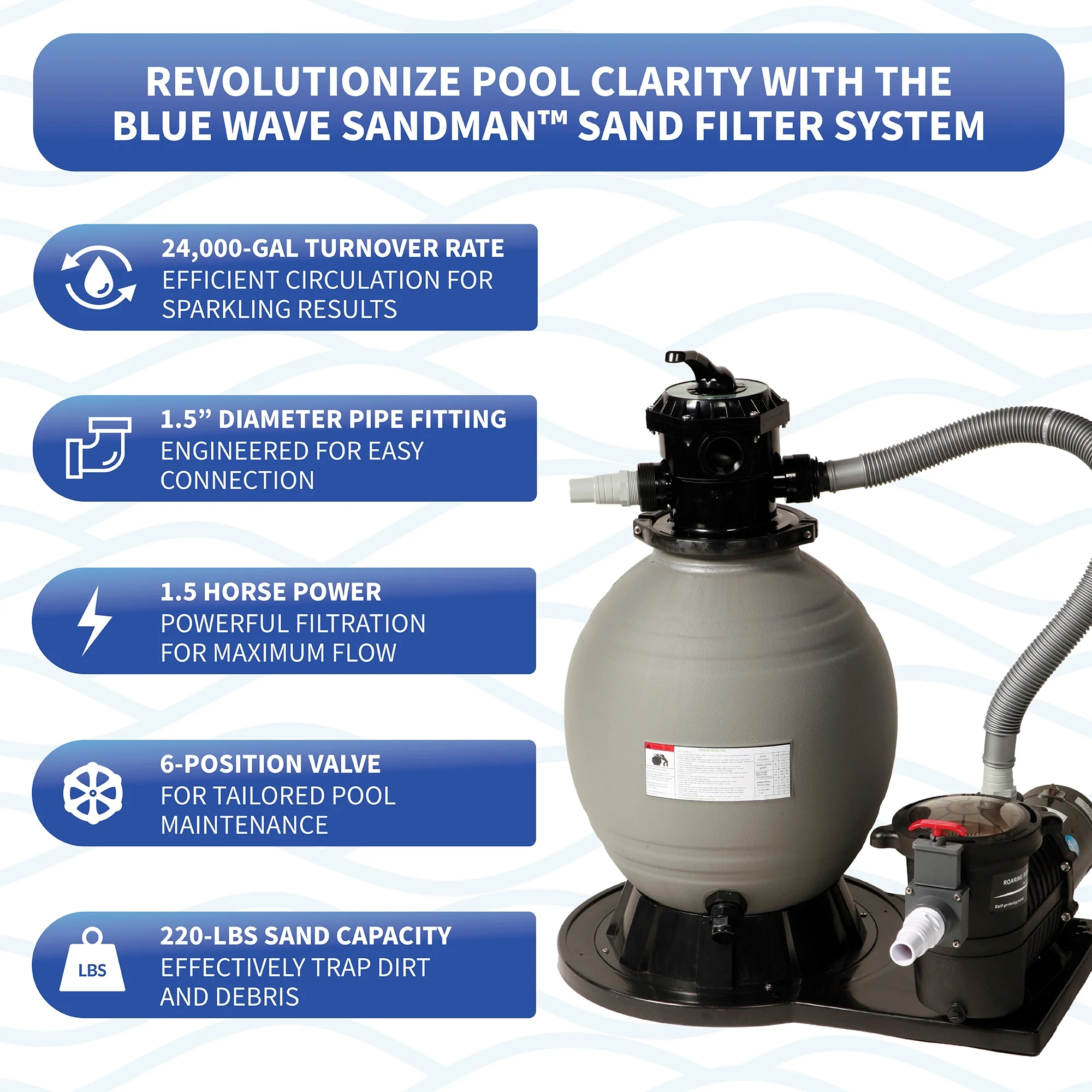- Easy-to-use 18-in sand filter system with 1 HP pump