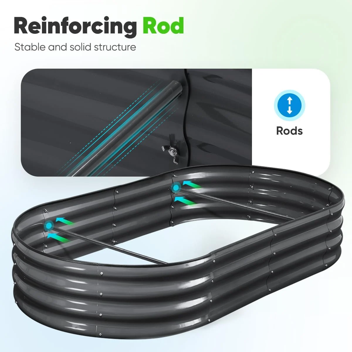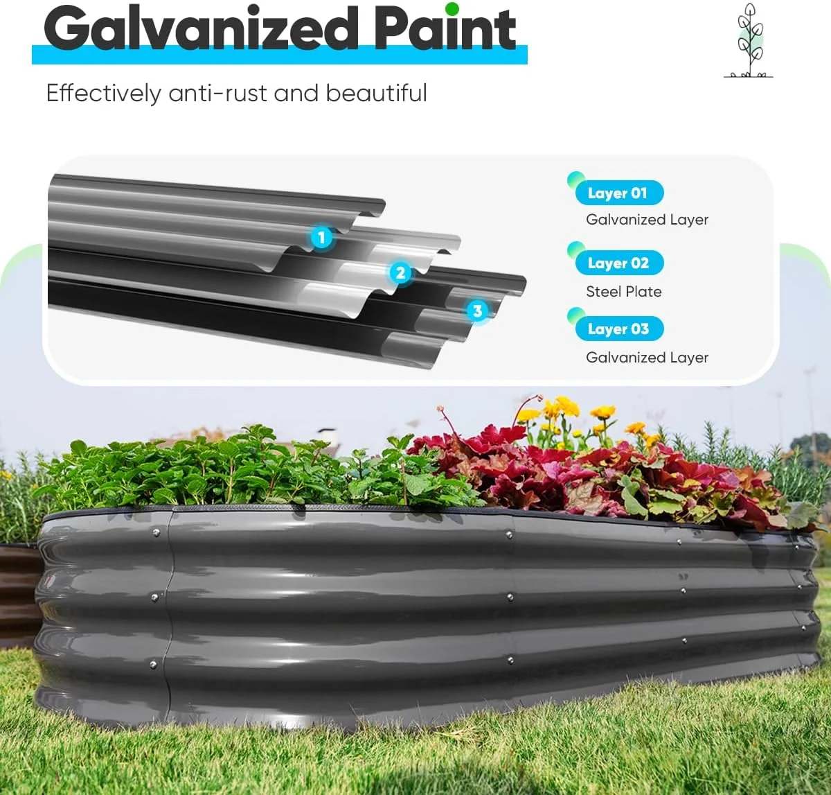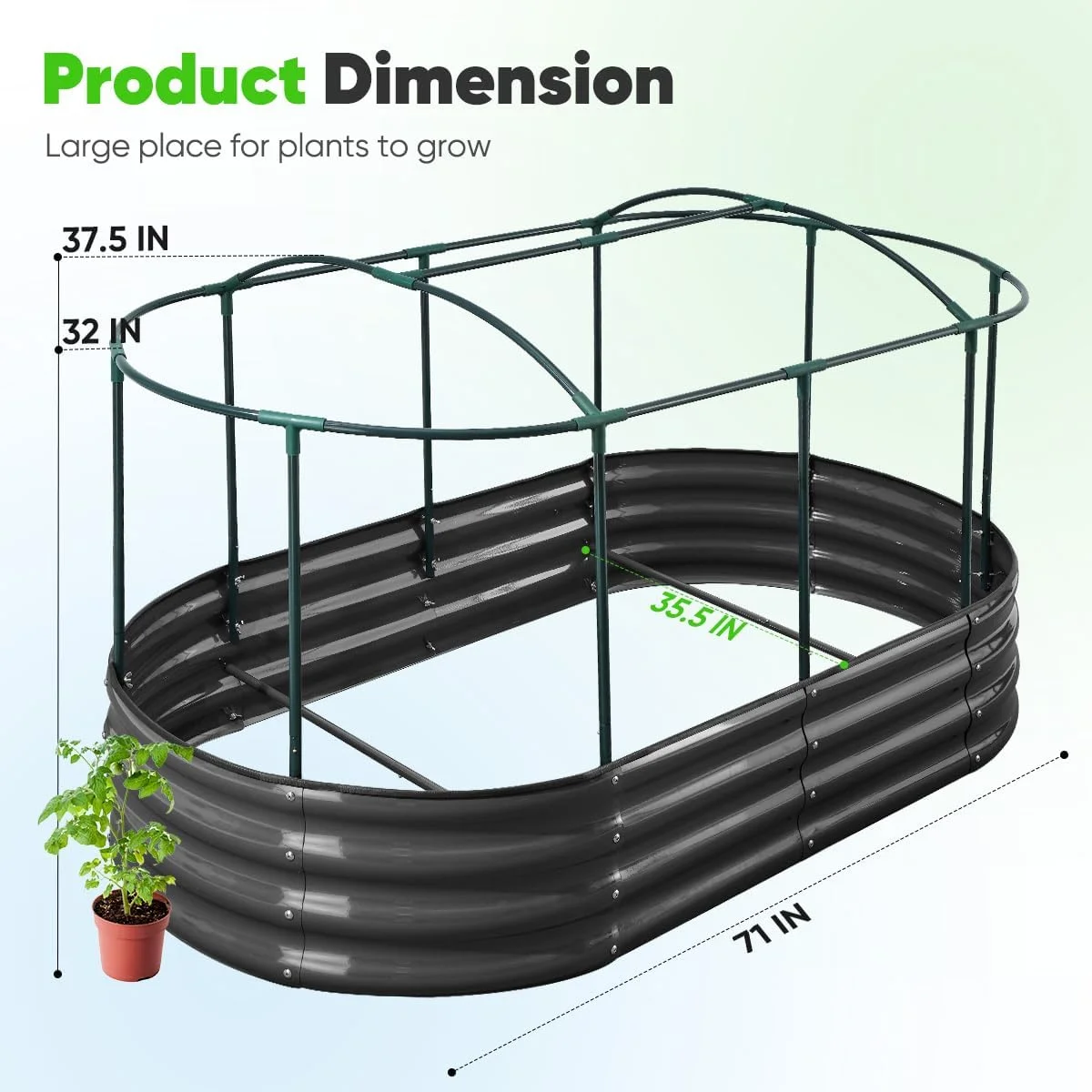 - 【Get Both Beauty & Safety�?/b>This Quictent oval galvanized raised garden bed has no sharp corners, which makes it safe to use; and exquisite color can diffuse light in different ways, shows higher brightness and saturation, makes it look prettier. This large metal planter box will make your garden more artistic and funnier.