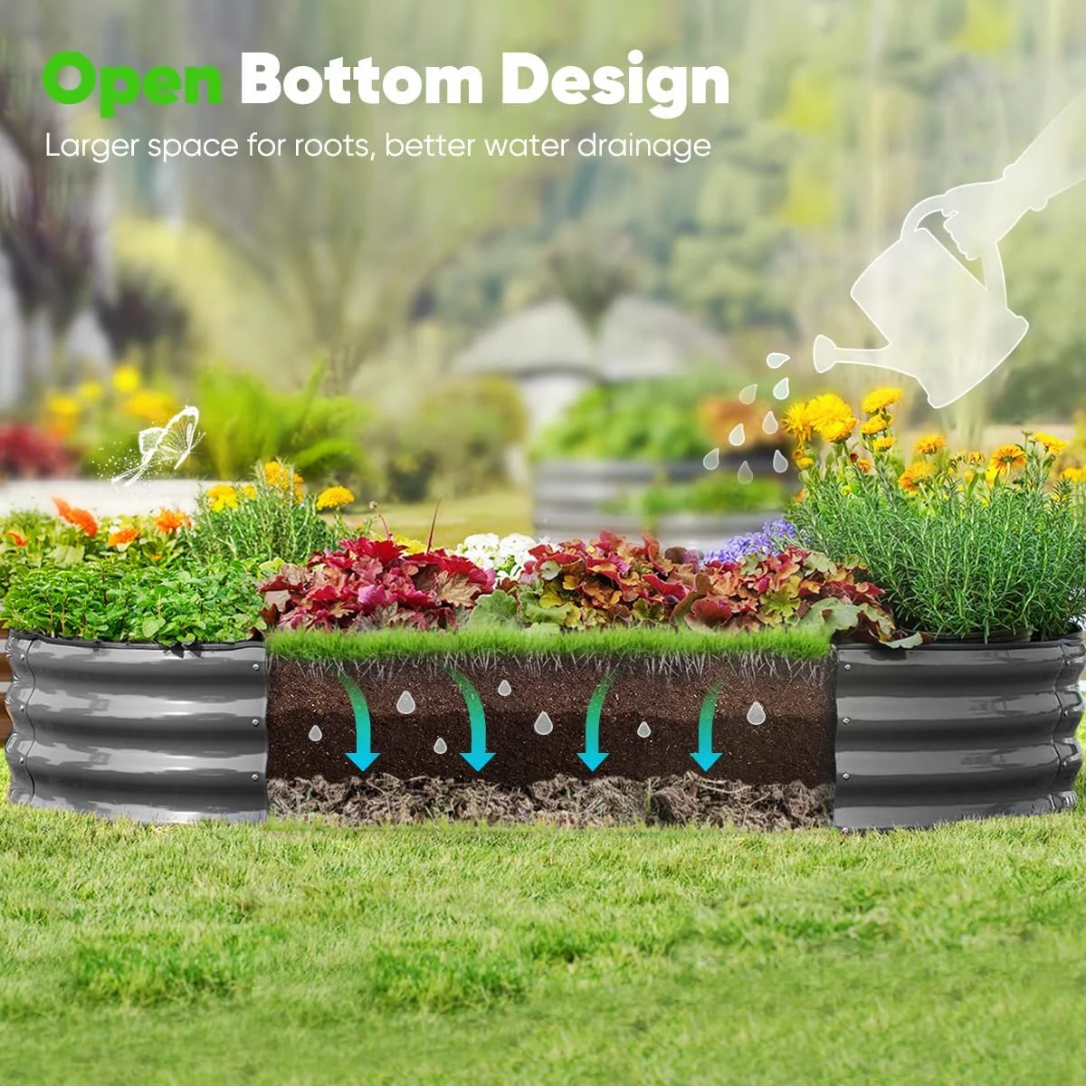 - 【Open Base for Good Drainage�?/b> The open base of this garden raised planting bed is good for drainage, plant roots won't be sick from excessive water. Also, plants' roots can absorb variant nutrition from soil and grow more healthily.