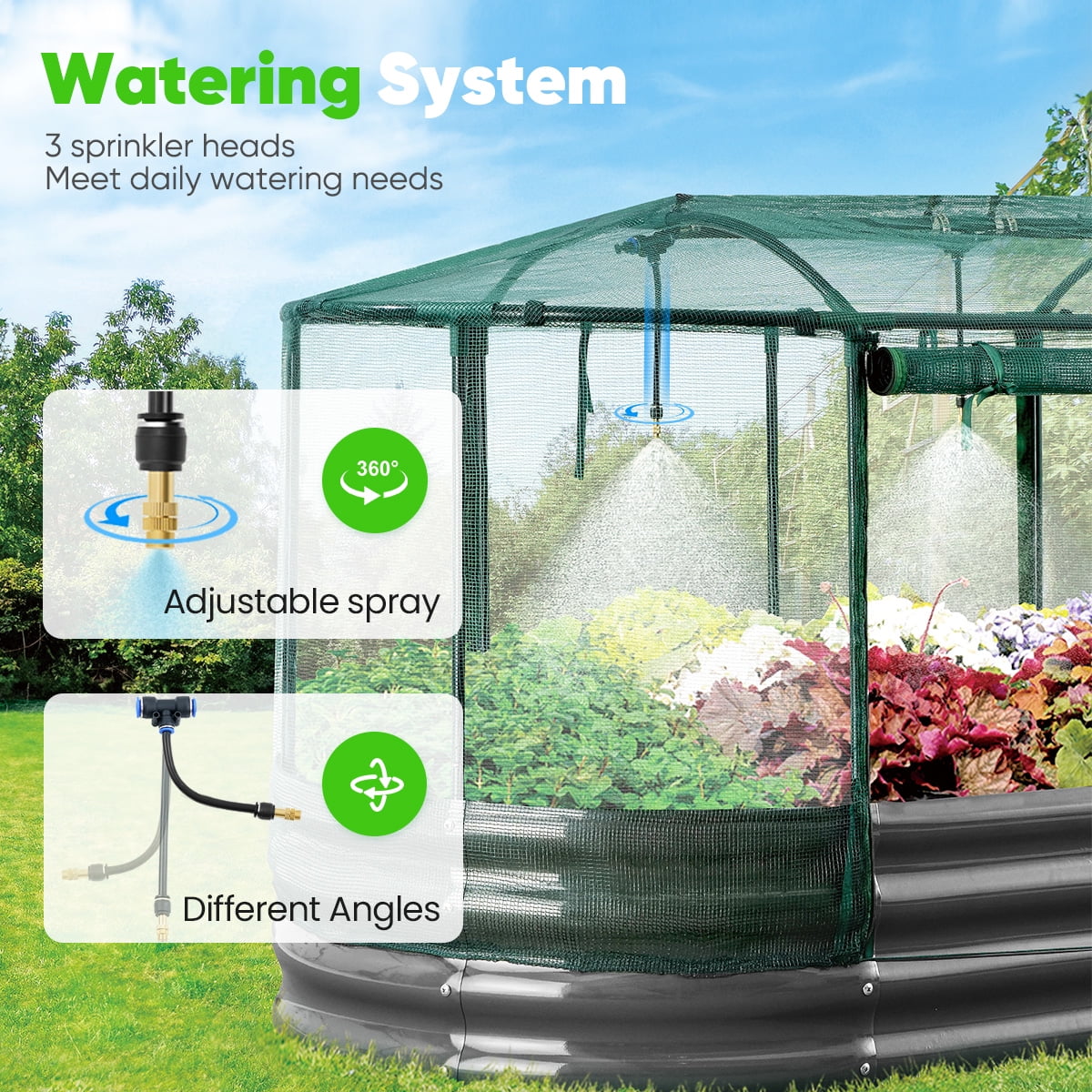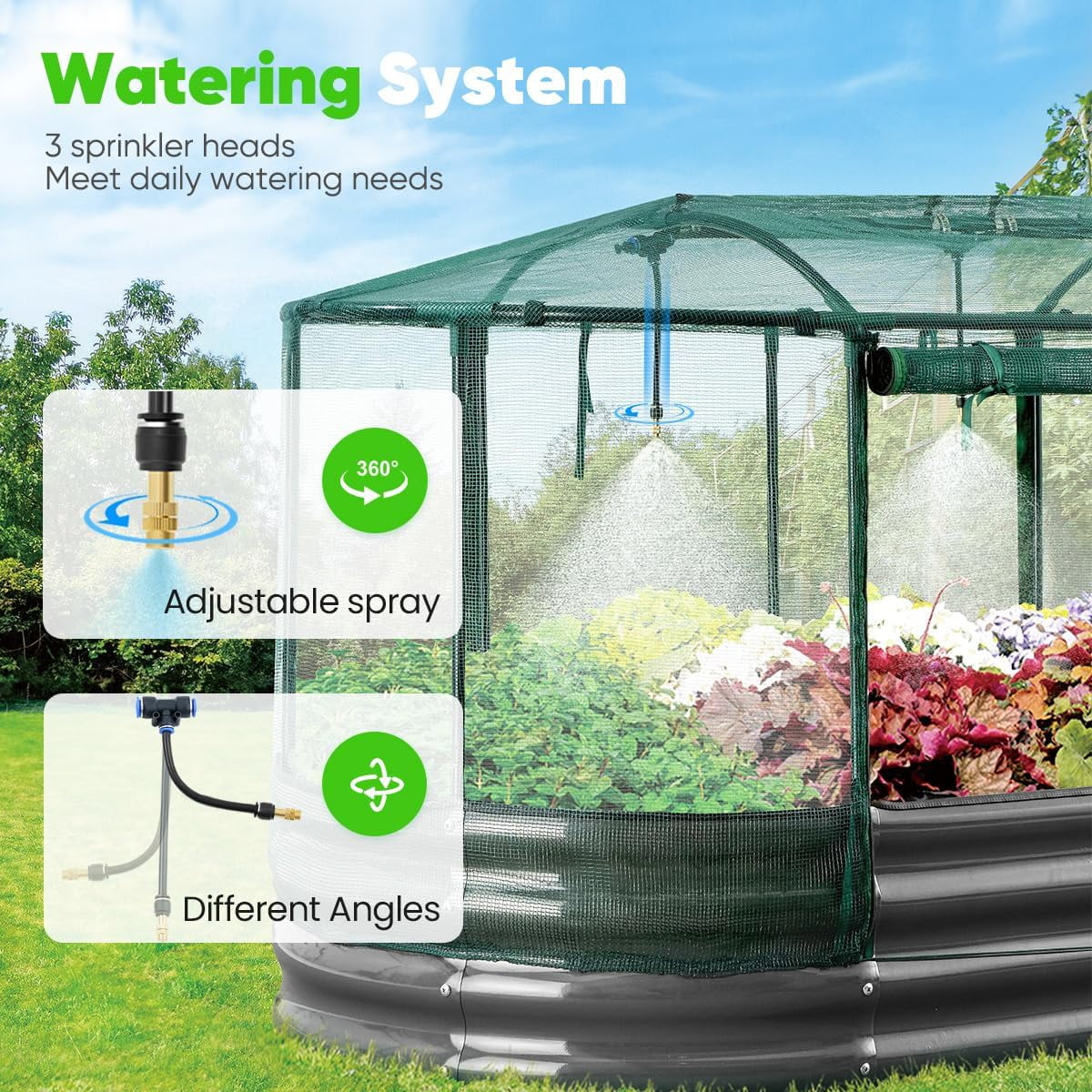 With our self-watering system, planting becomes a breeze as the misting system covers a larger area, increasing humidity and providing a uniform water volume. The bed's safe design features no sharp corners and an exquisite color that enhances brightness and saturation. Extra crossbars provide stability and a higher weight capacity, making it a durable home for your plants. The open base promotes good drainage, preventing waterlogging and allowing roots to absorb essential nutrients.