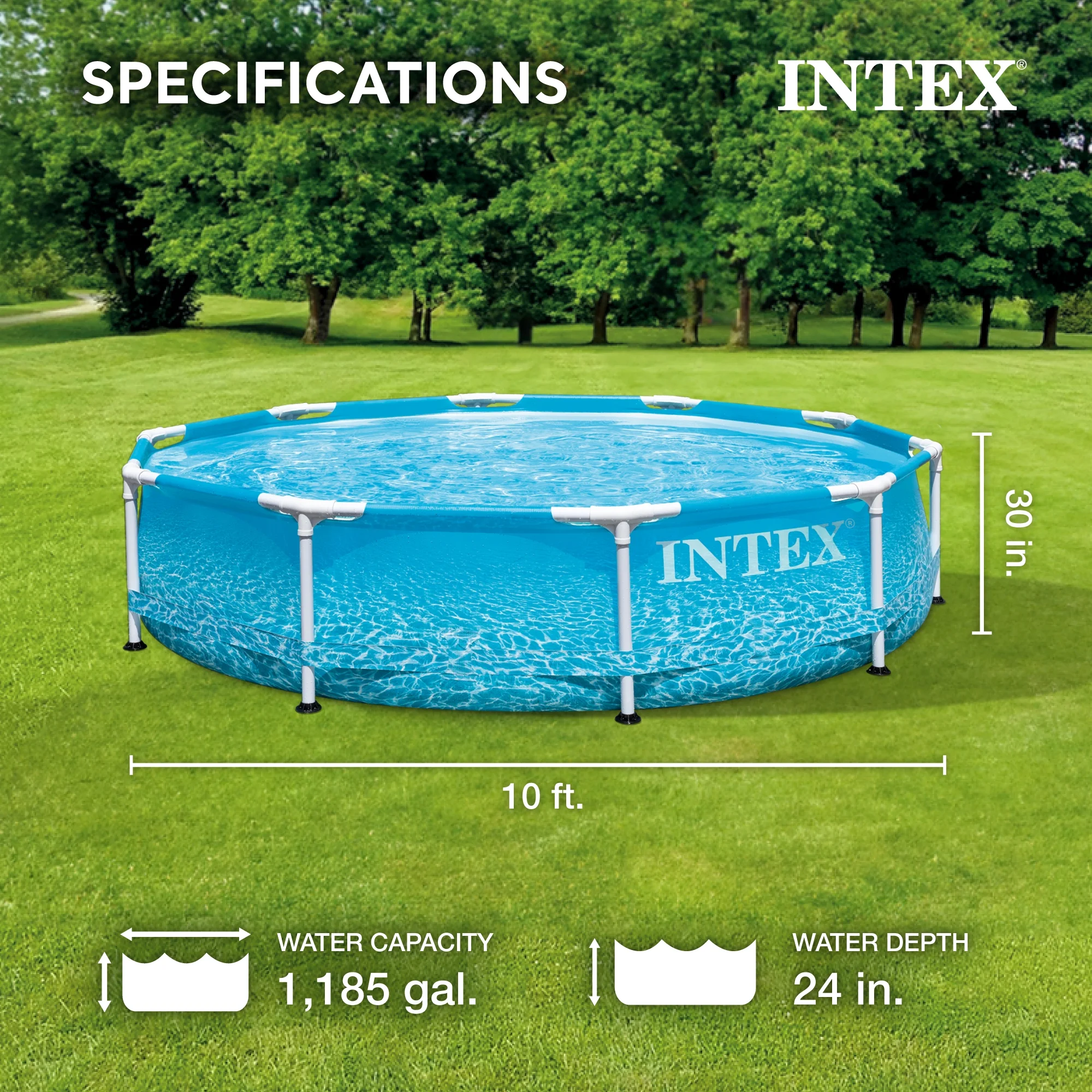 - Round outdoor 10-foot by 30-inch metal frame pool is engineered for strength