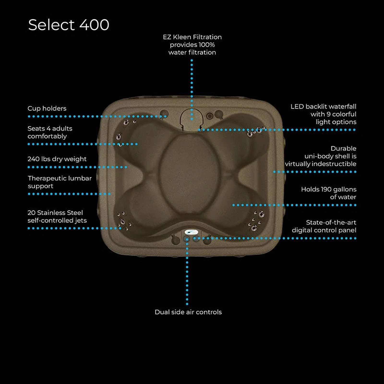 - In the event you are not 100% satisfied with your new spa, you have up to 15 days from the date you receive your spa to return it for a full refund of the purchase price less a 20% restocking fee.