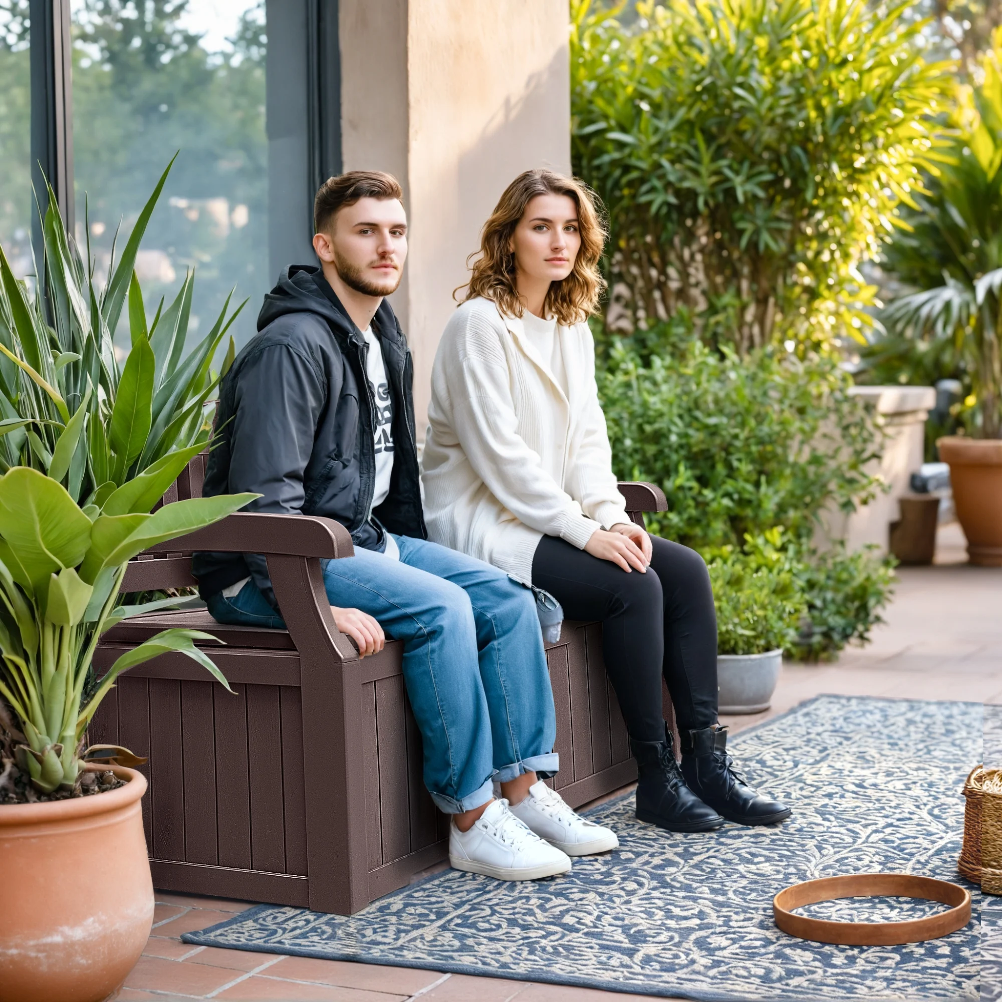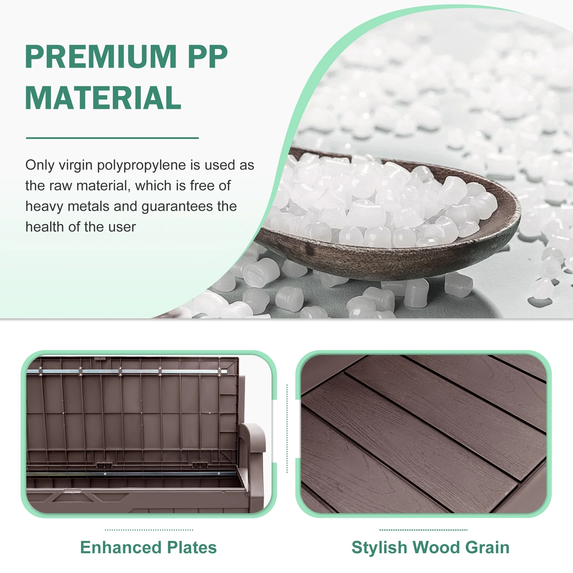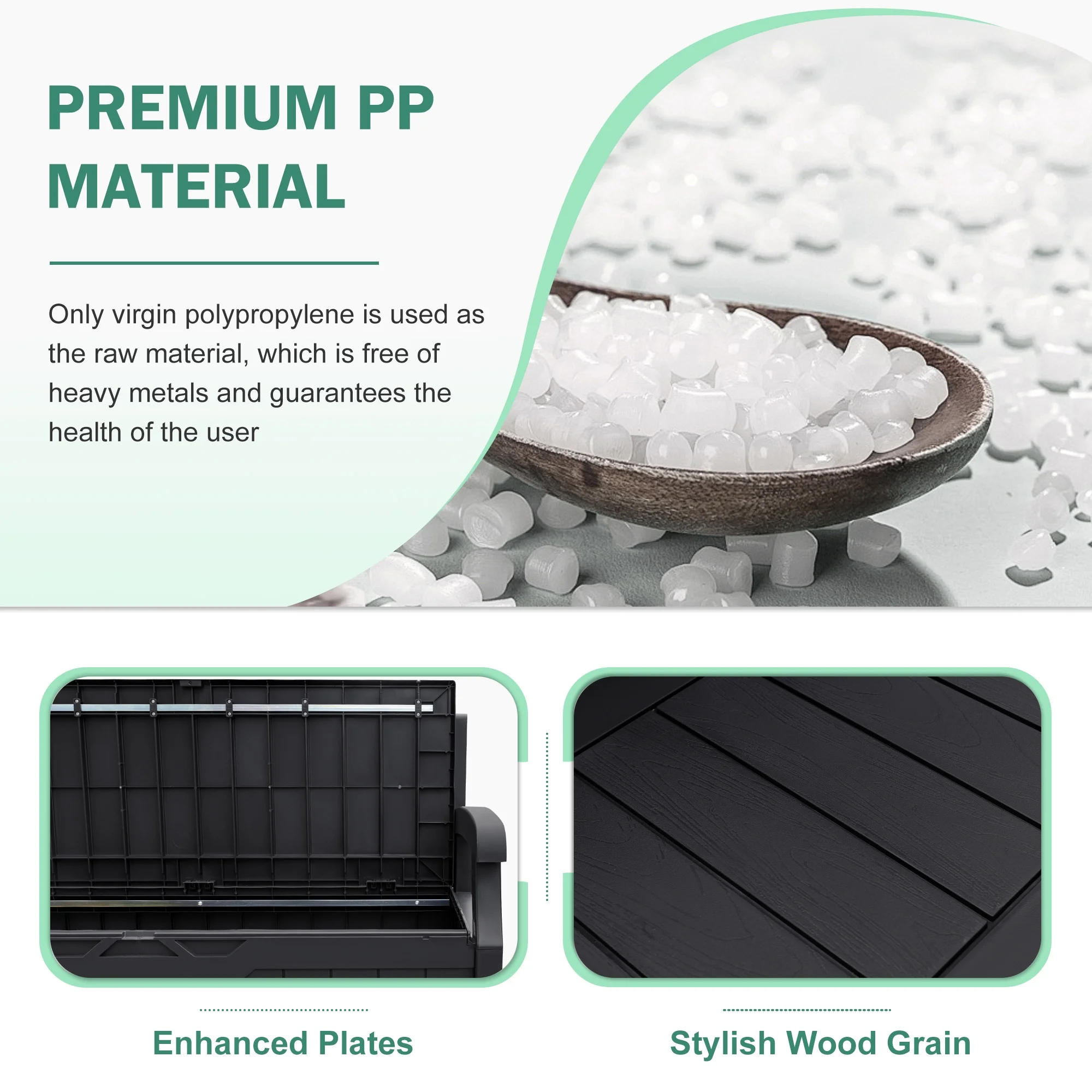 - This 80 gallon plastic storage bench is made of high quality resin material, which is environmentally friendly, safe and reliable, with excellent durability and stability. The resin material is not only lightweight and easy to carry, but also waterproof, moisture-proof and corrosion-resistant, which ensures that your belongings are safely stored and kept clean and tidy for a long time.