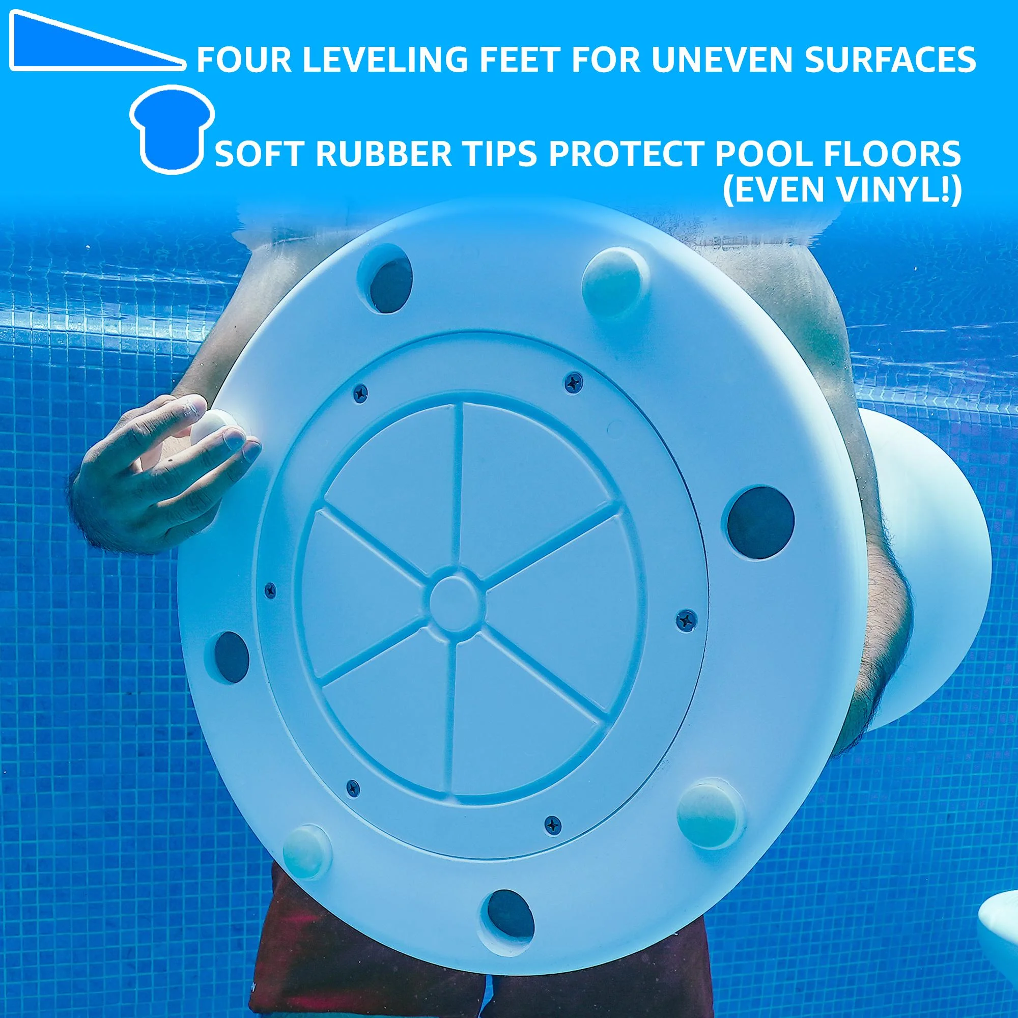 - EASILY ADJUSTABLE LEVELING FEET: Four leveling feet allow an even stool on any surface. They're rubber tipped and soft enough for any pool floor material, including vinyl.