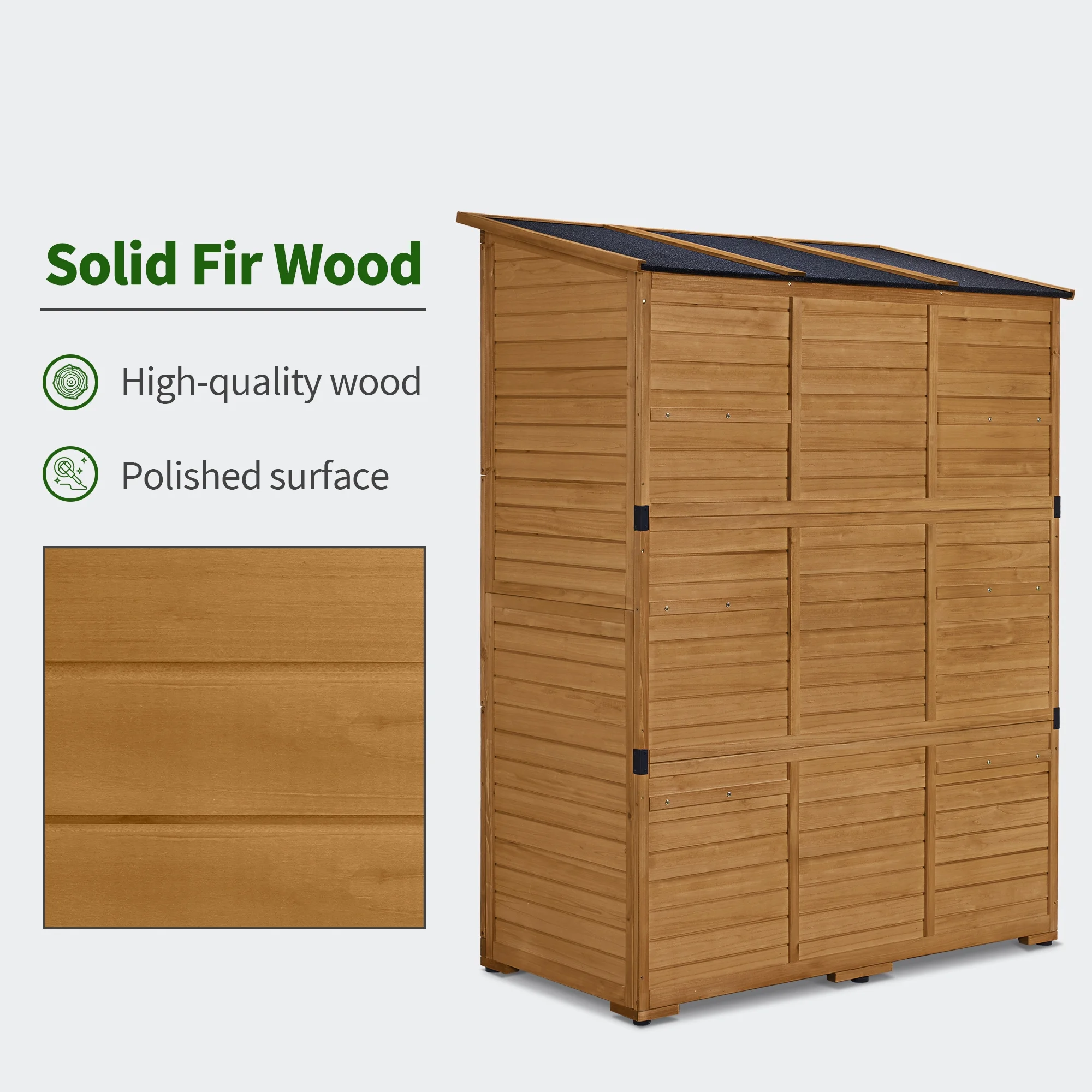 - Fir Solid Wood: Our lean to shed is made of high-quality pure fir wood, and the exterior has been polished to express a rustic style. Natural Color blends easily with other d��cor and natural settings.