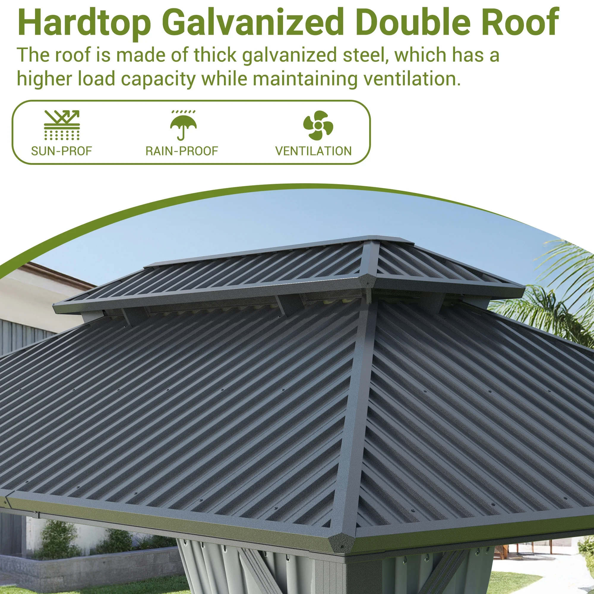 - ?��Double Galvanized Steel Roof��The MUCHANT heavy duty hardtop gazebo has a double-layered galvanized steel roof that resists fading as well as conditions of heavy snow and windy weather. Double vent design enhances air circulation, ensuring that you can feel comfortable air in any season and weather.