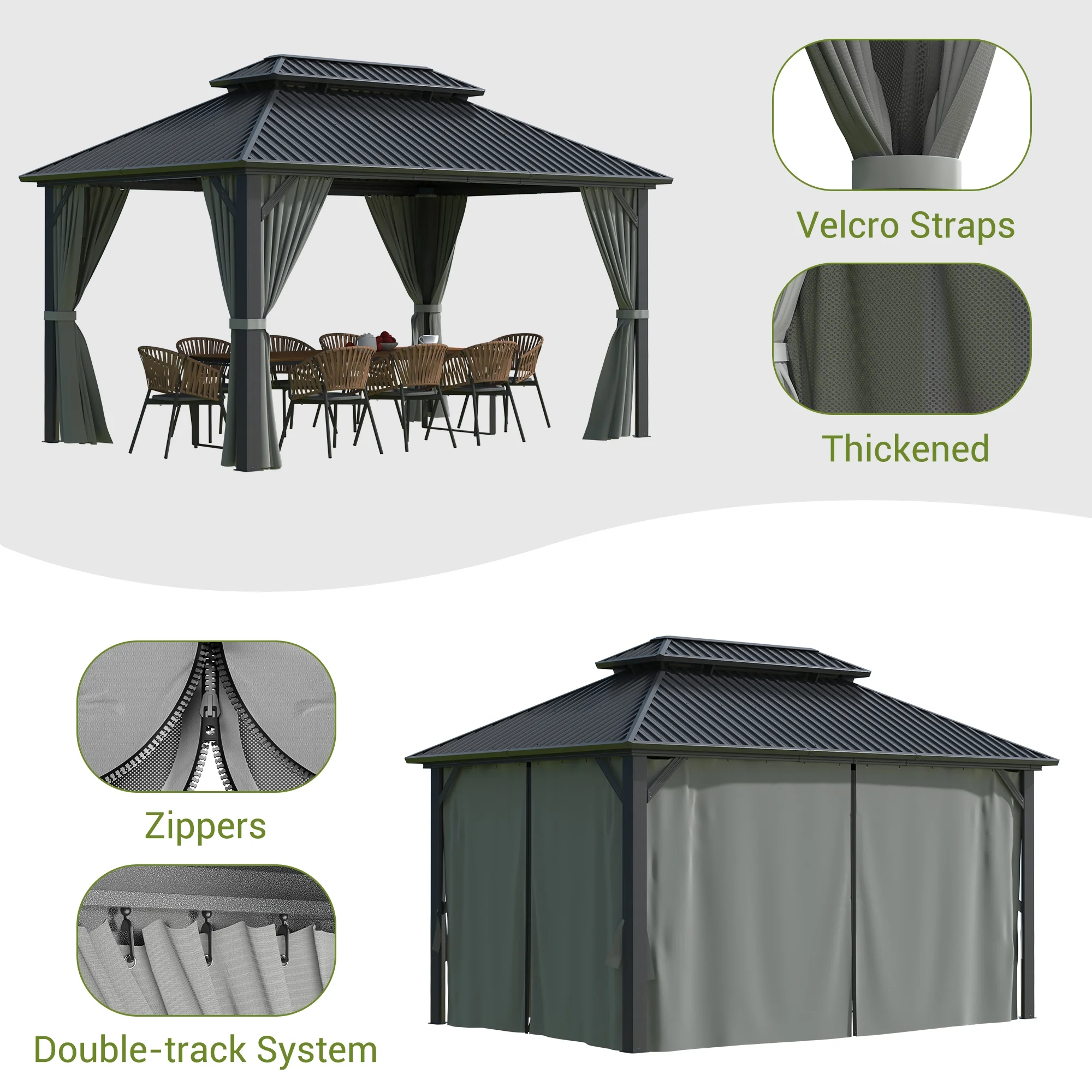 MUCHANT 10'X12' Hardtop Gazebo with Aluminum Frame, Permanent Outdoor Pavilion Metal Gazebo with Galvanized Steel Double Roof & Mosquito Netting and Curtains for Patios, Gardens, Lawns, Gray