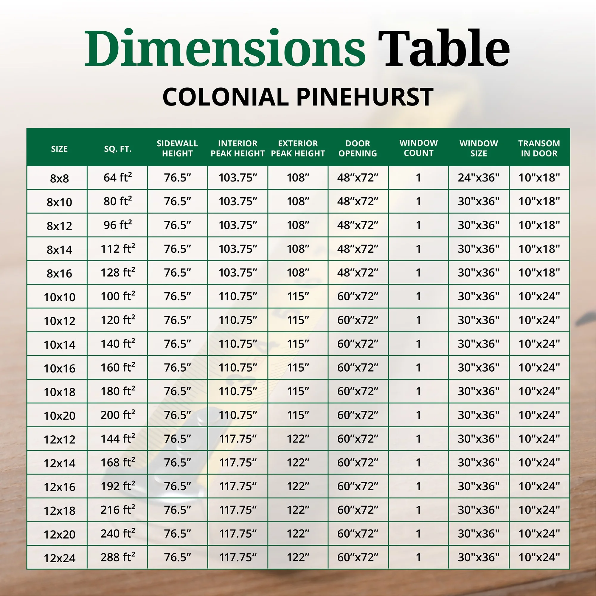 - Customize your Colonial Pinehurst with your choice of paint, shingles, and drip edge (purchase separately)