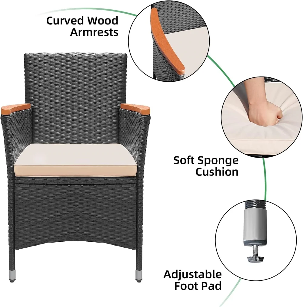 COMFORTABLE DINING CHAIRS: The chairs are surrounded on three sides to give you a sense of security, and the arms rest more comfortably on the armrests made of acacia wood. The ergonomically designed chair has a wide seat and high backrest. Foam-filled seat cushion is soft, breathable and resilient, with a removable seat cover.