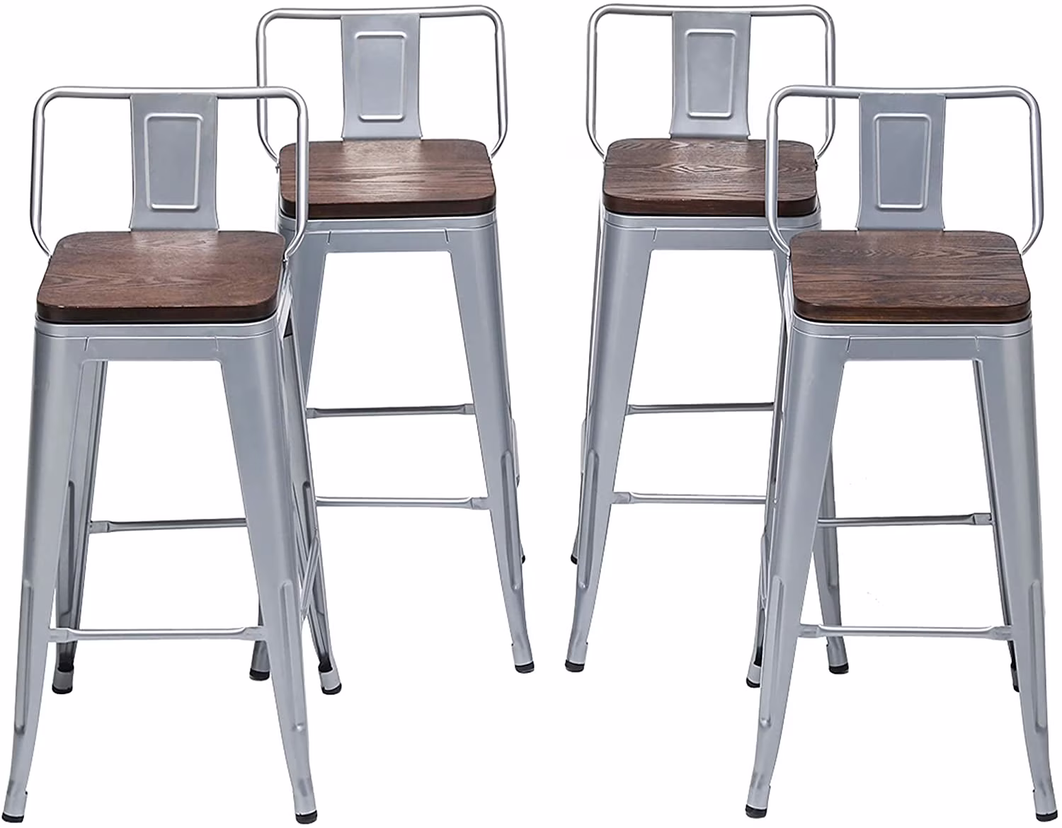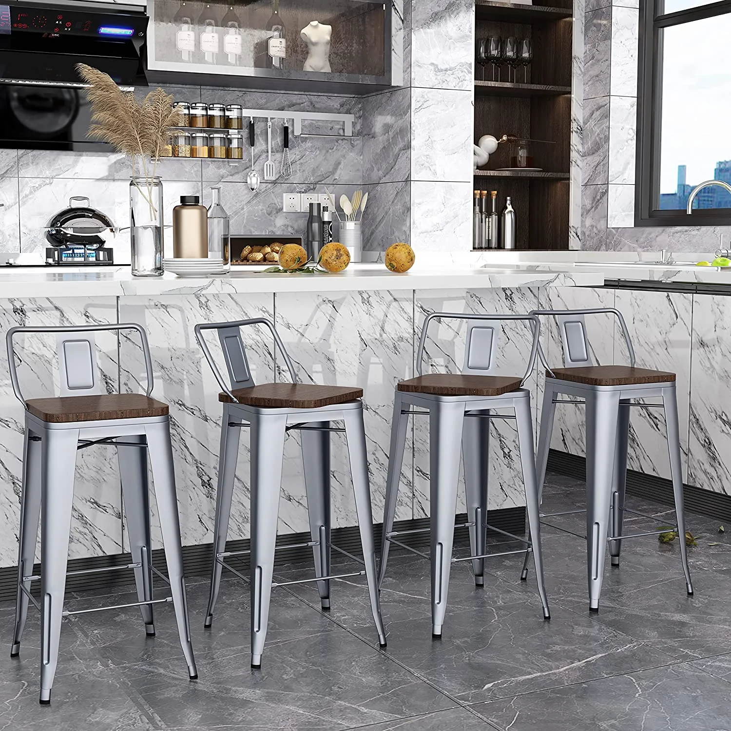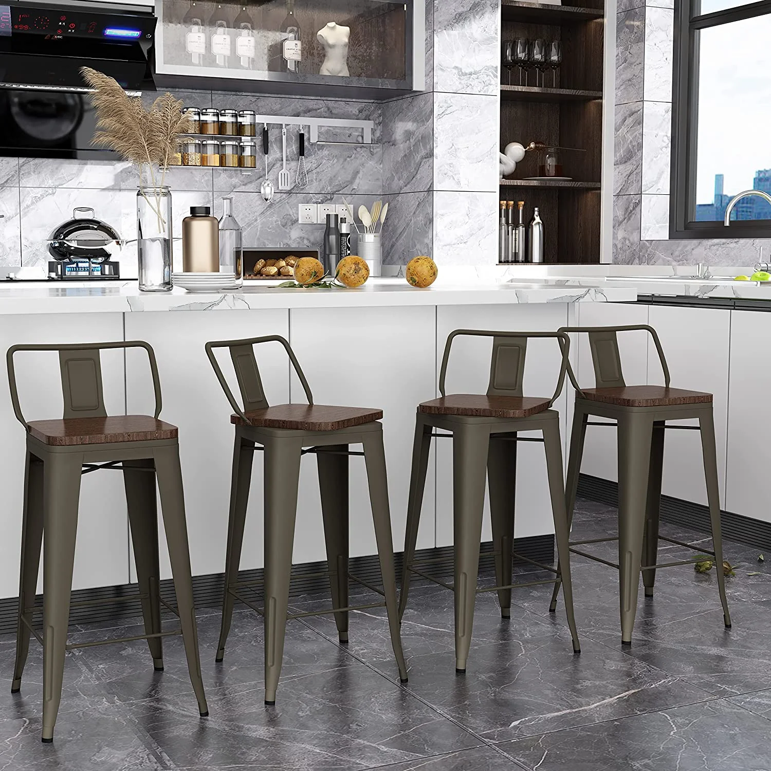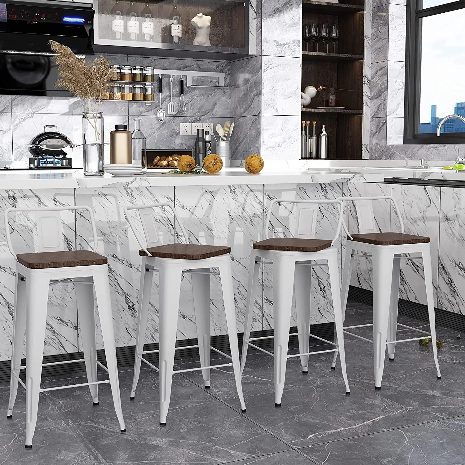 Andeworld Furniture Industrial Metal Bar Stool Kitchen Counter Bar Stools Set of 4