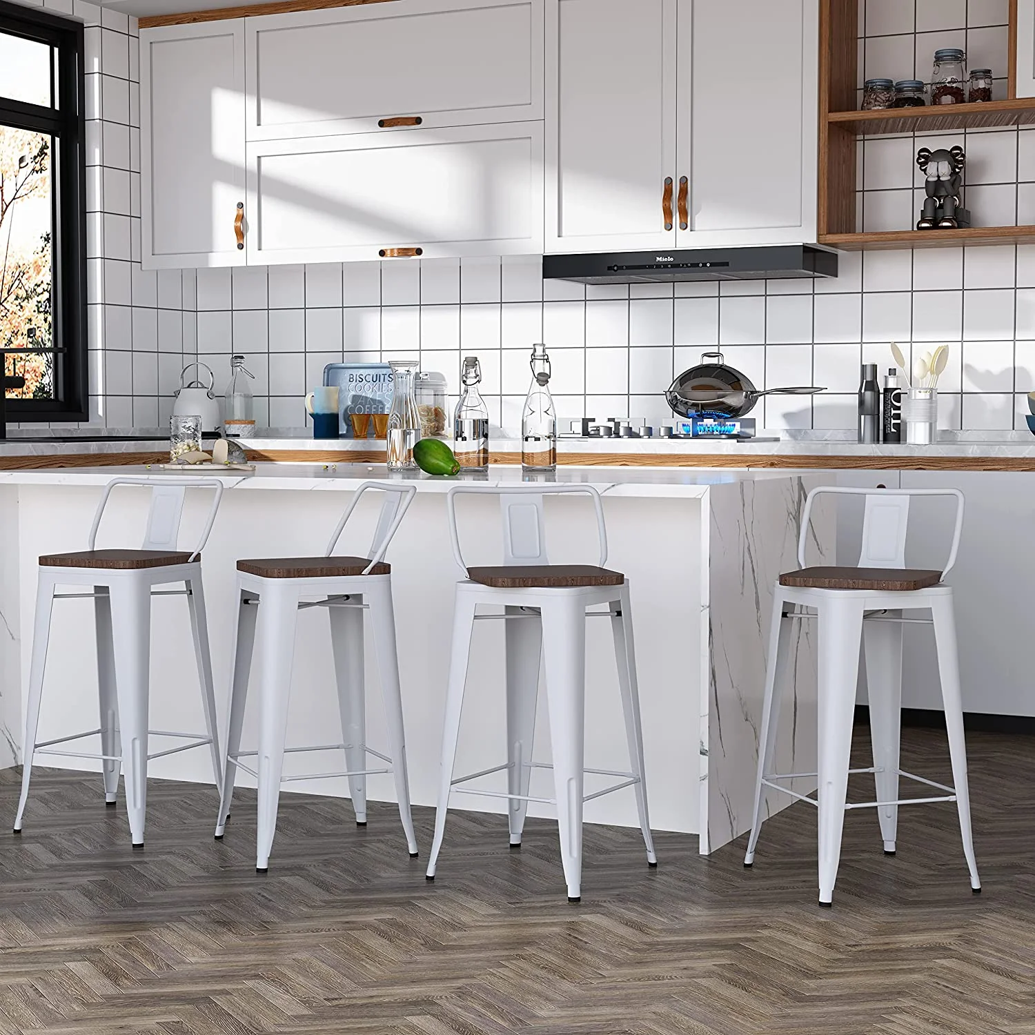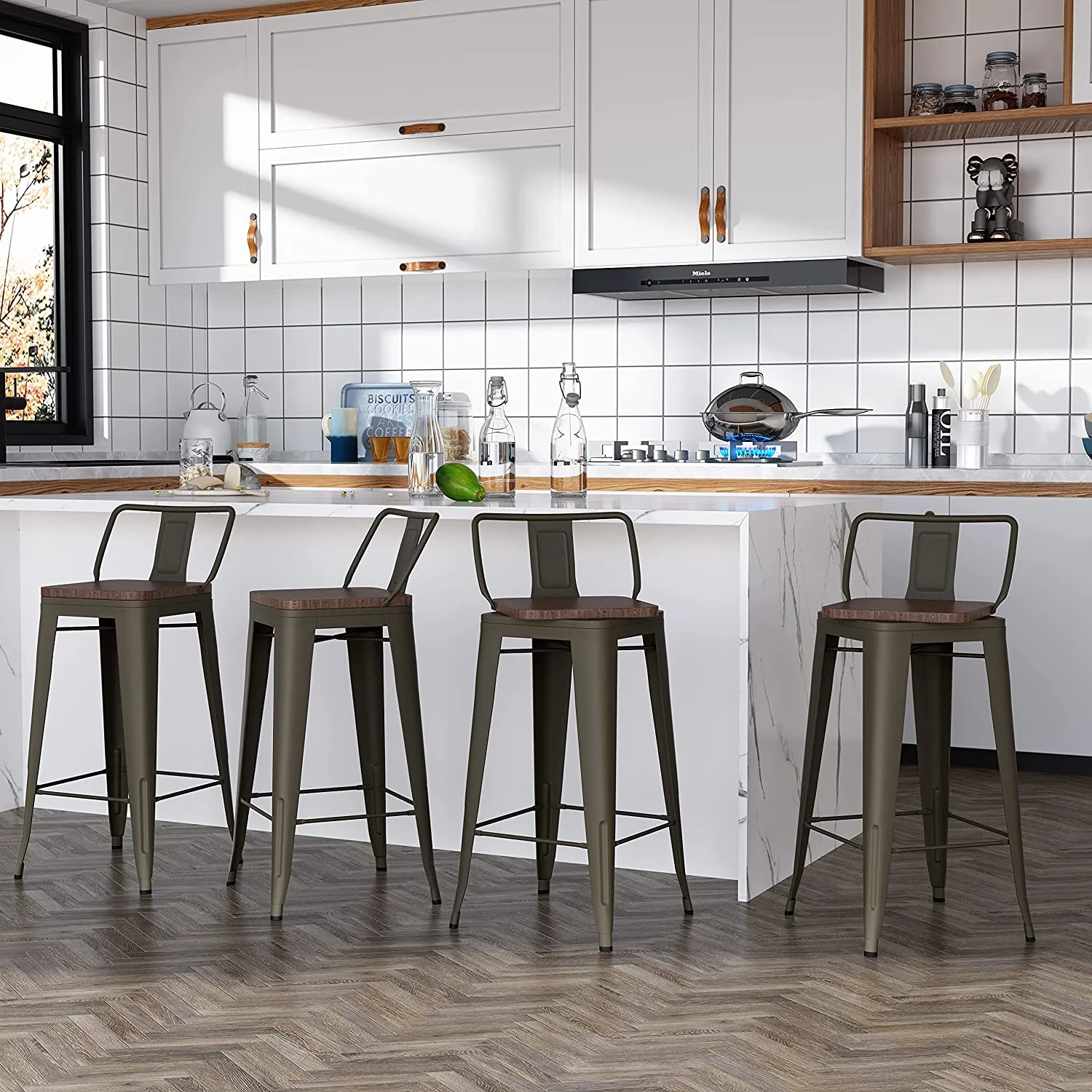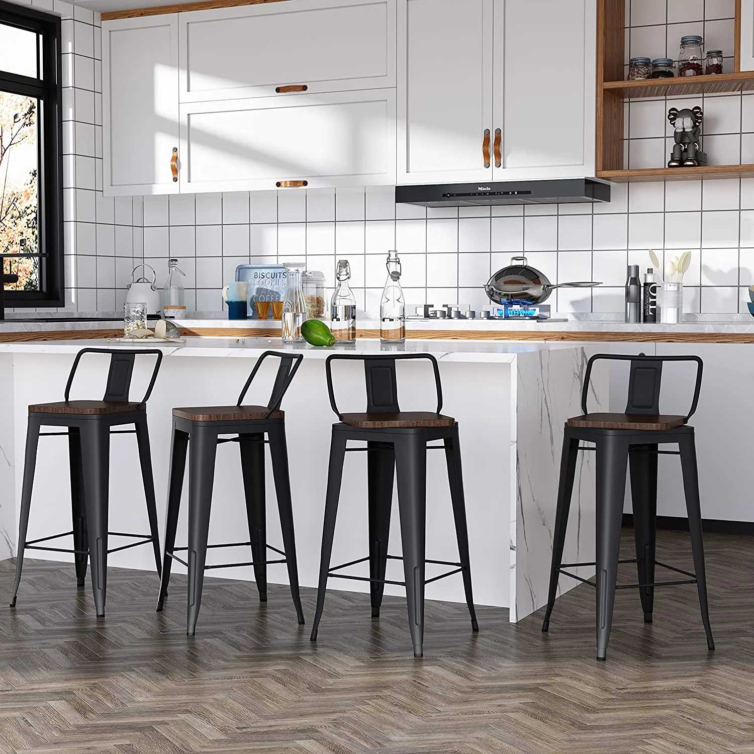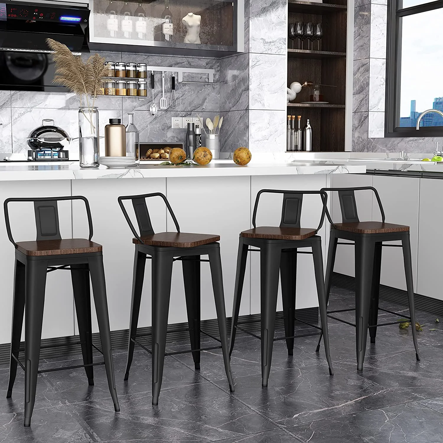 Andeworld Furniture Industrial Metal Bar Stool Kitchen Counter Bar Stools Set of 4