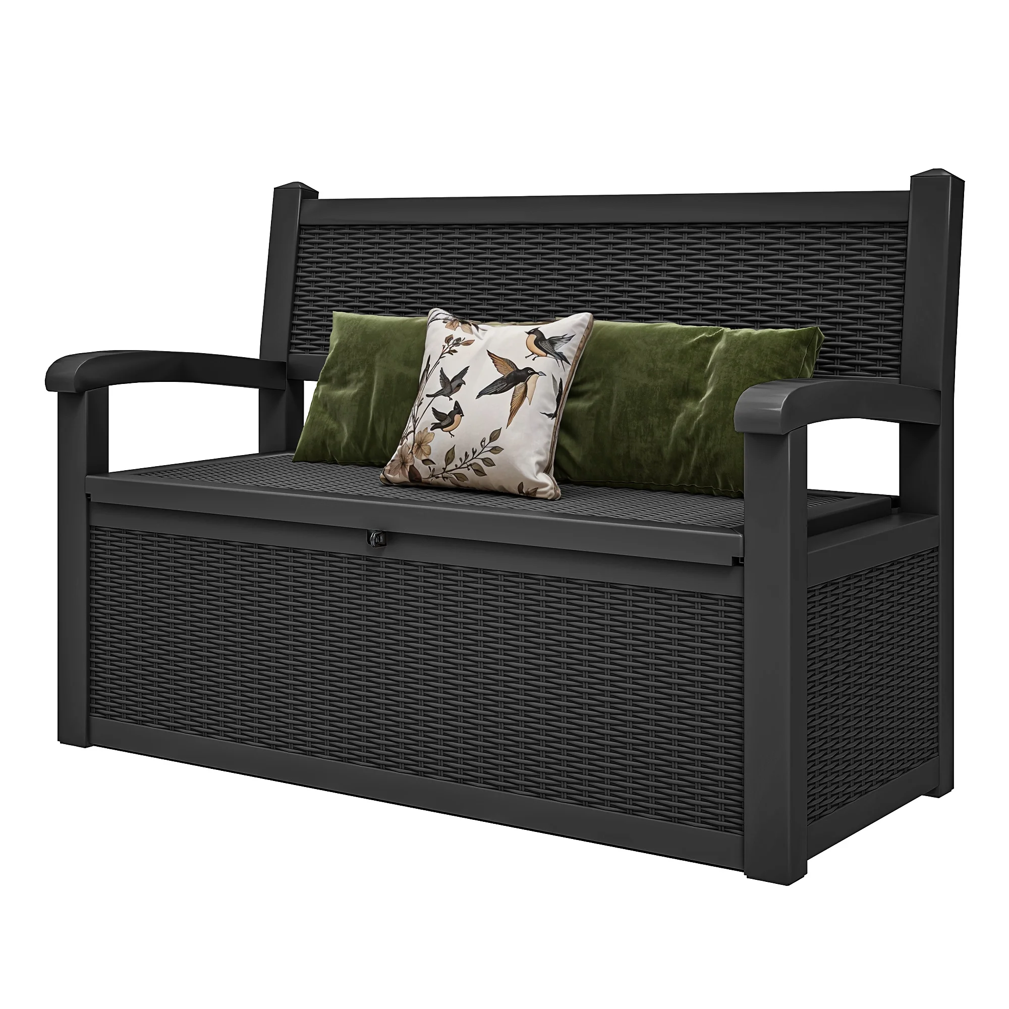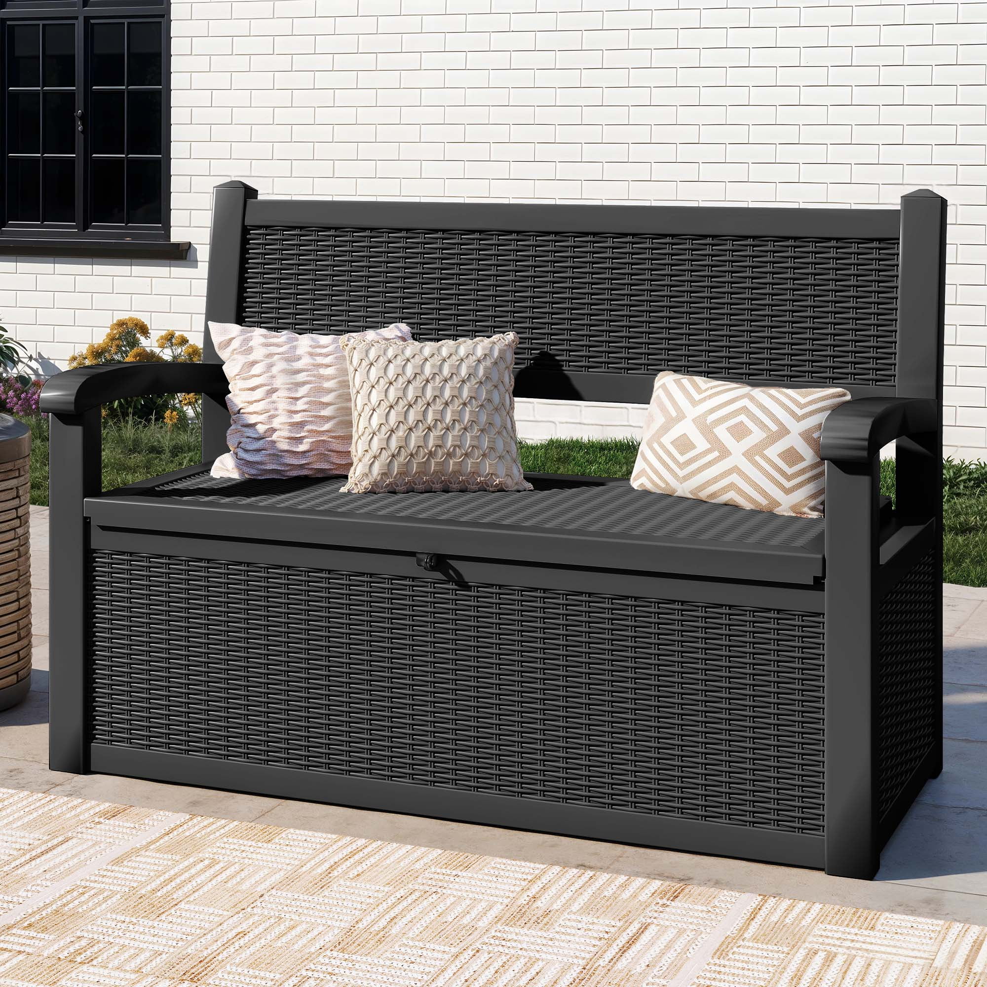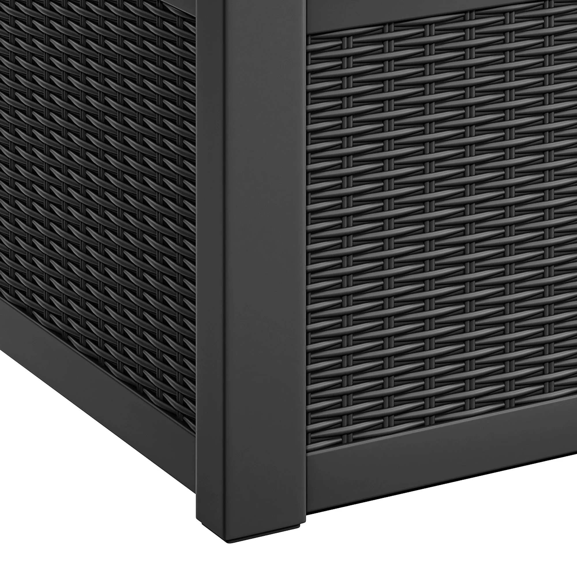 Enjoy the perfect combination of style, comfort, and storage with the ModFusion 70-Gallon Outdoor Resin Storage Cabinet. Designed with a rattan-inspired backrest, this multifunctional bench adds both seating and organization to your outdoor living space.