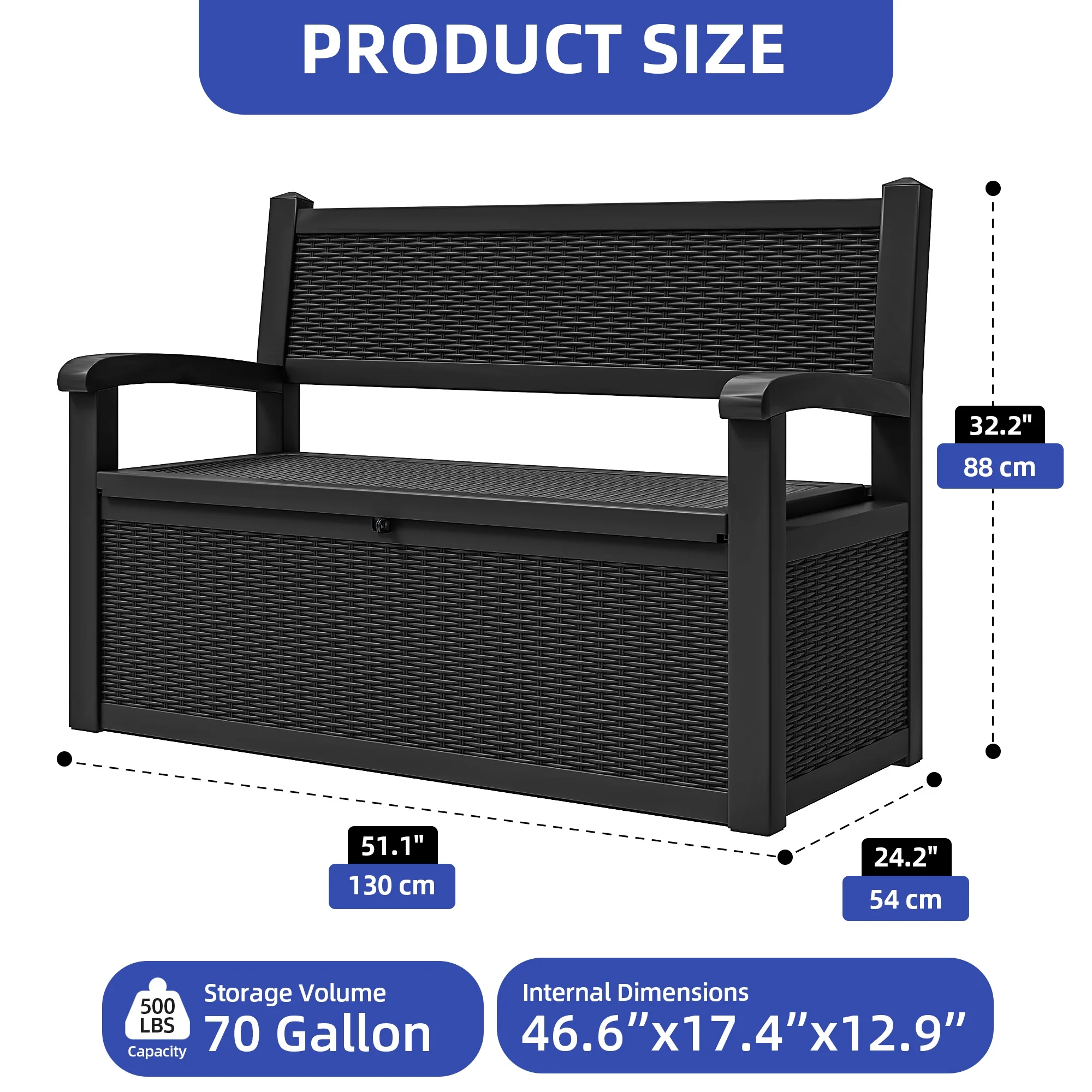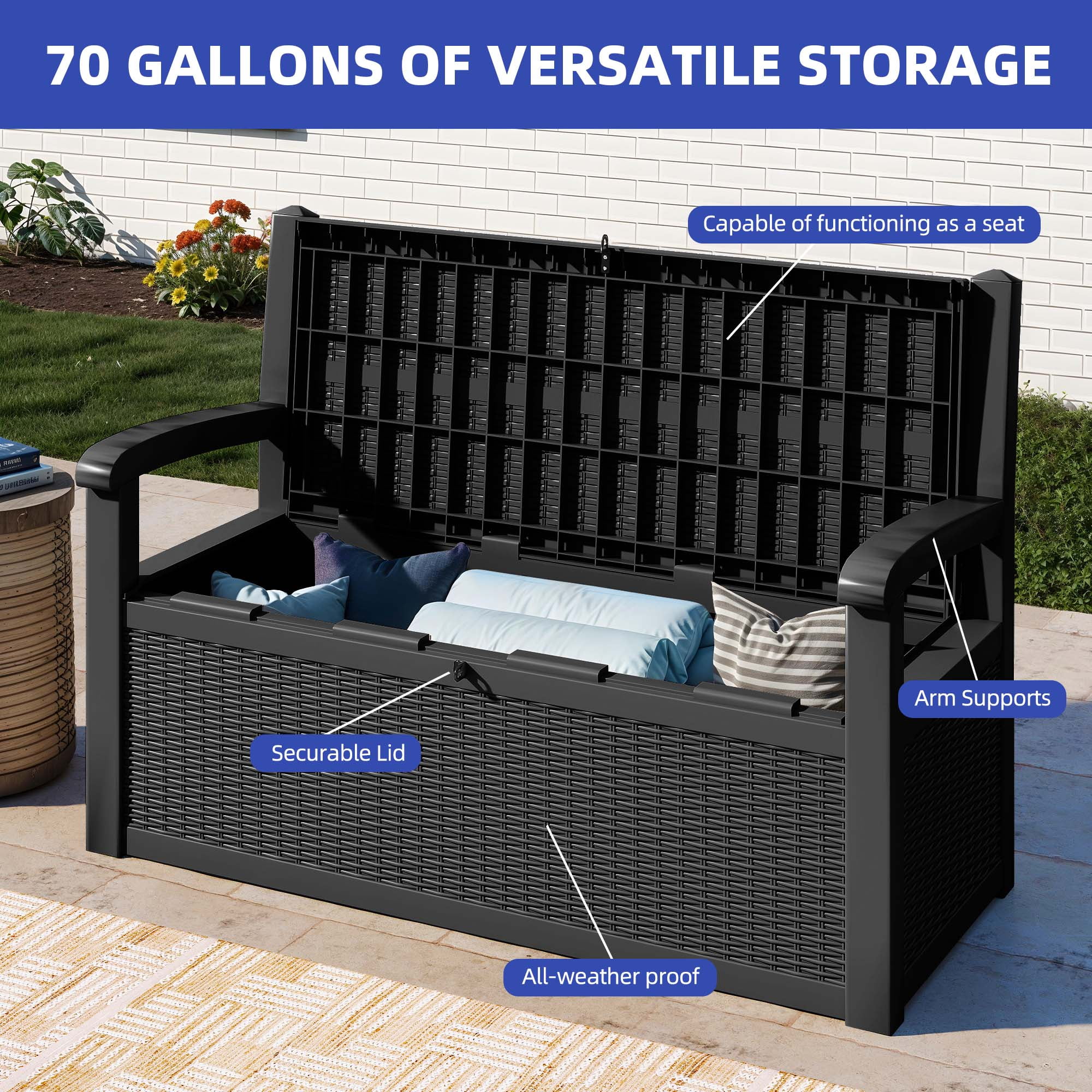 Spacious & Practical: With a 70-gallon (265-liter) capacity, it��s ideal for storing patio cushions, gardening equipment, pool supplies, or outdoor toys. The dual-purpose design ensures your space stays neat and inviting.
