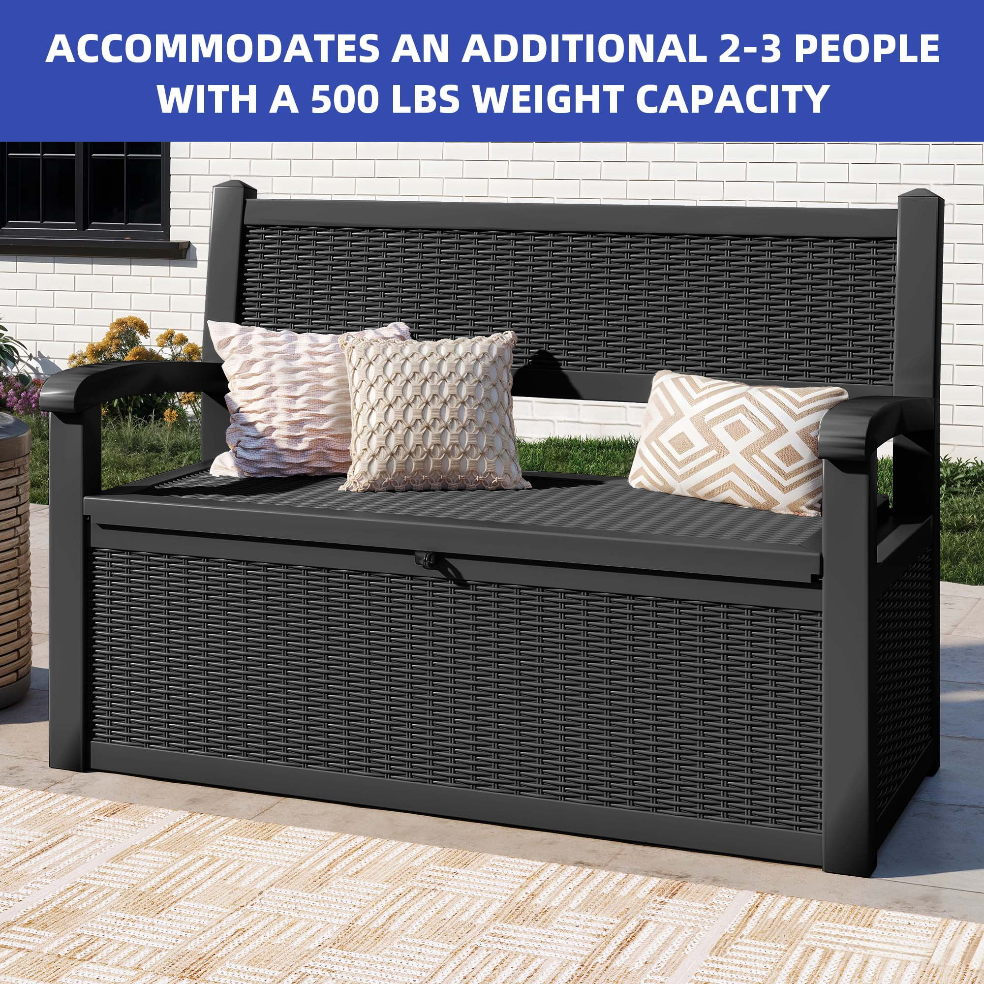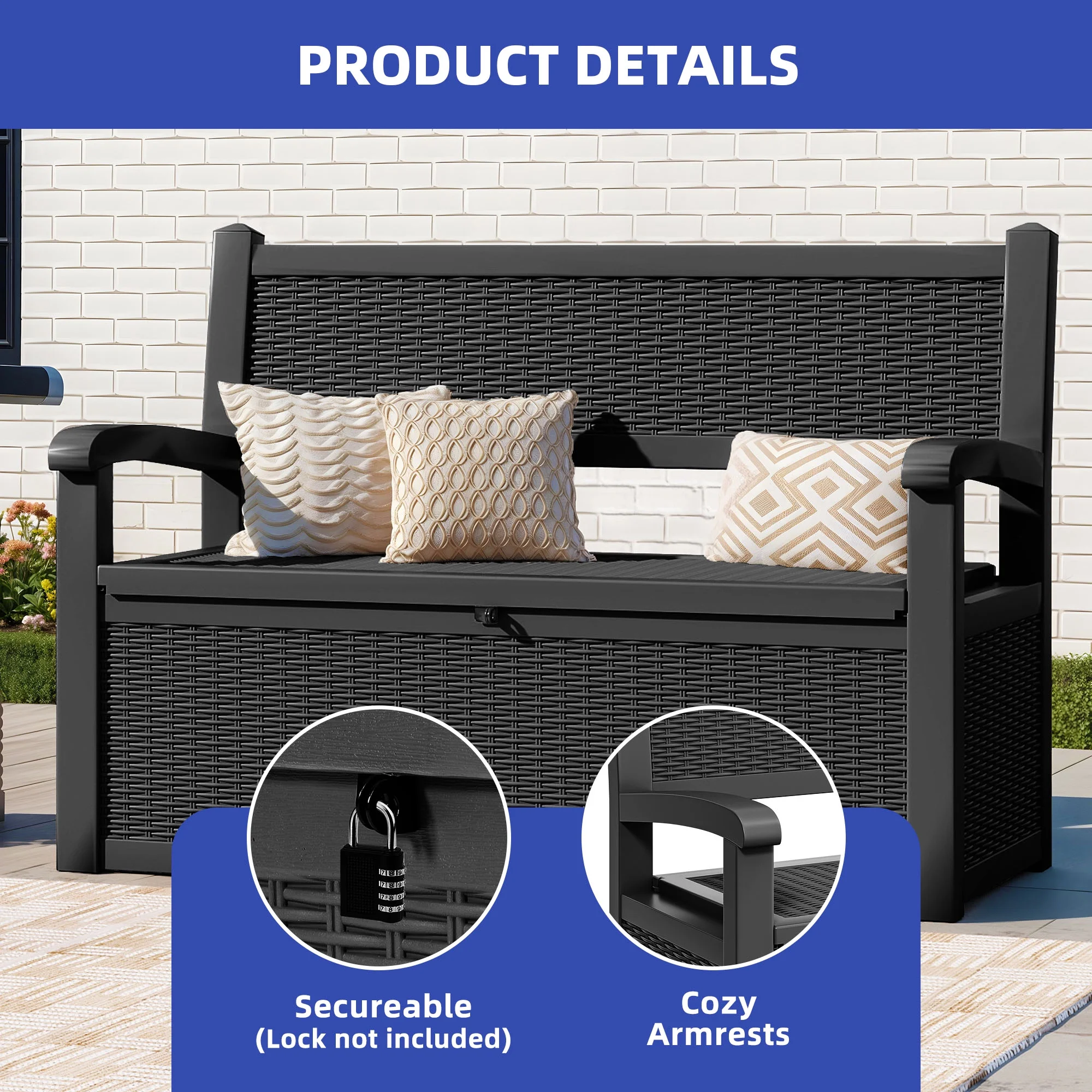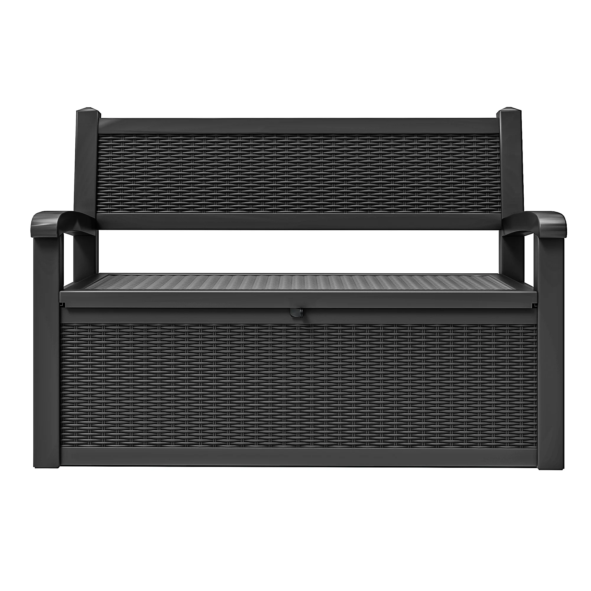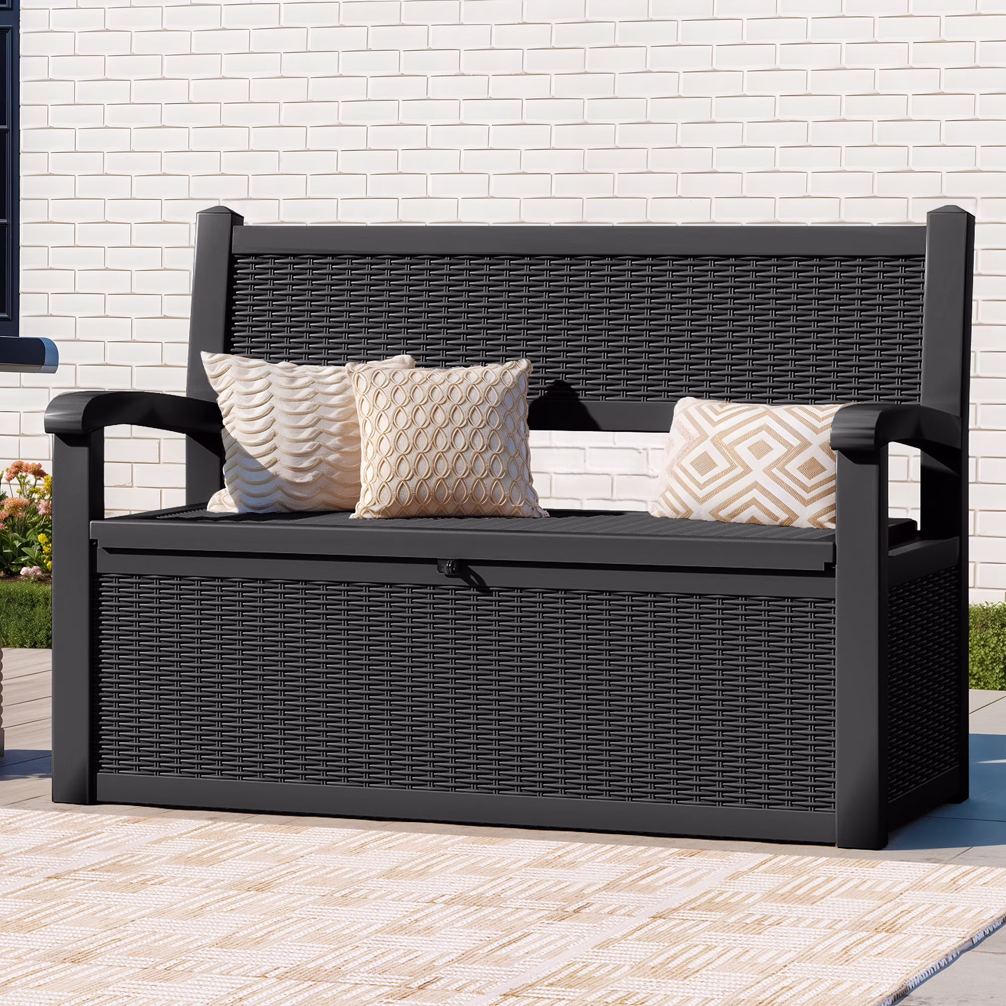 - 2-in-1 Storage & Seating �C Functions as both a comfortable outdoor bench with rattan-style backrest and a spacious storage cabinet.